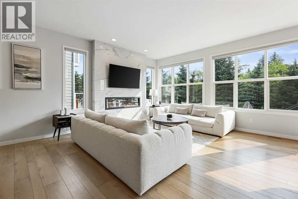 Step into this luxurious offering in amazing West Springs! Close to trails and parks, and with a secluded, private backyard, this Cedarglen built home is a unique home that won't last long. Quartz countertops throughout, extended windows, central air conditioning, luxury vinyl plank flooring & hardieboard exterior are some key features. Walking into the home through the front door the living room/dining room combination has gorgeous views of the secluded backyard with massive extended height windows that brighten up the home. The kitchen has an island, stainless steel appliances, built-in microwave and gas stove, making it a chefâs dream! There is a walk through pantry off the kitchen and a patio door to the deck. Coming in from the garage you can take your boots off in the spacious mud room. Going upstairs youâll find the primary bedroom on the left, overlooking the neighbouring acreage, with a well appointed 5 piece ensuite. The laundry room is conveniently located on the top floor. The large bonus room is a great place for a family hangout with a view to the north west. The basement is fully finished with a bedroom and 4 piece bathroom, and the large windows allow in lots of light. The back yard has artificial turf, and the front yard is done with rock, so the maintenance is a breeze. The exterior is finished with hardieboard, which is extremely resilient. The back deck has natural gas for your summer barbeques. The secluded private backyard is the most attractive feature of this property! (id:27476)
