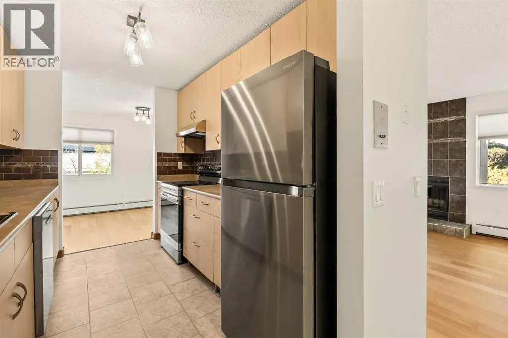 Proudly presenting suite 3302, the best two bedroom in the building with brand new appliances and hardwood flooring. This well maintained two bedroom corner condo in Glamorgan is bright, quiet, private and has been meticulously cared for over the years. It is truly turnkey, offering both comfort and convenience. Inside you will find 5 brand new appliances (refrigerator, dishwasher, oven, washer dryer), engineered hardwood flooring (installed Oct 2025), an operational wood burning fireplace (inspected annually by the condo board), an upgraded slider window, updated light fixtures, soft close kitchen drawers, and a dual vanity sink. The floor plan is spacious and well laid out, with abundant natural light streaming through the suite throughout the day. The primary bedroom is incredibly spacious, and the home features an oversized in-suite storage room as well as an additional large storage locker off of the private deck. The building is well maintained with an active and engaged board, giving peace of mind to owners. The location is highly walkable close to a Co-op, Save On Foods, Canadian Tire and London Drugs. The beloved Glamorgan Bakery is a short walk, along with restaurants, cafés, schools, Mount Royal University and fitness amenities. With shopping, a transportation hub and daily essentials close by, this Glamorgan condo is an ideal place to call home. This property has been professionally cleaned and is ready for quick possession! (id:27476)