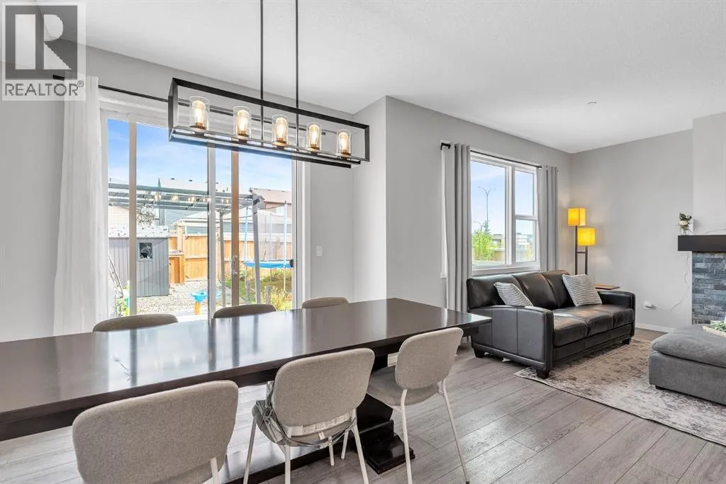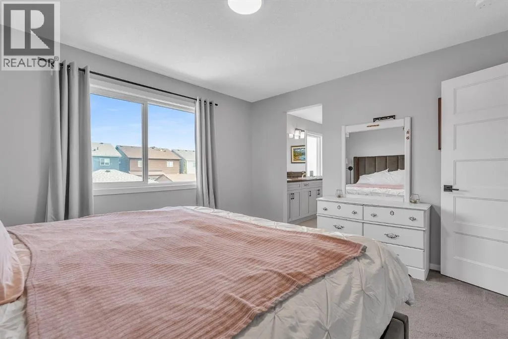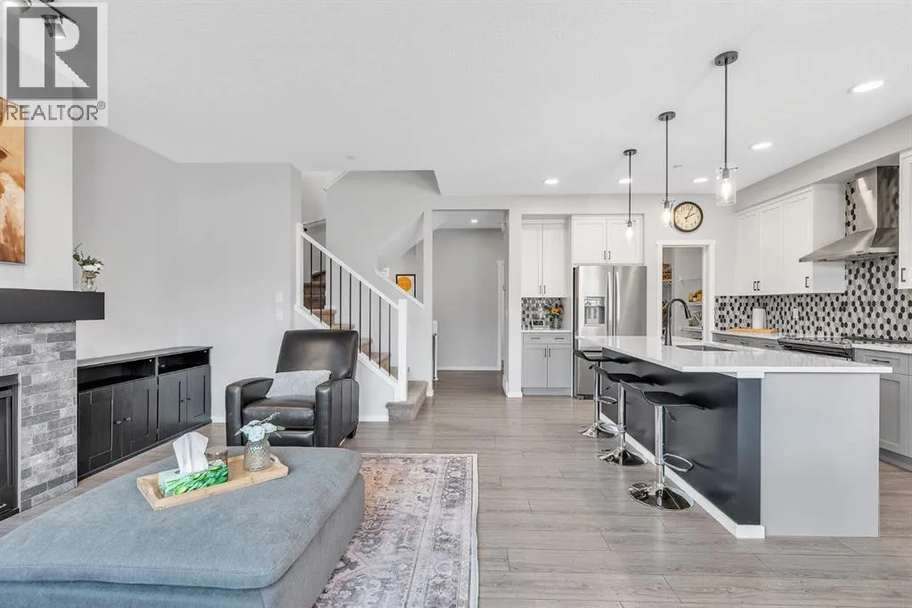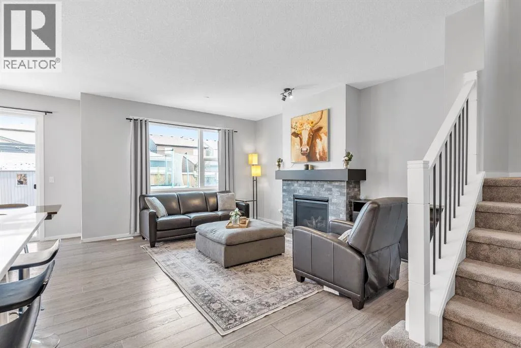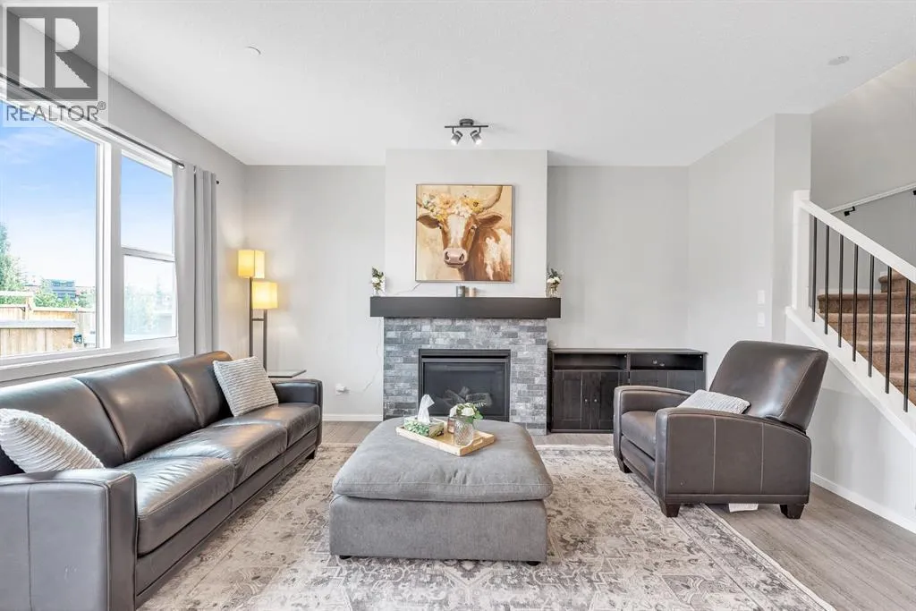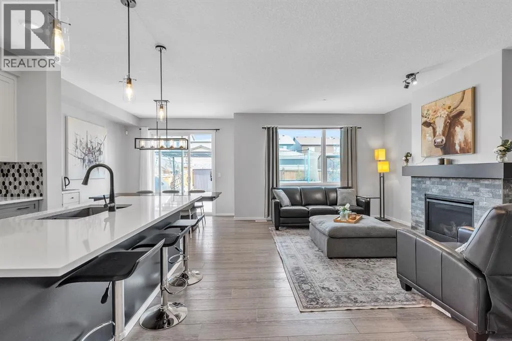 Located in the vibrant, growing community of Livingston, just steps from Livingston Park and within walking distance of numerous amenities is this immaculately kept 4 bedroom, 3.5 bathroom, modern 2 storey home with bright, open floor plan, double attached garage and developed basement!! Entering the home, you're greeted into a spacious foyer. The functional main floor layout offers a discrete powder room set apart from the main living areas, a large mud room off the garage with a walk-through pantry that leads into the kitchen, and an open-concept living, kitchen and dining area overlooking the back yard. The kitchen is the heart of the home, featuring a large island with room for seating, stainless steel appliances, stone counters and ample storage with soft-close cabinets and drawers. The living room is anchored by a cozy gas fireplace and offers large windows for an abundance of natural light. Upstairs, you'll find a large primary bedroom with spacious ensuite and walk-in closet. The ensuite features dual sinks, a soaker tub and separate shower, and a private water closet. Down the hall is a versatile den/office space, two additional bedrooms, a full bathroom and convenient upper laundry room. You'll also appreciate the open bonus room on this floor. The basement is developed with a family room and large bedroom with walk-in closet and private ensuite. Enjoy the rear deck, complete with BBQ gas line, and the fully-fenced yard for the kids and pets! With central air conditioning to keep you comfortable on hot summer days and a complete fire suppression system for added peace of mind, this is the perfect family home. (id:27476)