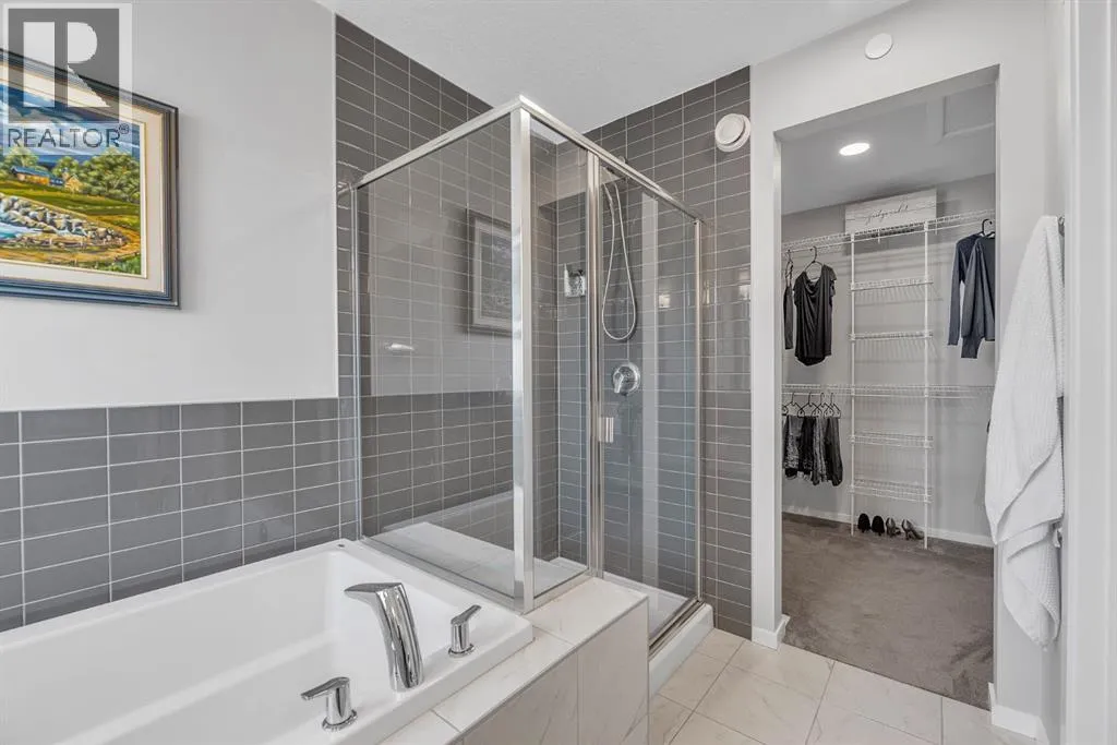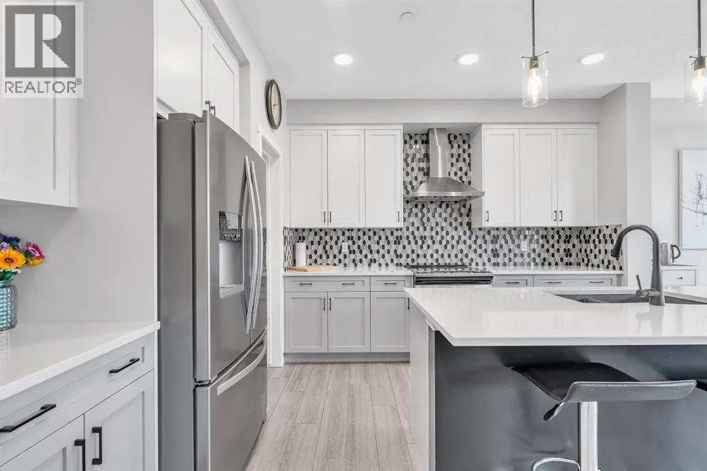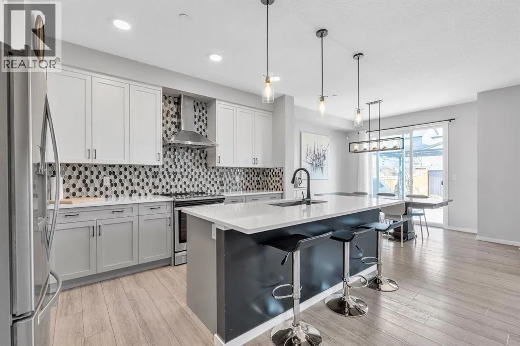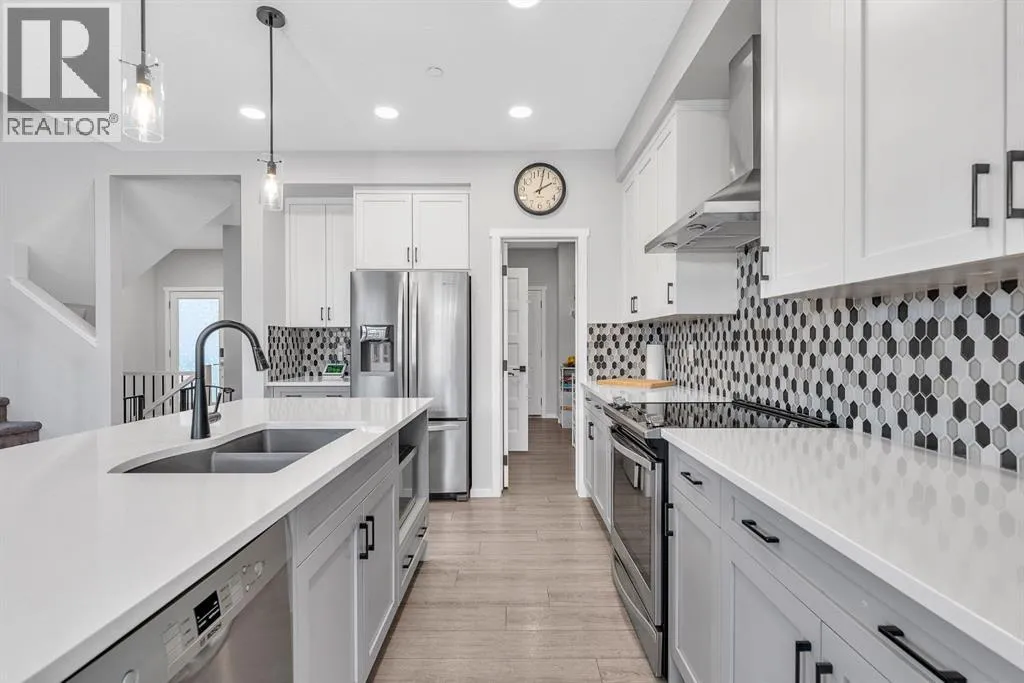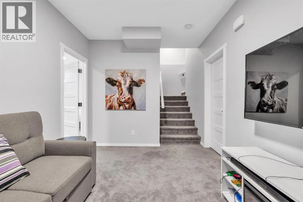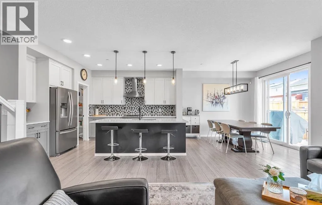 Located in the vibrant, growing community of Livingston, just steps from Livingston Park and within walking distance of numerous amenities is this immaculately kept 4 bedroom, 3.5 bathroom, modern 2 storey home with bright, open floor plan, double attached garage and developed basement!! Entering the home, you're greeted into a spacious foyer. The functional main floor layout offers a discrete powder room set apart from the main living areas, a large mud room off the garage with a walk-through pantry that leads into the kitchen, and an open-concept living, kitchen and dining area overlooking the back yard. The kitchen is the heart of the home, featuring a large island with room for seating, stainless steel appliances, stone counters and ample storage with soft-close cabinets and drawers. The living room is anchored by a cozy gas fireplace and offers large windows for an abundance of natural light. Upstairs, you'll find a large primary bedroom with spacious ensuite and walk-in closet. The ensuite features dual sinks, a soaker tub and separate shower, and a private water closet. Down the hall is a versatile den/office space, two additional bedrooms, a full bathroom and convenient upper laundry room. You'll also appreciate the open bonus room on this floor. The basement is developed with a family room and large bedroom with walk-in closet and private ensuite. Enjoy the rear deck, complete with BBQ gas line, and the fully-fenced yard for the kids and pets! With central air conditioning to keep you comfortable on hot summer days and a complete fire suppression system for added peace of mind, this is the perfect family home. (id:27476)