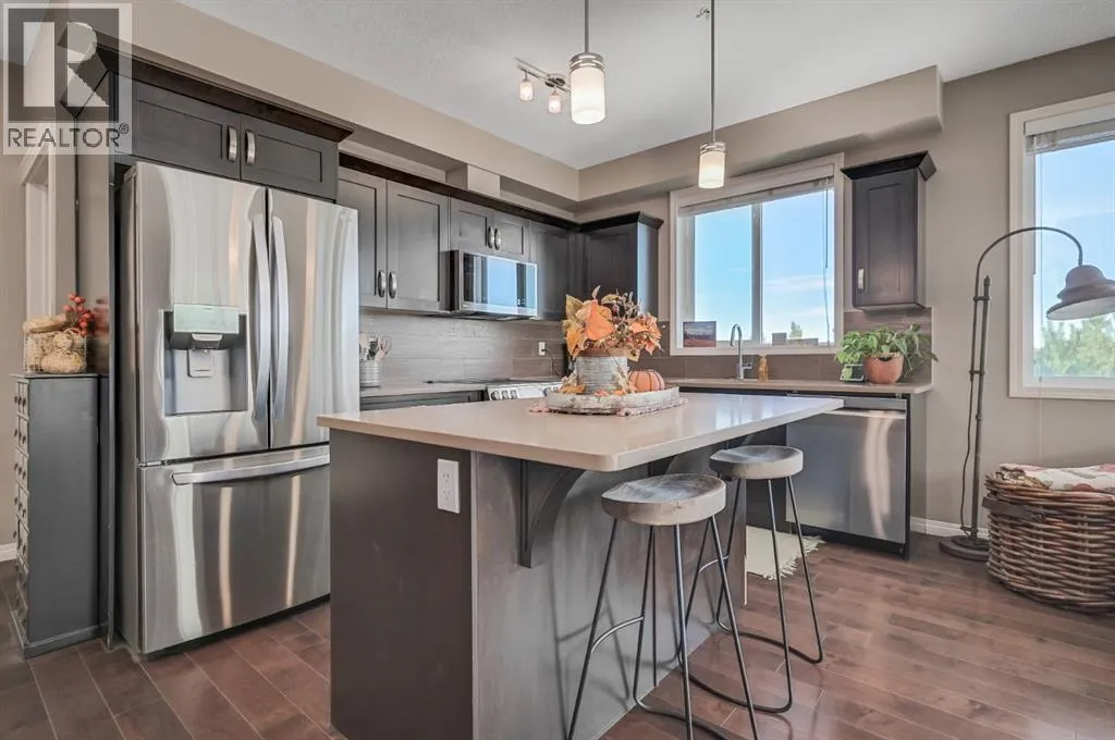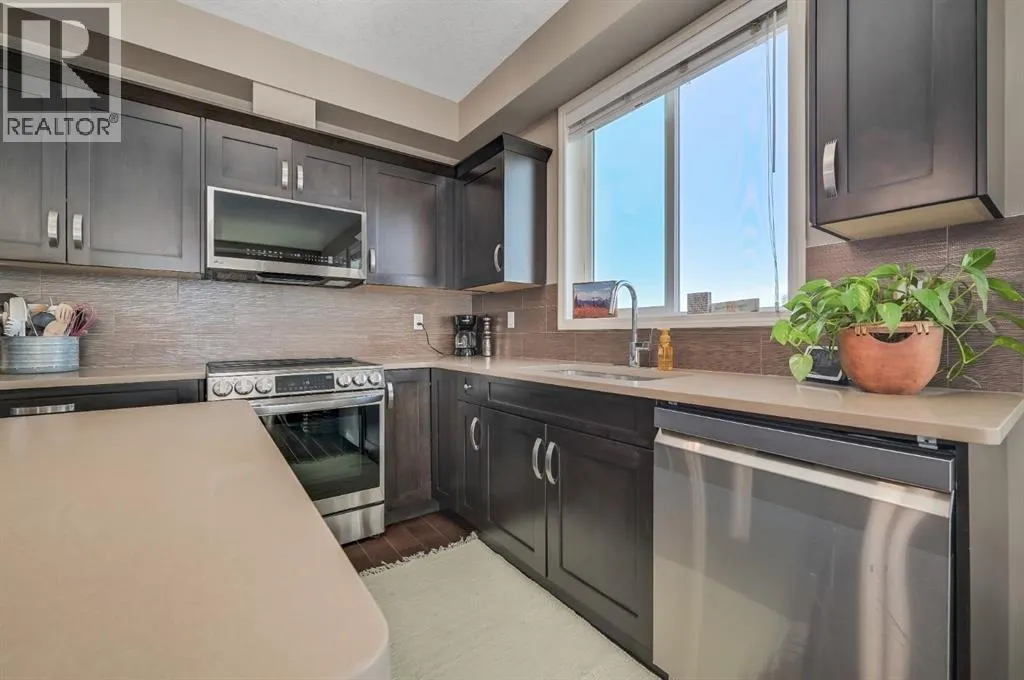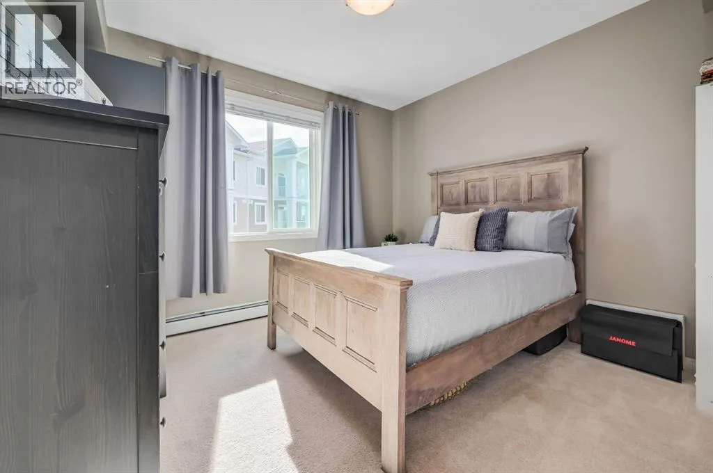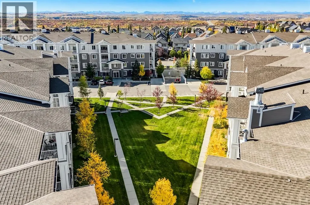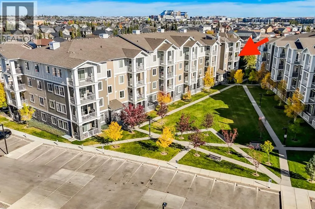 Welcome to this beautifully appointed South facing corner condo in the heart of Cranston! This 2 bedroom, 2 bathroom + den home offers nearly 1000 sq ft of thoughtfully designed living space, perfect for professionals, downsizers, or investors.The modern kitchen is truly the heart of the home. Featuring new stainless steel appliances, stone countertops, and a generous island ideal for entertaining or casual dining. The open concept layout flows effortlessly into the dining area and bright living room, where sliding doors lead to a large, covered patio overlooking the quiet courtyard making it the perfect space for your morning coffee. The patio is complete with a BBQ gas line making it perfect for summer evenings. The primary suite boasts a spacious walk through closet with custom built in shelving, leading into a well appointed ensuite bathroom. The second bedroom and main bath are on the opposite side of the condo making it ideal for guests or roommates. The den offers the perfect work from home setup, creative space, or extra storage. Enjoy secure, heated underground parking and an assigned storage unit directly in front of your parking space. Located close to shopping centres, the South Health Campus, Seton YMCA, and an abundance of walking and biking trails with stunning natural views, this home offers the perfect balance of comfort, convenience, and lifestyle.Donât miss your chance to own in one of Calgaryâs most desirable communities! (id:27476)