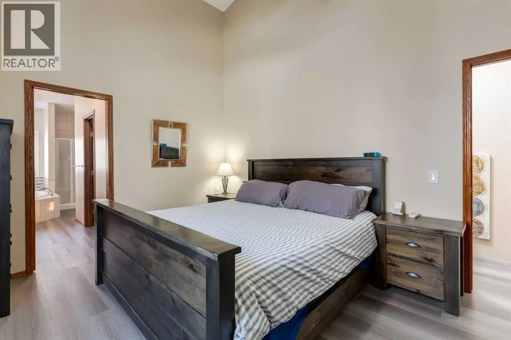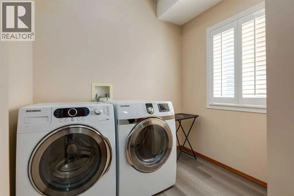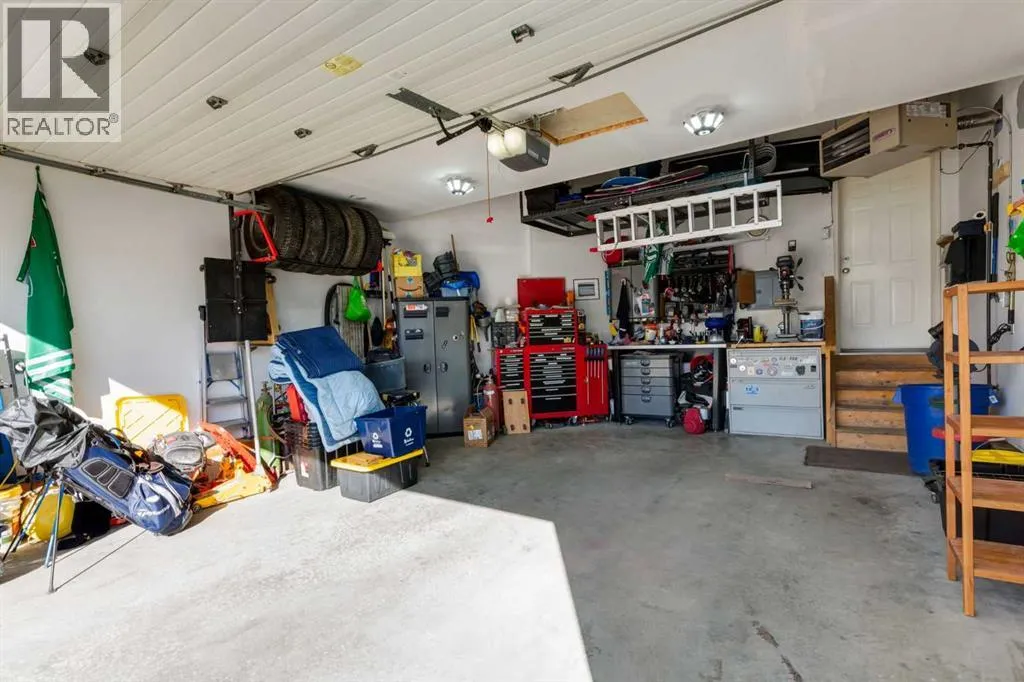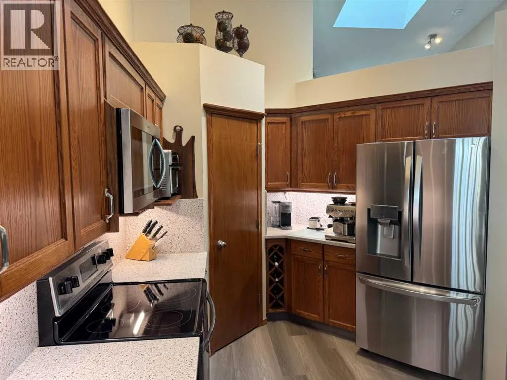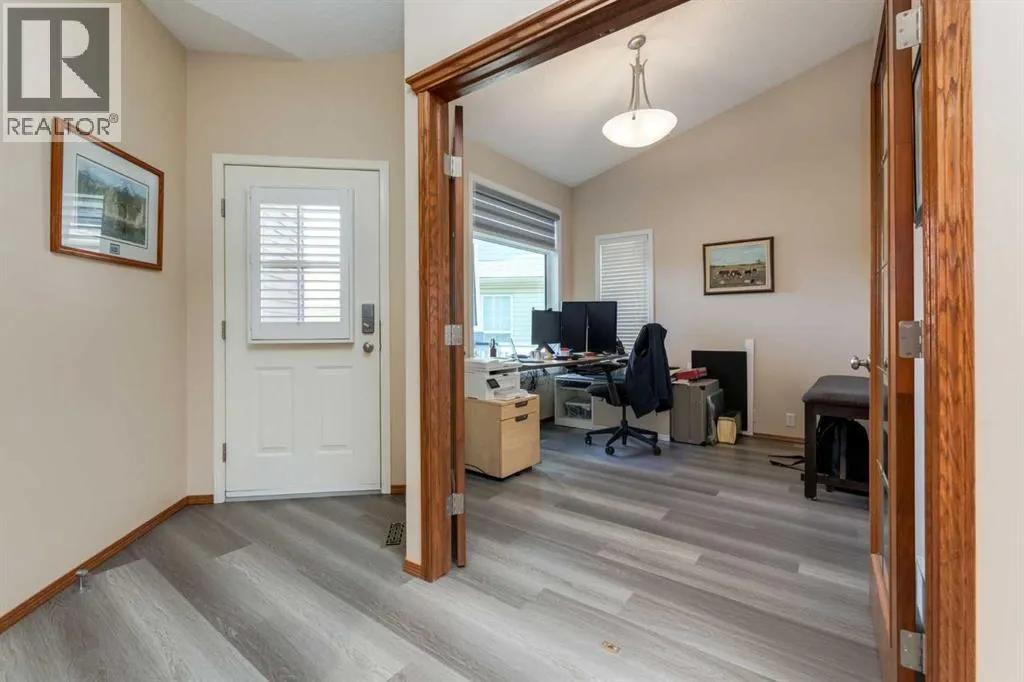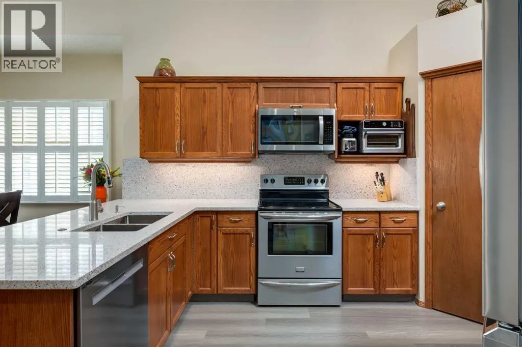 This fully developed BUNGALOW in the established Millrise neighbourhood has been UPDATED extensively over the past 5+ years, with almost 2500 square feet of developed space over two levels. There is a long list of quality interior and exterior improvements. Nicely located on a quiet CUL-DE-SAC with a pie shaped lot backing onto GREEN SPACE, the home has abundant curb appeal with a full exterior update by Lummerding Exteriors in 2022, including âheavy wall vinylâ and âclass 4â hail impact roof shingles. The double attached garage is heated and finished with âTrimlightâ LED lights on front & back of home. The main floor is an open concept layout with VAULTED CEILINGS in primary bedroom, foyer, living, dining, and kitchen areas, plus a skylight. Interior features include updated luxury plank vinyl flooring, custom window coverings, quartz countertops, several updated windows, chrome finish hardware, and updated light fixtures. The kitchen includes a pantry with stainless appliances and adjacent dining area plus eating bar. The exterior door off the living & dining area opens onto a HUGE DECK and backyard siding onto GREEN SPACE with walking paths. There is a large, newer window in the family room with a gas fireplace with fan. The primary bedroom offers a walk-in closet and 5-piece ensuite bath with jetted tub and separate shower. The main floor also includes a den with a glimpse of mountains, convenient half bathroom, and laundry room with newer washer & dryer and back hall closet. The lower level includes a four piece bathroom, two spacious bedrooms and recreation room, each with walk-in closets. If you are looking for a home in MOVE-IN CONDITION and QUIET LOCATION, this property is ready for new owners. (id:27476)