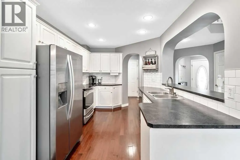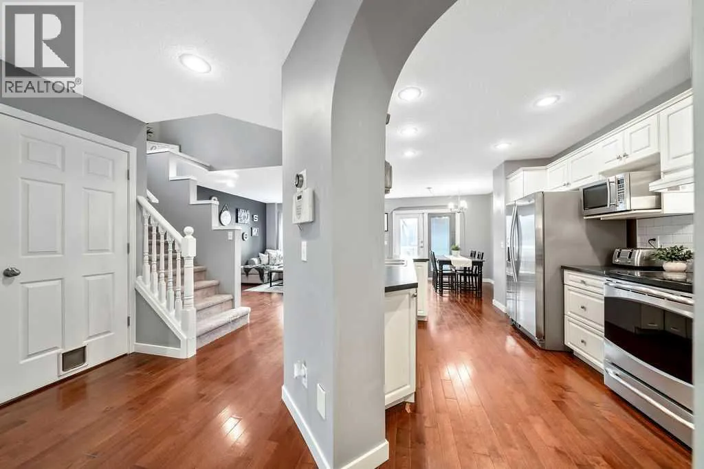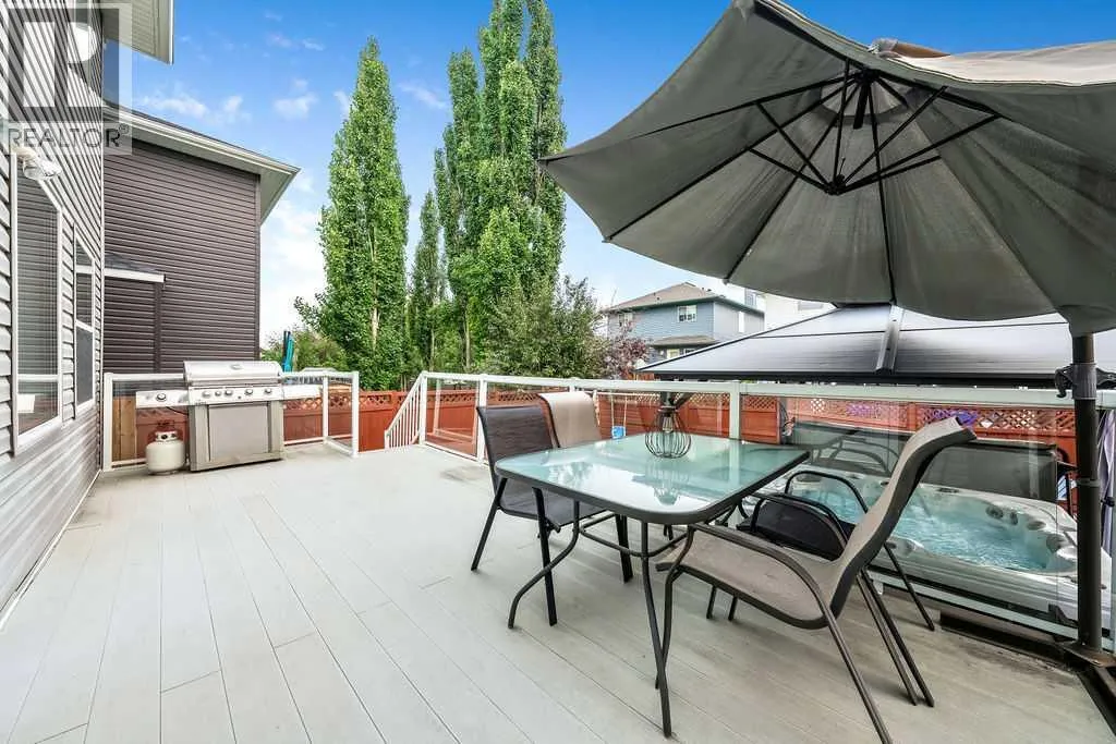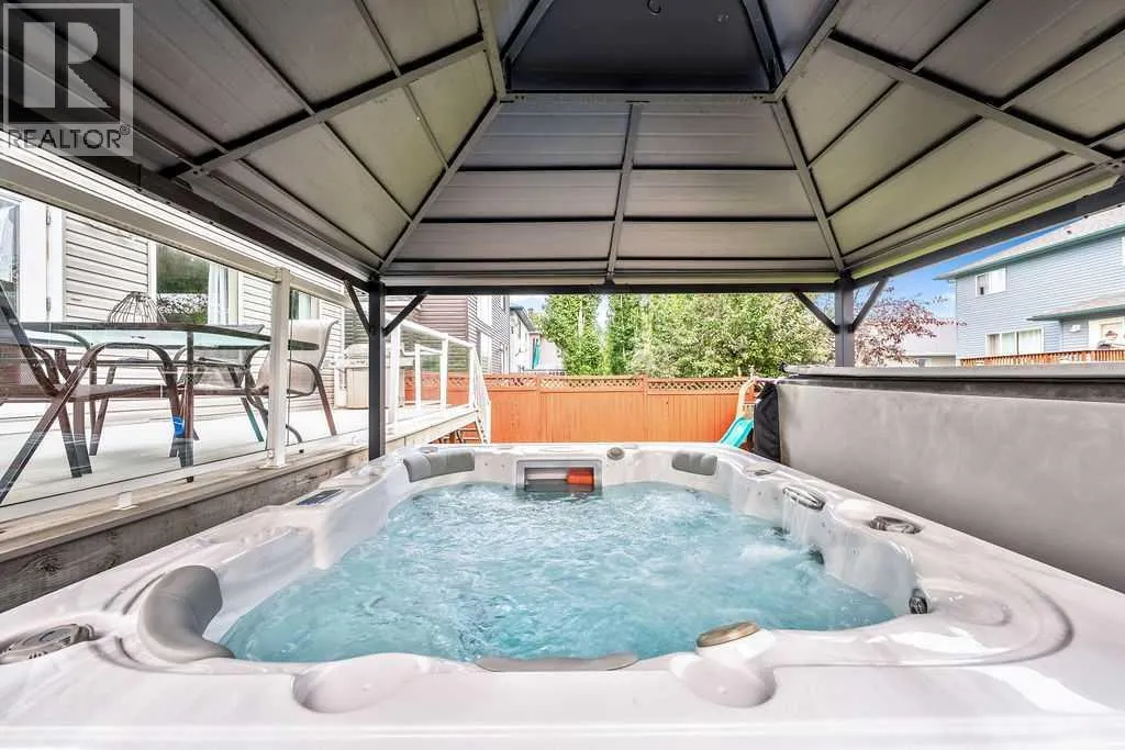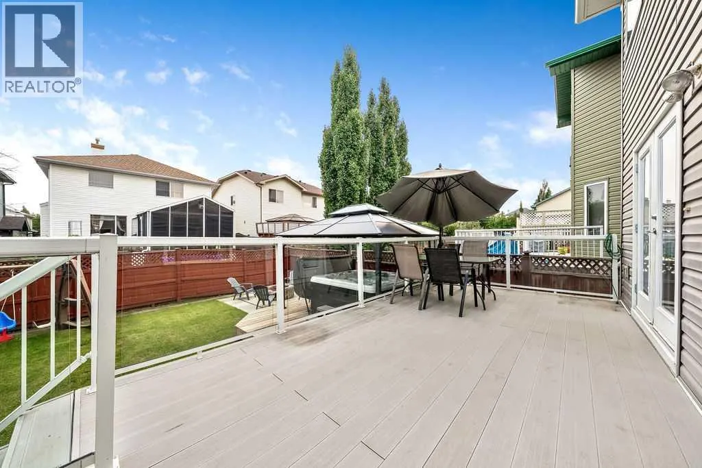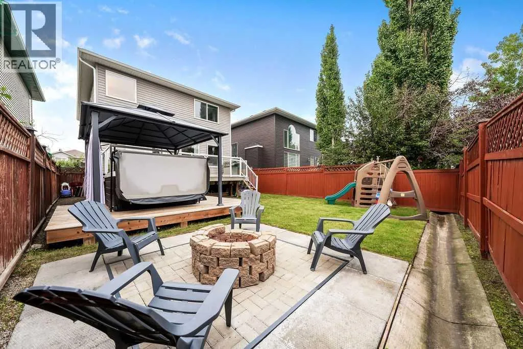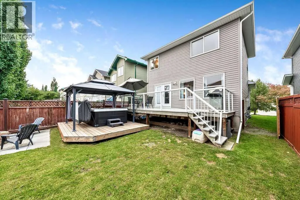 Tucked away in a quiet pocket of this friendly neighbourhood, this home offers a perfect blend of comfort, charm, and convenience. Step inside to find warm, inviting spaces filled with natural light and thoughtful architectural detailsâan ideal setting for everyday living and lasting family memories. The bright white kitchen features stainless steel appliances and strikes just the right balance between open-concept living and subtle separation with its elegant archway design. The cozy living room, anchored by a gas fireplace, is the perfect place to relax with loved ones, while the adjoining dining area easily accommodates family gatherings and opens seamlessly to the backyard. Outdoors, your private retreat awaits. A large composite deck, lower-level deck with a hot tub (2021), and fire pit area create the ultimate space for entertaining or unwinding under the stars. Mature crabapple and pear trees add a touch of beauty and privacy to the yard, enhancing the serene atmosphere. Graceful archways and open railings connect the main and upper levels, adding visual appeal and flow. Upstairs, an open landing contributes to the homeâs airy feel, leading to a spacious primary bedroom complete with walk-in closet and private ensuite featuring both a soaking tub and separate shower. Two additional bedrooms offer versatility for children, guests, or a home office, while the upper-level laundry room adds everyday convenienceâno more hauling baskets between floors! The lower level is drywalled and ready for your finishing touches, offering endless potential to suit your familyâs needs. A double attached garage ensures comfort and ease through the winter months. Recent upgrades include new siding (2022) and shingles (2022), giving peace of mind for years to come. With nearby schools, shopping, parks, playgrounds, walking paths, Spruce Meadows, and even a nearby pond where the kids can feed the ducks, the location couldnât be more ideal. Quick access to Stoney Trail makes commuti ng simple and stress-free. This one truly checks all the boxes for family living! (id:27476)