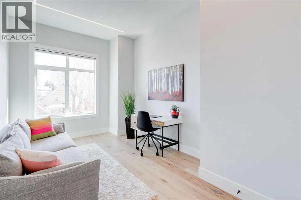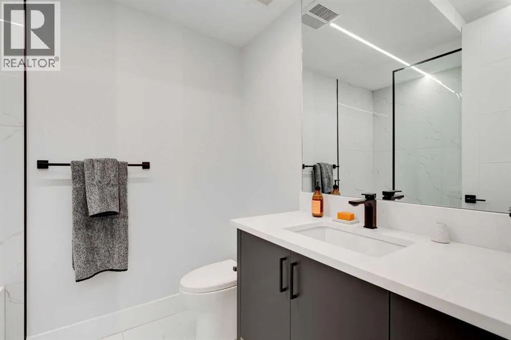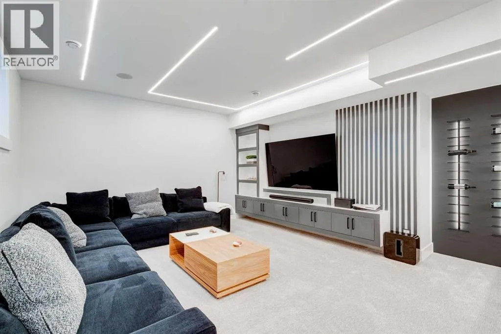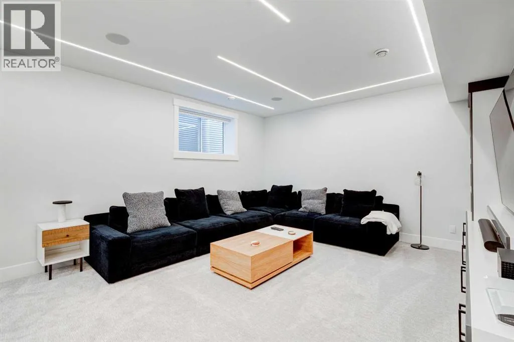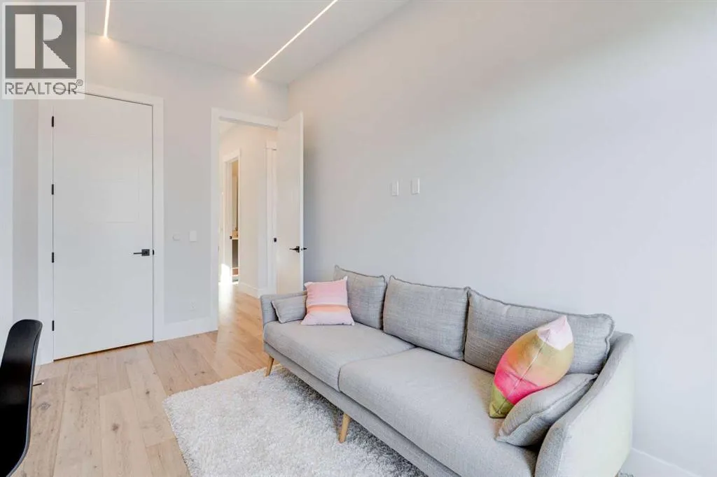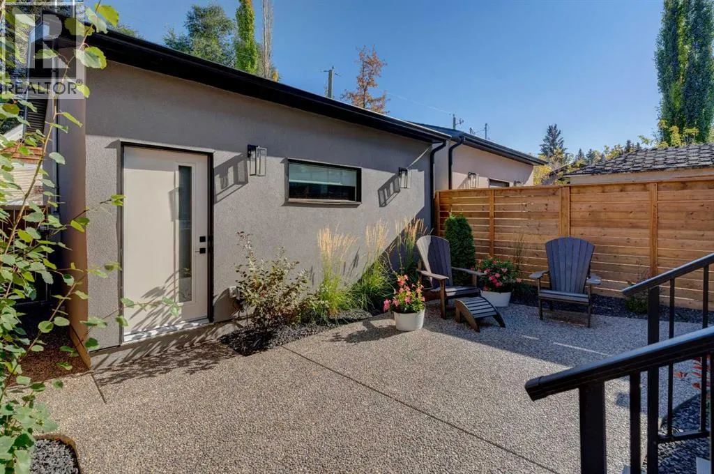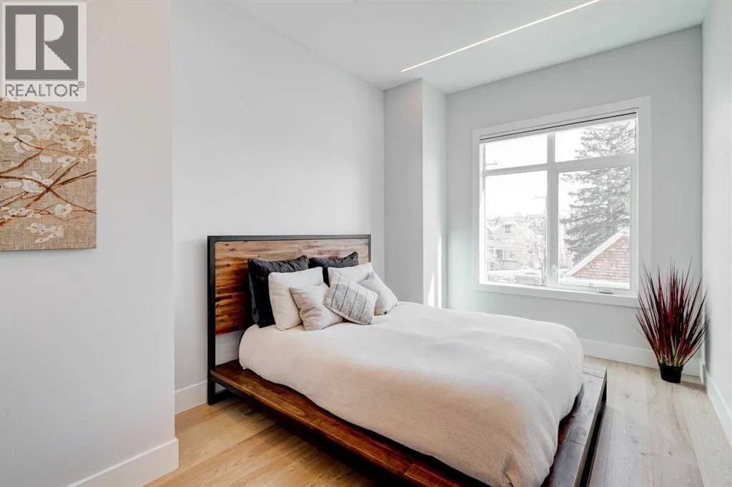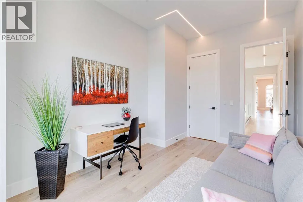 Step into refined luxury in this stunning modern home, perfectly situated in UPPER MOUNT ROYAL! Designed for effortless living, this 4-bed, 3.5-bath masterpiece offers endless impeccably crafted living space w/ high-end finishes and upgrades throughout! The striking brick exterior, lush artificial turf, and integrated lighting create an unforgettable first impression. Inside, the foyer welcomes you w/ soaring ceilings, wide-plank hardwood floors, and a stylish built-in bench w/ wood slat wall. A bright, open dining space w/ designer lighting and modern wood accented wall flows seamlessly into the high-end kitchen, a true showstopper w/ a massive waterfall quartz island, full-height flat panel cabinetry, and premium appliances. The sleek black and wood-accented cabinetry is complemented by under-cabinet lighting and island pendants that add a warm, inviting glow. The living room is anchored by a statement fireplace w/ floor-to-ceiling black marble w/ gold veining, creating a sophisticated yet cozy retreat. A wall of sliding glass doors extends the living space onto the deck, where extra-wide steps lead to the beautifully landscaped backyard featuring PRIVACY SCREENS, landscape lighting, and underground sprinklers for easy maintenance. An elegant powder room w/ a black vessel sink and a side mudroom w/ built-in storage round off the main level. A custom glass-enclosed staircase w/ open riser stairs and LED accent lights leads to the second floor, where the primary retreat is a true sanctuary. The spacious bedroom features modern ceiling lighting, arched windows, a sliding barn door, and a spa-inspired ensuite. The ensuite is a masterpiece w/ black and gold-veined marble, a freestanding tub, a glass-enclosed STEAM SHOWER w/ a rainfall head, and HEATED FLOORS for ultimate comfort. Two additional bedrooms, a sleek 4-piece bath w/ upgraded shower glass and heated floors, and a well-appointed laundry room w/ extra storage, a sink, and geometric tile flooring complete this level. The fully finished basement is the ultimate entertaining space, featuring a spacious media room w/ a built-in entertainment unit, a stylish wet bar w/ a full-height backsplash and wine storage, and an exercise area w/ rubber flooring and a mirrored wall. A fourth bedroom and another full bathroom w/ upgraded shower glass complete this level. This home is fully equipped w/ SMART HOME TECHNOLOGY, allowing you to control heating, cooling, lighting, security, and even the fireplace â all from your phone! The built-in sound system ensures seamless audio throughout, while Hunter Douglas AUTOMATED BLINDS add a touch of convenience. Additional features include A/C, security cameras, and an insulated DOUBLE GARAGE roughed-in for a gas heater. Located just steps from 17th Ave, this home offers unbeatable access to top restaurants, cafés, shopping, parks, and some of Calgaryâs best schools. Enjoy the perfect blend of urban convenience and upscale living in one of the cityâs most sought-after neighbourhoods! (id:27476)