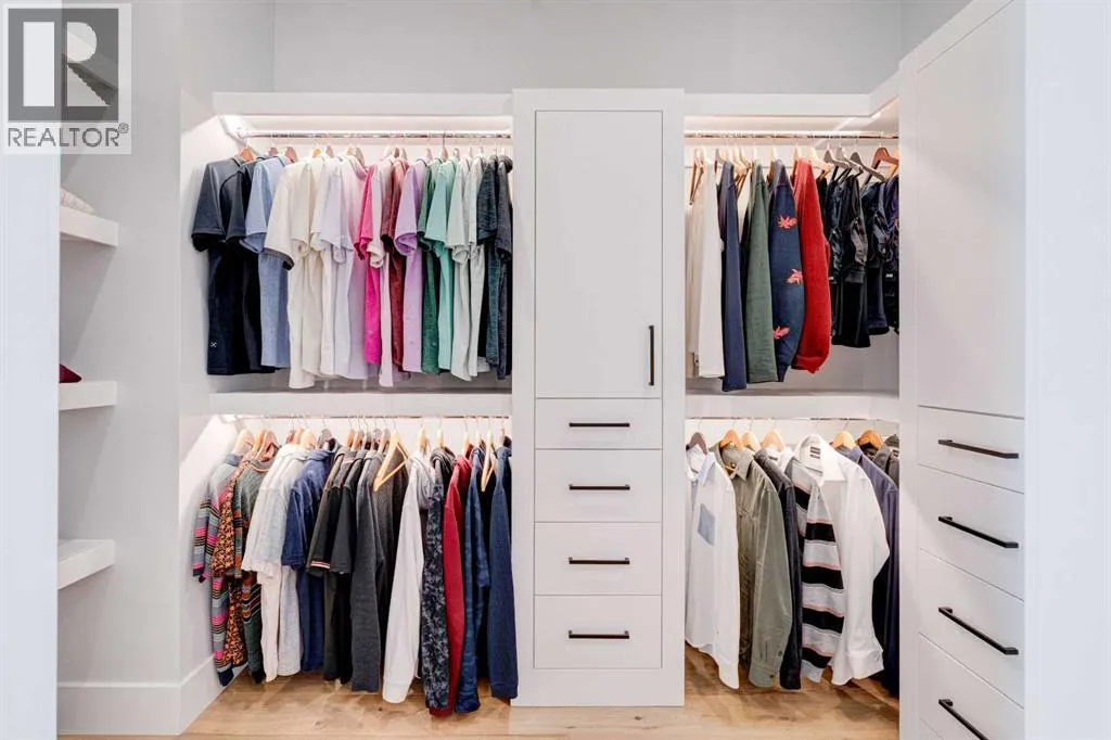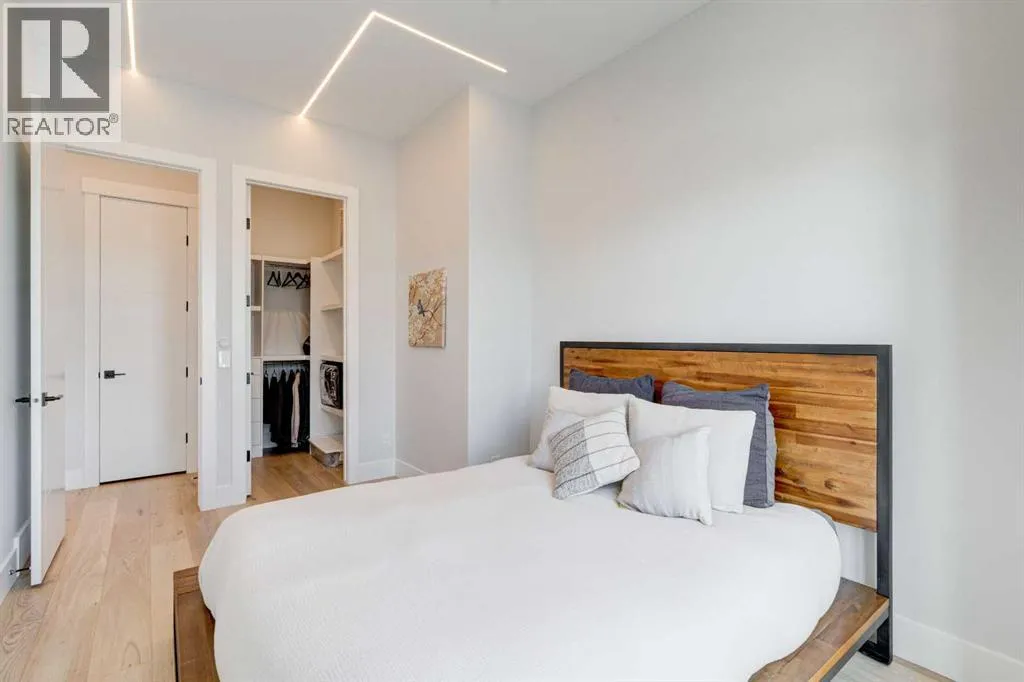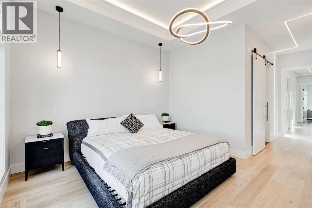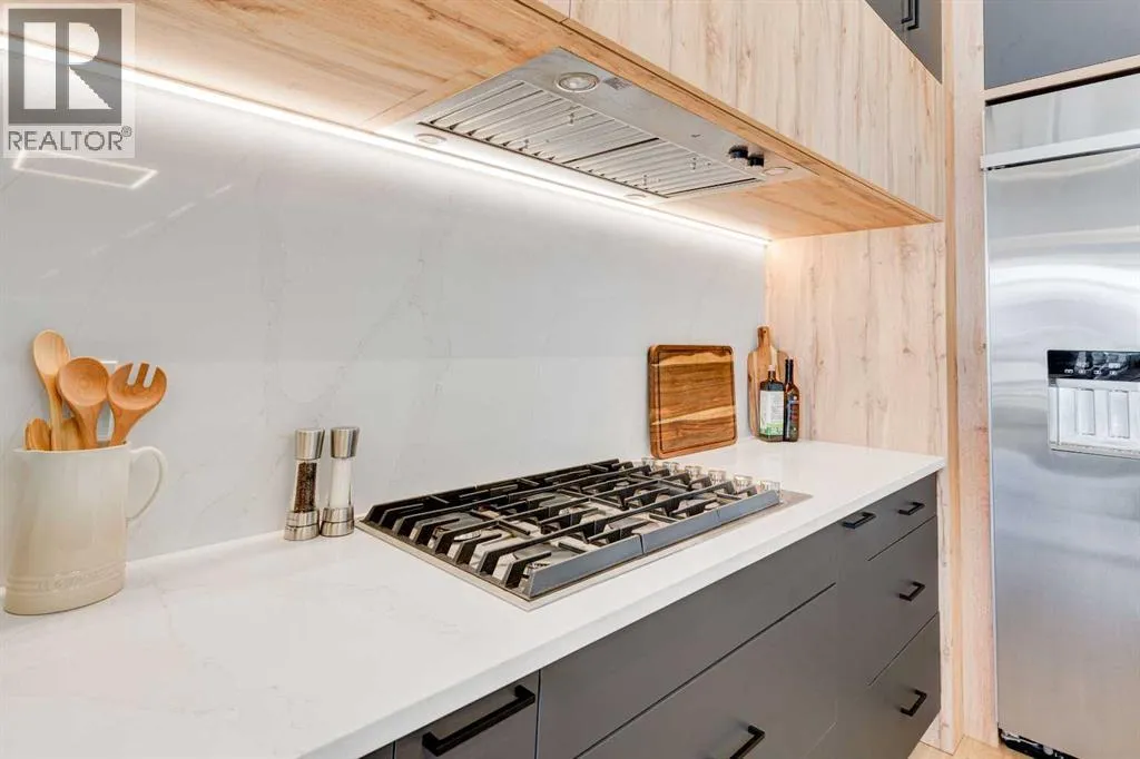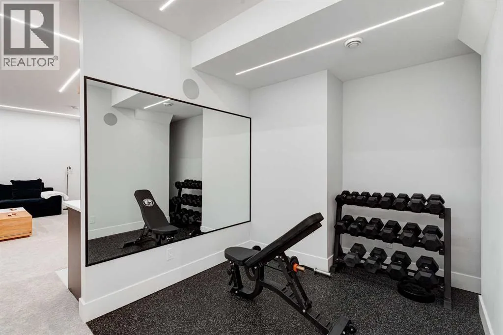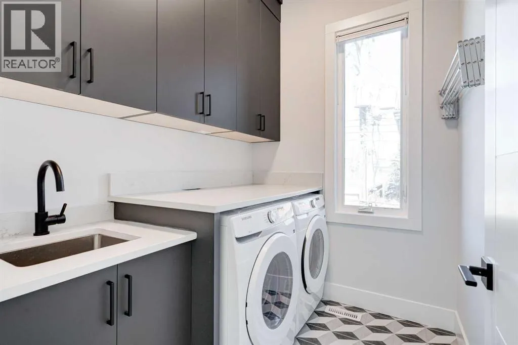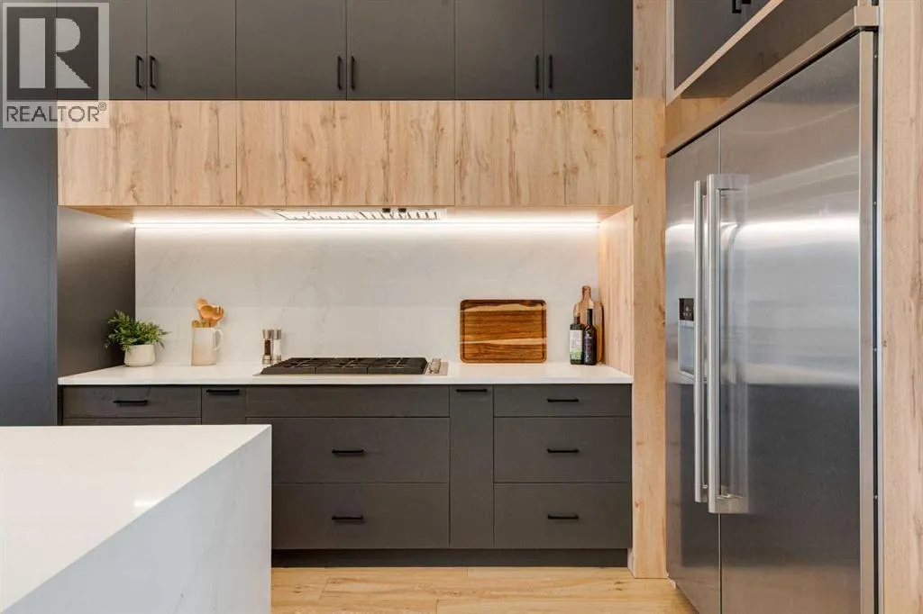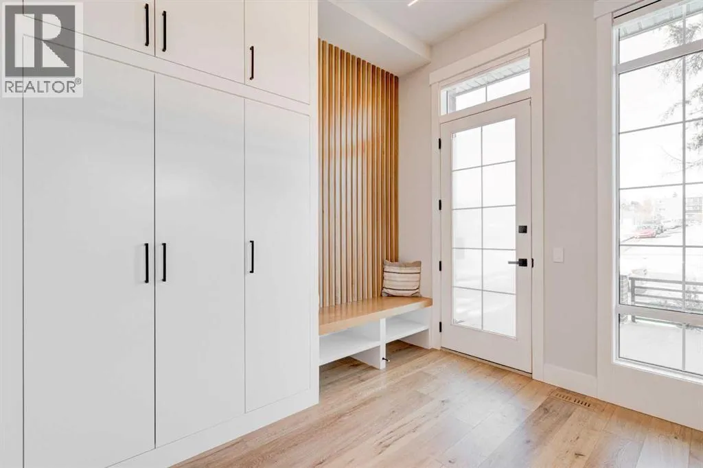 Step into refined luxury in this stunning modern home, perfectly situated in UPPER MOUNT ROYAL! Designed for effortless living, this 4-bed, 3.5-bath masterpiece offers endless impeccably crafted living space w/ high-end finishes and upgrades throughout! The striking brick exterior, lush artificial turf, and integrated lighting create an unforgettable first impression. Inside, the foyer welcomes you w/ soaring ceilings, wide-plank hardwood floors, and a stylish built-in bench w/ wood slat wall. A bright, open dining space w/ designer lighting and modern wood accented wall flows seamlessly into the high-end kitchen, a true showstopper w/ a massive waterfall quartz island, full-height flat panel cabinetry, and premium appliances. The sleek black and wood-accented cabinetry is complemented by under-cabinet lighting and island pendants that add a warm, inviting glow. The living room is anchored by a statement fireplace w/ floor-to-ceiling black marble w/ gold veining, creating a sophisticated yet cozy retreat. A wall of sliding glass doors extends the living space onto the deck, where extra-wide steps lead to the beautifully landscaped backyard featuring PRIVACY SCREENS, landscape lighting, and underground sprinklers for easy maintenance. An elegant powder room w/ a black vessel sink and a side mudroom w/ built-in storage round off the main level. A custom glass-enclosed staircase w/ open riser stairs and LED accent lights leads to the second floor, where the primary retreat is a true sanctuary. The spacious bedroom features modern ceiling lighting, arched windows, a sliding barn door, and a spa-inspired ensuite. The ensuite is a masterpiece w/ black and gold-veined marble, a freestanding tub, a glass-enclosed STEAM SHOWER w/ a rainfall head, and HEATED FLOORS for ultimate comfort. Two additional bedrooms, a sleek 4-piece bath w/ upgraded shower glass and heated floors, and a well-appointed laundry room w/ extra storage, a sink, and geometric tile flooring complete this level. The fully finished basement is the ultimate entertaining space, featuring a spacious media room w/ a built-in entertainment unit, a stylish wet bar w/ a full-height backsplash and wine storage, and an exercise area w/ rubber flooring and a mirrored wall. A fourth bedroom and another full bathroom w/ upgraded shower glass complete this level. This home is fully equipped w/ SMART HOME TECHNOLOGY, allowing you to control heating, cooling, lighting, security, and even the fireplace â all from your phone! The built-in sound system ensures seamless audio throughout, while Hunter Douglas AUTOMATED BLINDS add a touch of convenience. Additional features include A/C, security cameras, and an insulated DOUBLE GARAGE roughed-in for a gas heater. Located just steps from 17th Ave, this home offers unbeatable access to top restaurants, cafés, shopping, parks, and some of Calgaryâs best schools. Enjoy the perfect blend of urban convenience and upscale living in one of the cityâs most sought-after neighbourhoods! (id:27476)