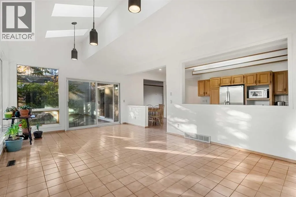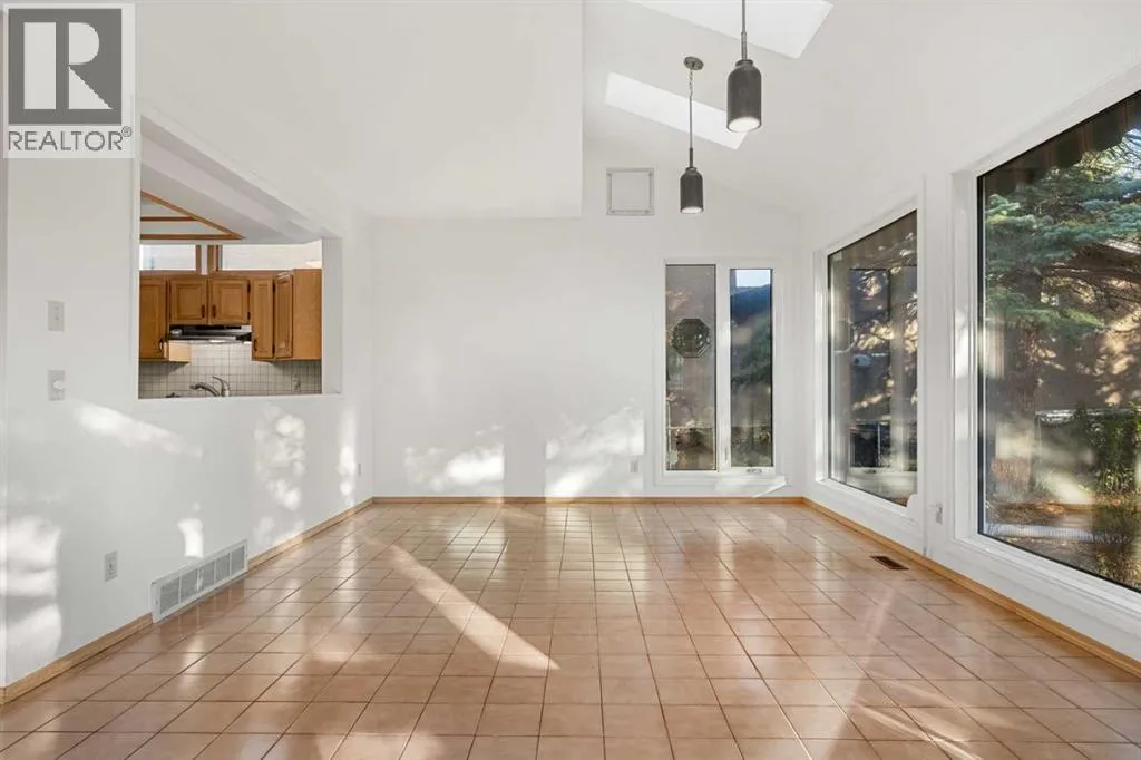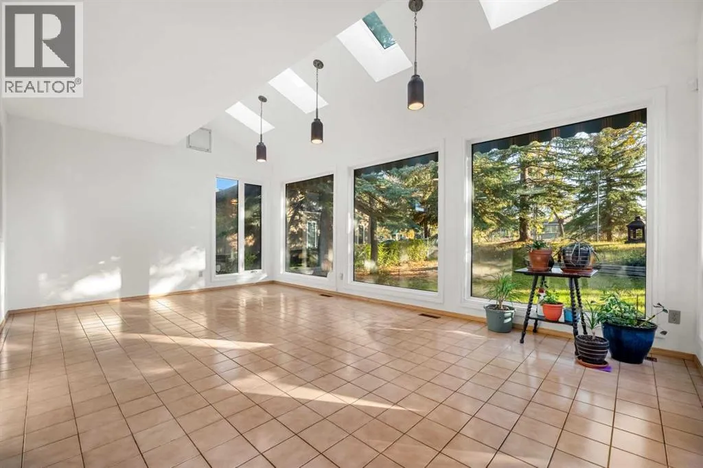Located on a quiet, tree-lined street in sought-after Shawnee Slopes, this spacious 2,467 sq. ft. detached home offers a rare blend of character, comfort, and peace of mind. From the moment you arrive, youâll notice the classic clay tile roof, exposed aggregate driveway, and mature landscaping that set a timeless tone for the property. Step inside to discover a home designed for both function and warmth, featuring a bright, well-defined main level with fresh paint, a cozy fireplace framed by custom built-ins, and large sliding doors that lead to the tranquil backyard.At the heart of the home, the kitchen offers plenty of cabinetry, stainless steel appliances, and a smart layout that connects seamlessly to the dining and living spaces. A sun-filled solarium with skylights and panoramic windows invites natural light throughout the day, the perfect space for dining, relaxing, or creative pursuits. Upstairs, the expansive primary suite features a private balcony and a luxurious ensuite complete with a deep jetted tub and steam shower, bringing a spa-like touch to daily living.Recent updates provide lasting value and confidence: large steam shower w/rainwater head, large jetted tub, two newer furnaces, 60 gal. commercial grade water heater, new central vac (w/hose for hose and garage), new triple glazed Lux windows, poly-b piping, removed, hot water hose bib in the garage, BBQ gas line in backyard and new acacia hardwood flooring that adds warmth and modern appeal. Outside, the 7,200+ sq. ft. lot feels like a private park, backing onto a peaceful green space and walking path, surrounded by mature evergreens that offer shade and privacy.Conveniently located near Fish Creek Park, the LRT station, top-rated schools, and all the amenities of Shawnessy and Millrise, this home combines a serene natural setting with everyday convenience. With its thoughtful updates, flexible layout, and solid construction, itâs ready to be personalized and enjoyed for years to come. Book your private showing today. (id:27476)