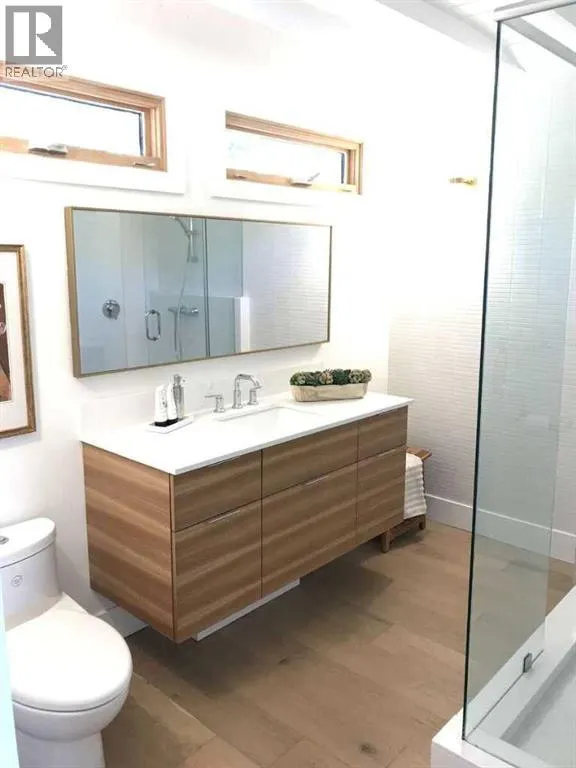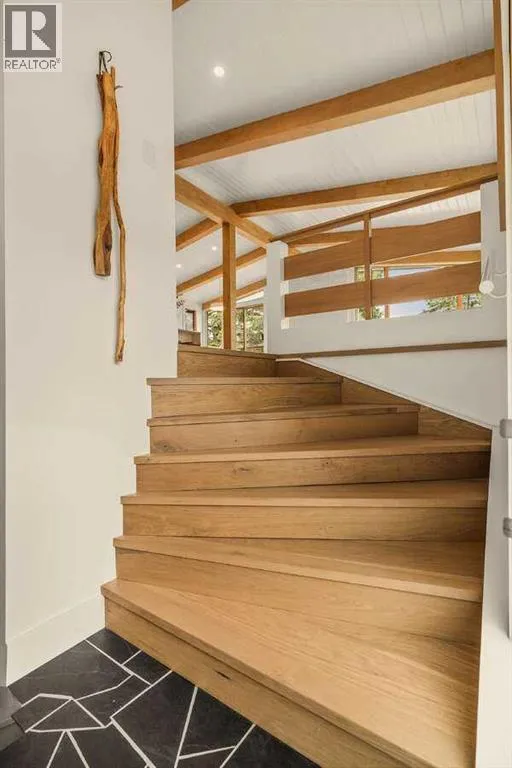 For more information, please click the "More Information" button. Welcome to one of Charleswoodâs most unique homes. This 1963 Midcentury beauty shines with touches of Scandi and Alpine style. Thoughtfully renovated over the past year, it offers over 2300 sq ft of living space. As you enter the house you will enjoy the new handcrafted railings, custom tiling, the new insulated and installed tongue and groove vaulted ceilings, brand new Lux wood windows, plank engineered hardwood and a bespoke wide balcony offering a panoramic view. The newly installed kitchen is minimalist and it offers ample storage. On this floor you will also find 2 bedrooms and 2 full bathrooms, all featuring exposed joist, tongue and groove ceilings. Downstairs the walkout basement has two bedrooms, a 4-pc bathroom, laundry, storage, and a generous family room with sliding doors to the front garden. Outside the house has been professionally landscaped and new exposed aggregate driveway and steps, new fence, deck. You are just minutes from Market Mall, U of C, Foothills Hospital, Northland Mall, Brentwood Mall and Nose Hill Park via the pedestrian bridge. Confederation Park is just 10 min away and Downtown is 15 min. Designed, renovated and loved by the current owner. Do not miss out, one of a kind! (id:27476)