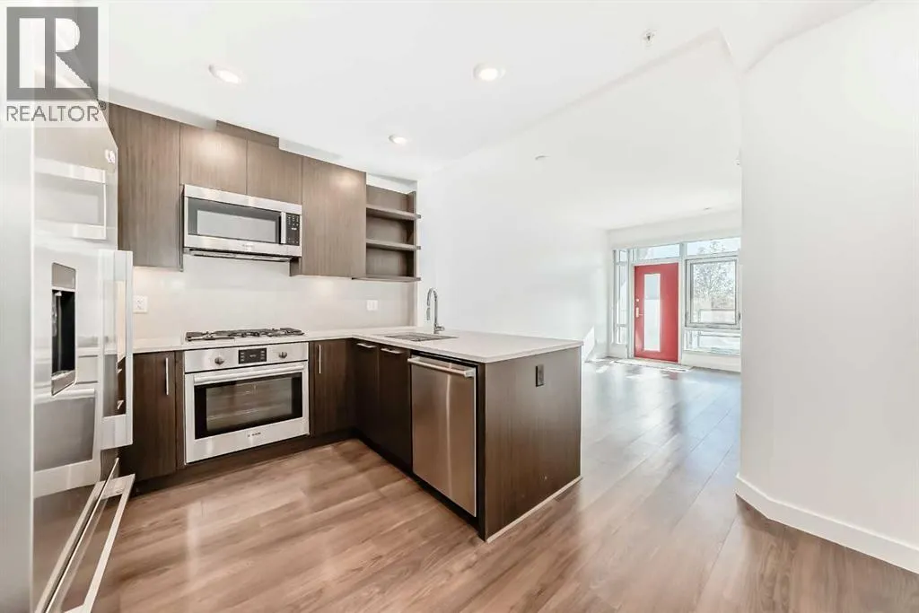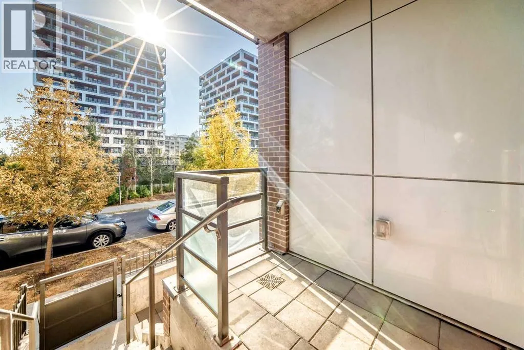 Welcome to urban living at its best! This beautifully designed 2 bedroom, 2 bathroom ground-floor unit offers exceptional indoor-outdoor flow with two oversized patiosâperfect for entertaining, relaxing, or giving your pet room to roam. Enjoy the convenience of your own private entrance, making this home feel more like a townhouse than a condo.Inside, you'll find a bright and open floor plan with large windows that flood the space with natural light. The modern kitchen features sleek finishes, ample cabinetry, and a spacious breakfast bar ideal for gatherings. Both bedrooms are generously sized, with the primary suite offering a walk-through closet and ensuite bath and the second bedroom with space saving built-in Murphy bed! In-suite laundry and AC for the summer months included! Extras include titled underground parking (oversized stall with only one adjacent stall!), a separate storage unit, and bike storage.Located in a vibrant inner-city community, this amenity-rich building features two fully equipped gyms, a tranquil yoga studio, a spin studio, a stunning rooftop patio with city views, car wash and even a dog wash station for your furry companion. Bridgeland is filled with restaurants, shops, parks, coffee shops, grocery stores, all within walking distance, as well as great access to the C-Train station. Whether you're a professional, downsizer, or savvy investor, this stylish and convenient home checks all the boxes.Walkable, livable, and move-in readyâcome see what inner-city living can look like! (id:27476)