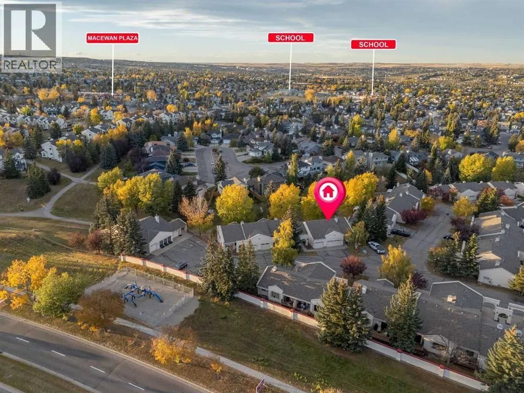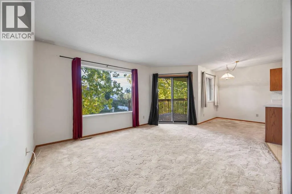 Tucked into a quiet 55+ adult community in Sandstone Valley, this charming walkout bungalow townhouse offers an exceptional opportunity for downsizers or retirees seeking a peaceful, low-maintenance lifestyle with room to make it their own. With over 1,600 sq ft of developed living space across two levels, this 3-bedroom, 2-bathroom home is functional, spacious, and ready for your personal touch. The main floor features a bright and practical layout, including a well-kept kitchen with plenty of cabinet storage and a cozy dining area that leads onto a raised deck overlooking mature trees and a serene greenbelt. The generous living room, primary bedroom, a second bedroom, and a full 4-piece bathroom complete the upper level. The fully finished walkout basement offers a large family room with a gas fireplace, a third bedroom, and a 3-piece bathroomâperfect for visiting guests or hobbies. The lower-level patio opens to the landscaped grounds that back onto a tranquil pathway, creating a lovely backdrop for relaxation. The lower-level utility room includes laundry and extra storage. A single attached garage and a well-managed condo board add further value. Ideally located close to transit, shopping, this home is a great fit for those looking for quiet comfort and the flexibility to update finishes over time. (id:27476)