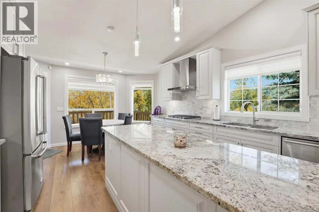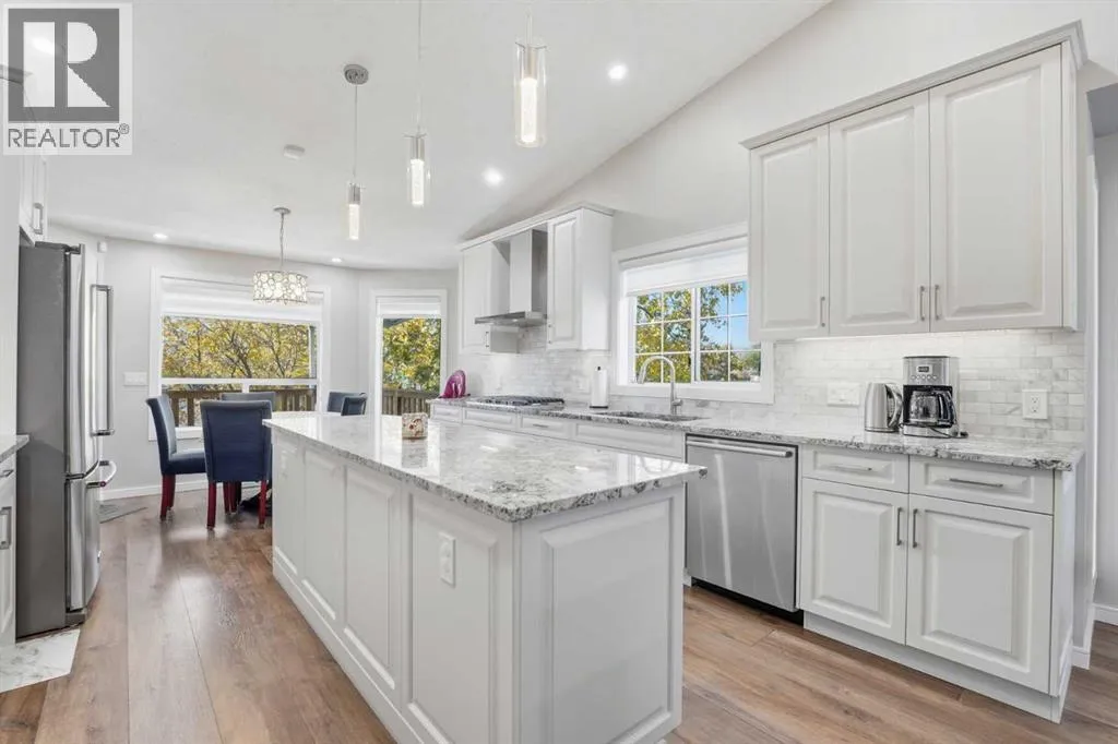 HONEY! START THE CAR! Welcome home to this BEAUTIFUL corner lot, adjacent to GREENSPACE, where MODERN ELEGANCE meets FUNCTIONALITY. This spacious 2,382 square feet in total bi-level DETACHED home with a DOUBLE ATTACHED GARAGE is sure to IMPRESS! This property has many FEATURES that you will LOVE, including the unique floor-plan with the living room located on the main floor level, and the OPEN CONCEPT layout with MODERN flat textured high VAULTED CEILINGS. RECENT RENOVATIONS have been done inside this property from TOP to BOTTOM! This property FEATURES new high-end STAINLESS STEEL appliances, GRANITE counter tops, CUSTOM cabinetry with tons of storage space, a LARGE kitchen Island, BUILT-IN convection oven and microwave, a 5-burner GAS RANGE STOVETOP, GORGEOUS wide-plank scratch resistant flooring throughout, NEW carpets throughout, MODERN flat textured ceilings throughout, high-end CLASSY light fixtures and pot lights, CUSTOM window coverings, DECK access conveniently located off of the kitchen, 4 spacious sized bedrooms, including the primary bedroom with a WALK-IN CLOSET and 4-PIECE ENSUITE, 3 full bathrooms FEATURING TILE FLOORING, TILE BACKSPLASH, and GRANITE countertops, JETTED bathtub on the lower level, LOTS of windows throughout allowing for lots of NATURAL sunlight, the laundry room features a LARGE window and a LARGE sink, lots of STORAGE SPACE, a WELL-KEPT and spacious FULLY FENCED backyard, included with this property is an A/C unit for those hot spring and summer months, and the ICING ON THE CAKE - this property features high-end GEMSTONE EXTERIOR lighting!!! Make this IMPRESSIVE property your new home, this property will not last long, call your favourite realtor today! (id:27476)