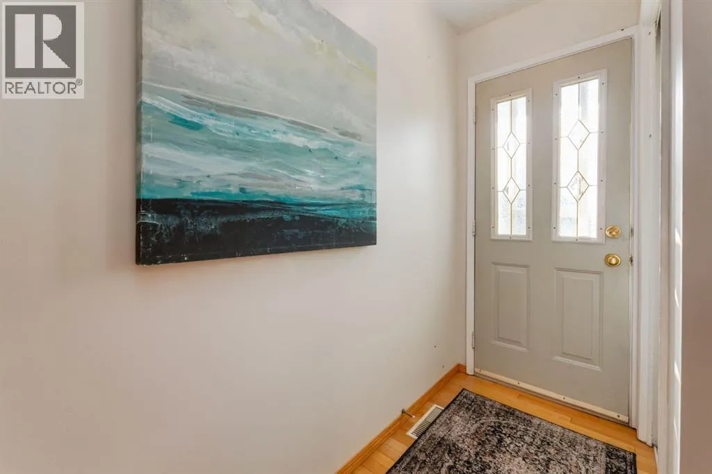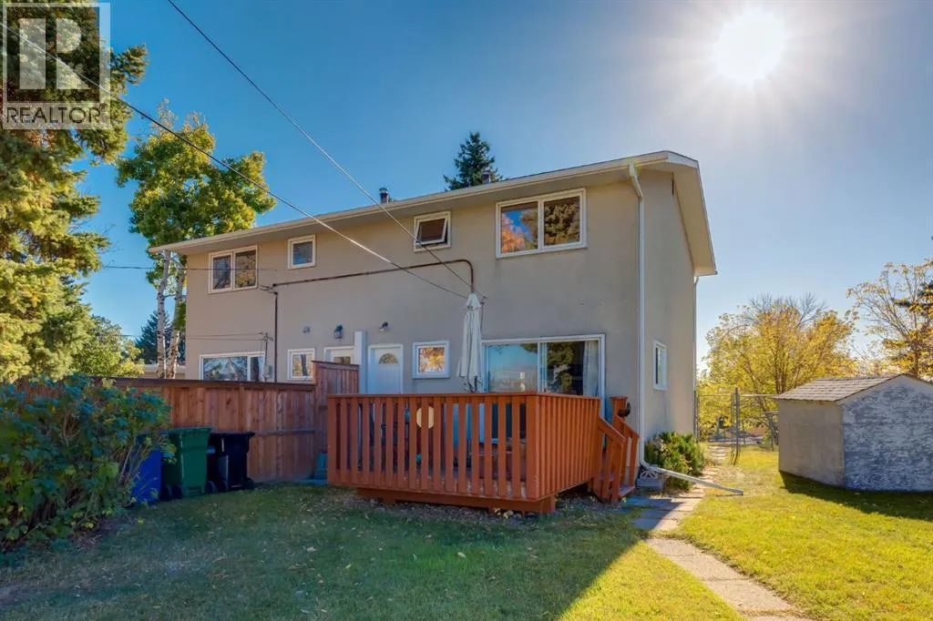 Welcome to this charming 2-storey half duplex located on a quiet tree-lined cul-de-sac in the heart of Acadia. Perfectly positioned beside a green pathway and backing onto a school yard and park setting, this property combines privacy, convenience, and family-friendly living. The pie-shaped lot offers an expansive backyard with alley access, a detached single-car garage, and RV parking. A front chain-link fence adds security while still showcasing curb appeal. Inside, the south-facing living room fills the main level with natural light. The updated kitchen features glossy cabinetry, an undermount sink, and space for a full dining table, perfect for family meals and entertaining. From here, sliding patio doors open to a private backyard patio. An additional back entrance leads to a mudroom with a half bathroom and convenient basement access. The upper floor offers three spacious bedrooms and a full 4-piece bathroom plus a large linen closet. Downstairs, the fully finished basement includes a family room, an additional bedroom, and another 4-piece bathâplus rough-ins from a previous kitchen setup, providing suite potential (subject to approval and permitting by the city/municipality) 4 bedrooms total (3 up, 1 down), 2.5 baths, and no condo fees, this home offers incredible value in one of Calgaryâs most sought-after neighbourhoods. Schools, parks, shopping, and transit are all within easy reach, making this the ideal opportunity for families, investors, or first-time buyers alike. (id:27476)