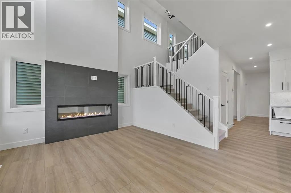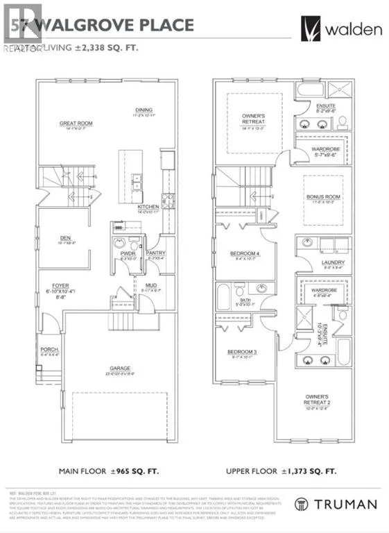 Discover contemporary luxury in this exceptional 3-Bedroom, plus main floor Den, 2.5-Bathroom TRUMAN-built home, perfectly situated in the sought-after community of Walden. Offering the ideal balance of style, comfort, and convenience, this residence is just moments from shopping, scenic pathways, and playgroundsâperfect for family living. Plus, the home backs onto a serene greenspace, offering added privacy and beautiful views right from your backyard. Step inside to find a bright, open-concept design that seamlessly connects the living spaces. The Chefâs Kitchen is a standout, boasting full-height cabinetry with soft-close doors and drawers, sleek quartz countertops, and premium stainless steel appliances. The Great Room is an inviting space with its soaring open-to-above design, and a fireplace. A main-floor Den offers flexibility for a home office or creative space, while a 2-piece Bathroom and a well-designed Mudroom add to the homeâs functionality. Upstairs, the Primary Bedroom is a private retreat, featuring an elegant Tray ceiling, a luxurious 5-piece Ensuite, and a spacious walk-in closet. The upper level also includes a versatile Bonus Room, two generously sized Bedrooms, a stylish 4-piece Bathroom, and a convenient Laundry area. The unfinished Walk Out Basement offers endless possibilities for customization. With its peaceful location backing onto greenspace, this home provides enhanced privacy, making it ideal for relaxing or entertaining in a tranquil outdoor setting. Donât miss your opportunity to experience the elevated living of this newly constructed TRUMAN home. *Photo gallery of similar model, finishings may vary* (id:27476)