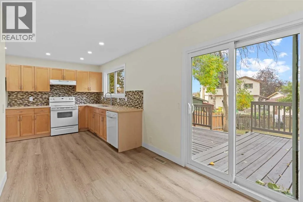 Welcome to 361 Whitlock Way NE, a stunning, FULLY RENOVATED two-storey home on a quiet, family-friendly street in the heart of Whitehorn. This move-in ready property combines modern style with functional design, ideal for young families or first-time buyers.Step inside to a bright, open living room that flows into the modernized kitchen and dining area. The kitchen features sleek white appliances, NEW QUARTZ COUNTERTOPS, ample cabinetry, a pantry, and UPGRADED POT LIGHTS, creating a fresh, contemporary space perfect for everyday living and entertaining. The main level also includes a convenient two-piece bath and access to a MASSIVE, FULLY FENCED BACKYARD with a deck, perfect for summer BBQs and outdoor fun.Upstairs offers three spacious bedrooms, including a generous primary suite, and a beautifully upgraded four-piece bathroom. The FULLY DEVELOPED BASEMENT provides a large rec room ideal for movie nights, a play area, or a home office, plus extra storage and utility space.Every detail has been thoughtfully updated, including NEW WINDOWS, LIGHT FIXTURES, FAUCETS, FRONT & PATIO DOORS, LUXURY VINYL PLANK & CARPET FLOORING, FRESH PAINT, and NEW GUTTERS. Even smaller touches like NEW ELECTRICAL PLUGS and modern finishes add to the homeâs polished feel.Enjoy 2-CAR OFF-STREET PARKING and an unbeatable location, minutes from WHITEHORN LRT, PETER LOUGHEED HOSPITAL, SUNRIDGE MALL, schools, shopping, and parks.Just move in and enjoy your new beginning in Whitehorn. (id:27476)