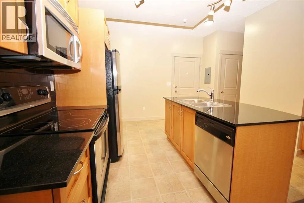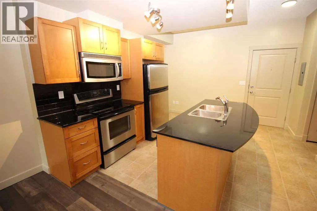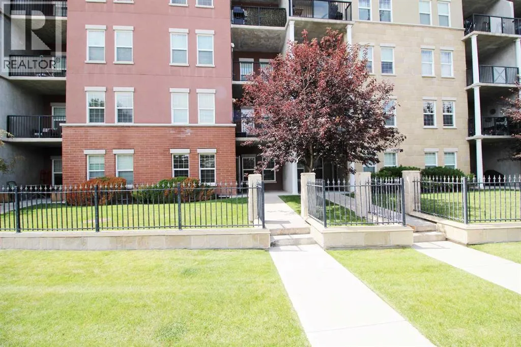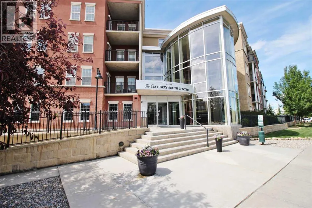 Step into the enchanting allure of Gateway Southcentre, where this beautifully upgraded 1 bed + den ground floor sanctuary awaits. Boasting 9-foot ceilings, large windows, luxury flooring and a large private patio overlooking a quiet street, this residence radiates charm and grace. The kitchen offers S/S appliances, custom cabinets, granite countertops plus a large center island/breakfast bar perfect for culinary enthusiasts and social butterflies alike. Completing this lovely home is a good sized bedroom, 4pc bath and laundry area. Additional bonuses: ALL utilities included in the condo fees plus a host of amenities including one titled U/G parking stall with a large storage cage in front plus a fitness centre, party rooms, guest suites and a huge central courtyard perfect for enjoying the beautiful outdoors. Located steps away from Southcentre Mall, City Transit/LRT station, schools, parks, restaurants and easy access to main roadways. (id:27476)