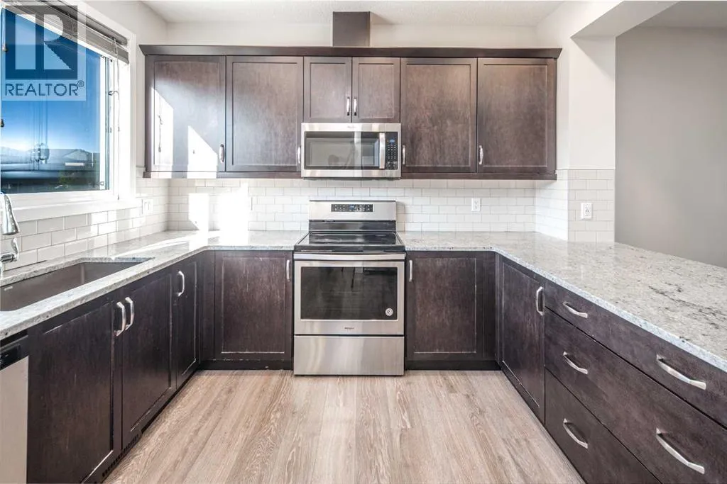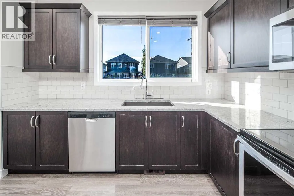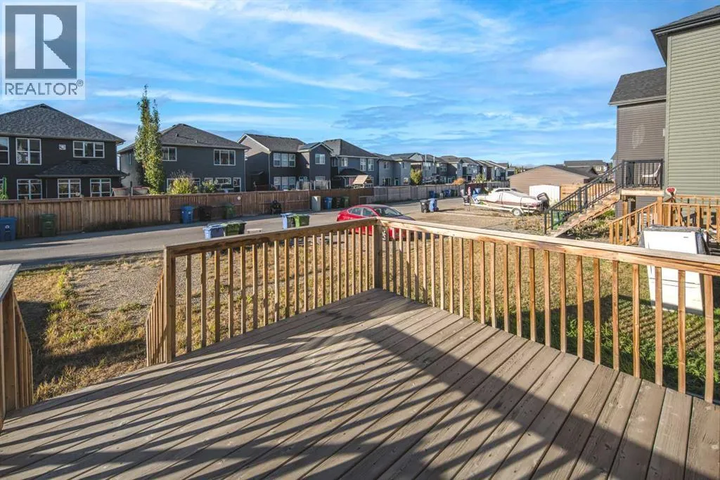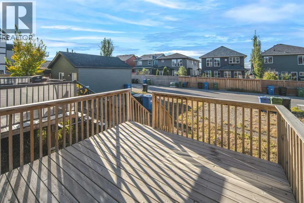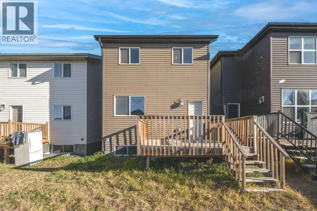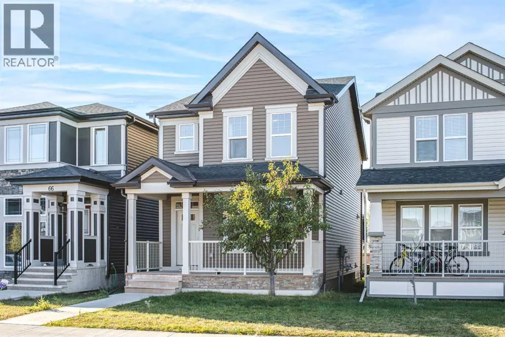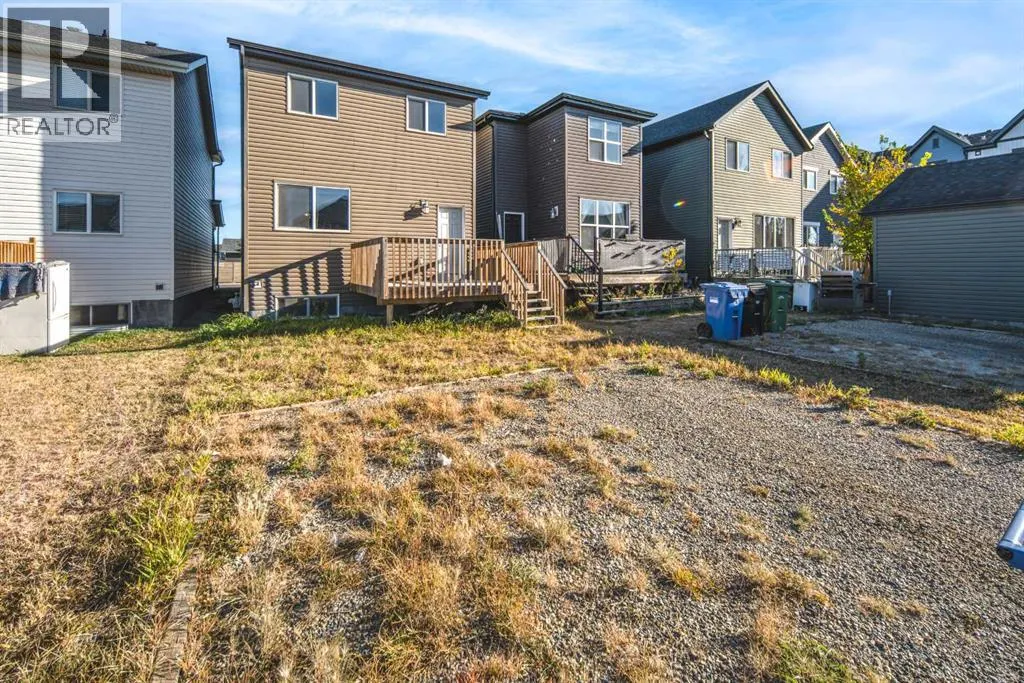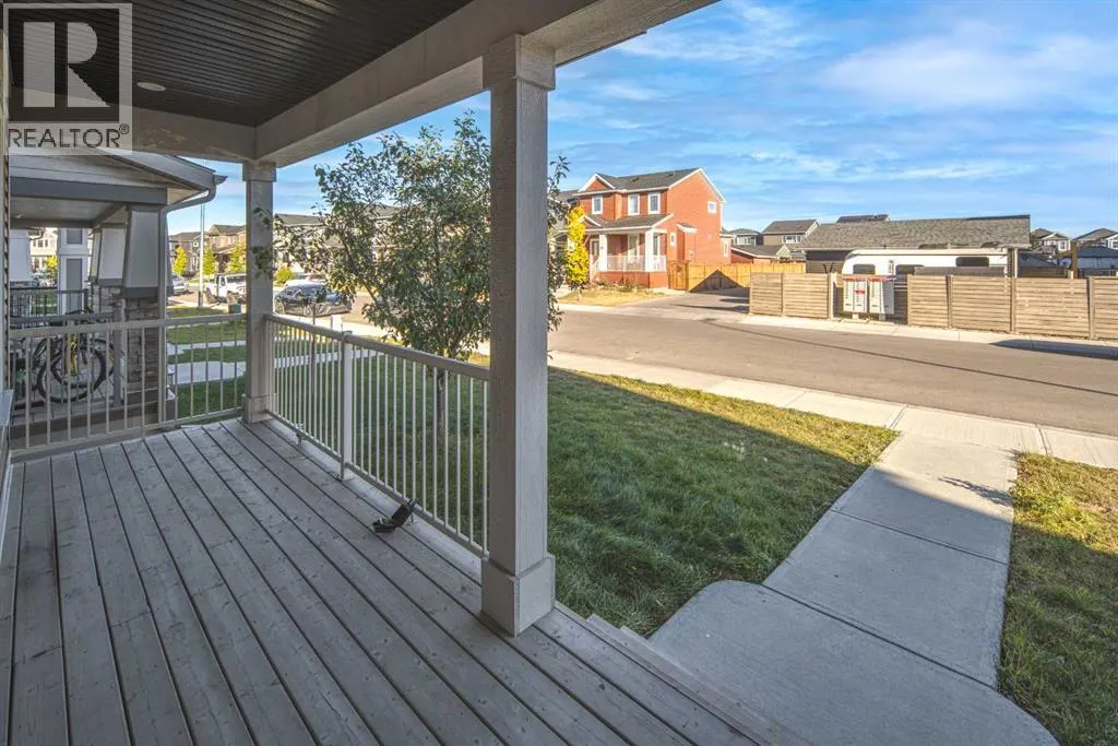 Welcome to this stunning Jayman-built 3-bedroom, 2.5-bath home, perfectly situated on a quiet street in the desirable community of Evanston. Featuring nearly 1,581 sq.ft. of beautifully designed living space plus an unfinished basement awaiting your personal touch, this home offers style, comfort, and endless potential. Enjoy your morning coffee on the charming front porch while watching the kids play in the front yard. Step inside to an inviting open-concept main floor with 9-foot ceilings, large south-facing windows, and an abundance of natural light. The spacious living room flows seamlessly into the dining areaâideal for family gatherings and entertaining. A built-in workspace beside the staircase provides the perfect spot for remote work or study. The heart of the home is the modern kitchen, showcasing a large island with seating for three, granite countertops, a subway tile backsplash, stainless steel appliances, and elegant cabinetry with mantel detailing. The rear mudroom features a convenient powder room and leads to a large deck and a sunny south-facing backyardâperfect for BBQs and outdoor enjoyment. With rear lane access, thereâs room for a future oversized double garage or RV/boat parking. Upstairs, the primary suite offers a walk-in closet and a bright 4-piece ensuite. Two additional spacious bedrooms, a stylish main bath, and upstairs laundry complete the upper level. The open basement features a large south-facing window, offering great potential for a future recreation room or additional living space. Recent upgrades include a brand-new roof, new siding, soffits, downspouts, and a new dishwasherâproviding peace of mind and great curb appeal. Youâll also love the instant hot water system for everyday convenience. Located close to parks, playgrounds, schools, and with easy access to Stoney Trail and Symons Valley Parkway, this turn-key Jayman-built home is move-in ready. Donât miss the opportunityâschedule your private showing today! (id:27476)