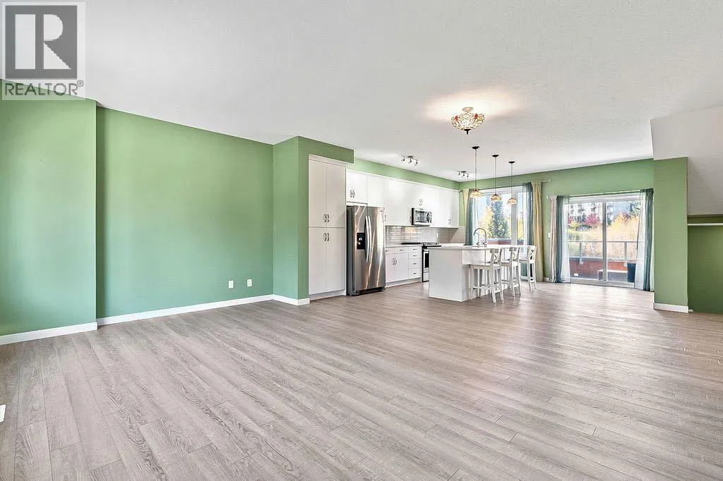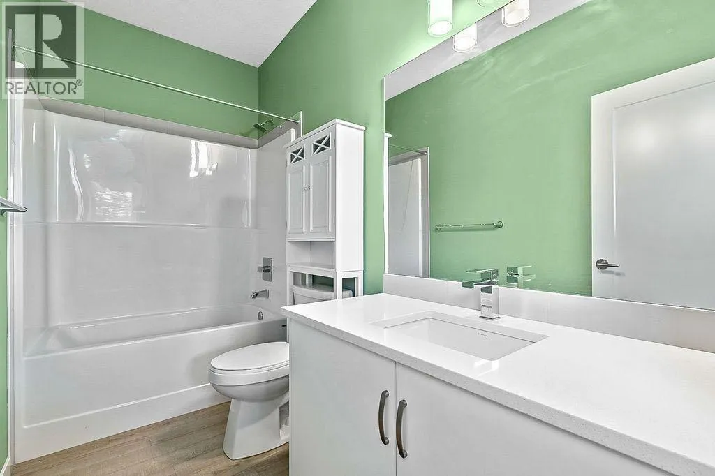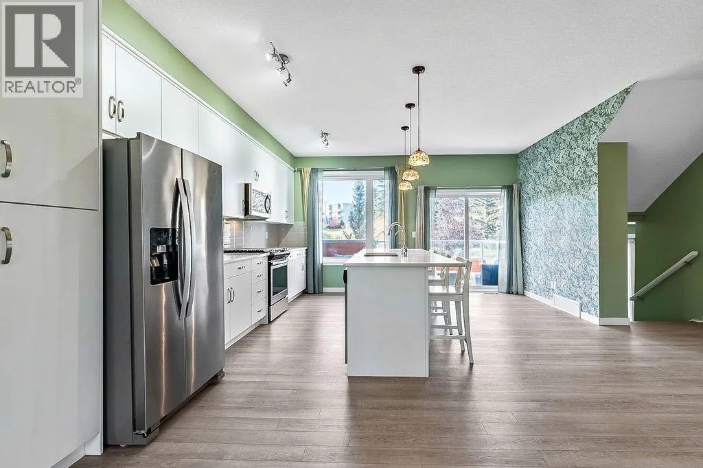 Discover this stunning 2019 townhome in the desirable Fish Creek Shawnee Park neighbourhood. This two-story, End-unit residence features an open-concept design with luxury vinyl plank flooring throughout all levels, creating a sleek and modern feel. The bright and spacious layout is perfect for entertaining, with a convenient kitchen island, central dining space, and adjoining living area. Step outside to a large balcony offering terrific views of green space and a playground â ideal for outdoor gatherings.The upper level boasts a three-bedroom layout, including a spacious master bedroom with a walk-in closet and a private three-piece en suite. A convenient laundry area is also located on this level. The modern kitchen is equipped with quartz countertops and stainless steel appliances, combining style and functionality.Additional highlights include central air conditioning for year-round comfort, and low-maintenance condominium fees that cover snow removal, landscaping, and insurance. The complex is surrounded by established amenities such as schools, Fish Creek Park, and is just a short walk to Fish Creek LRT station, making commuting a breeze.This elegant home offers a perfect balance of comfort, style, and convenience. Donât miss your chance to make it yours! (id:27476)