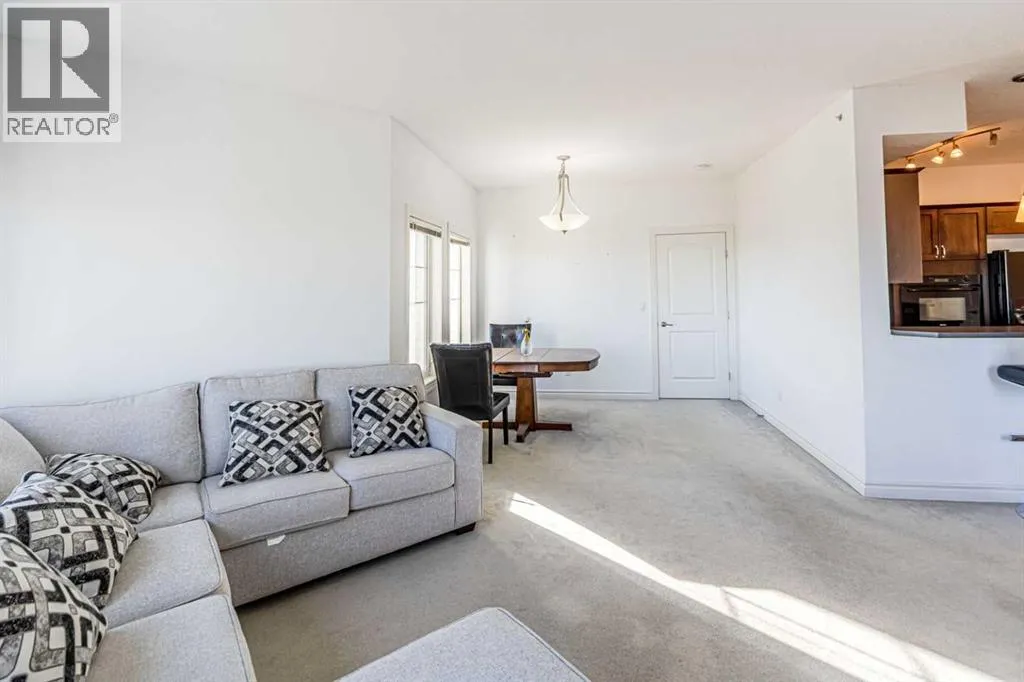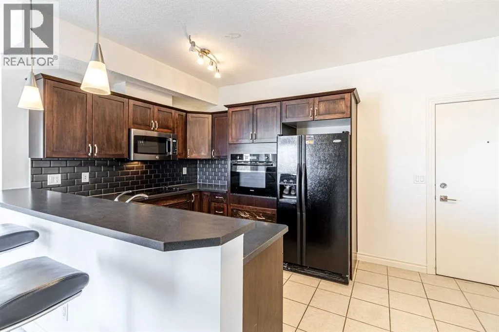 Discover the perfect blend of luxury and comfort in this top-floor corner unit at Red Haus, nestled in the prestigious Royal Oak Community! Built in 2007, this stunning condominium offers lovely city views from every room, complemented by an open and spacious layout with knockdown 9-foot ceilings that flood the space with natural light. The expansive living and dining areas are ideal for entertaining, while the well-appointed kitchen boasts rich brown cabinets, sleek black appliances (including a Bosch cooktop, wall oven, and OTR microwave), anthracite sink, deep pot drawers, and banjo counters with a convenient breakfast bar. Step out onto the private, iron-railing enclosed balcony with a gas BBQ hook-up to enjoy panoramic Calgary vistas.The primary bedroom is generously sized with his/her closets and a walk-through design for privacy, featuring an ensuite bathroom tiled to the ceiling with large mirrors. A secondary bedroom and another full bathroom are situated at the opposite end for added separation. Upgrades include tile and carpet flooring throughout, a Whirlpool ice-dispenser fridge, garburator, and tilt tray in the sink. Plus, for your convenience, the seller will purchase a new washer prior to possession, ensuring a seamless move-in experience.This unit includes a titled underground parking space with high ceilings for larger vehicles, a designated bike storage spot, and a titled storage locker. As part of the pet-friendly Red Haus Ravensburg building, residents enjoy access to a well-maintained amenities building with a gym, games room (featuring a pool table and darts), and a rentable gathering area with a full kitchen and gas fireplace. Elevators add everyday convenience, while condo fees cover heat, water, sewer, trash, snow removal, landscaping, and more.Ideally located near the YMCA rec center and a vibrant shopping center with groceries, restaurants, and shops, this property offers an exceptional lifestyle opportunity. Donât miss outâschedule a viewing today and make Red Haus your new home! (id:27476)