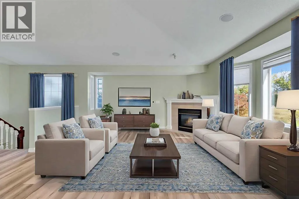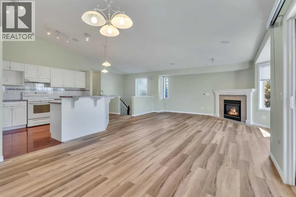 INTRODUCTION: Welcome to Valley Ridge! Nestled within the Highlands of Valley Ridge complex, this air conditioned bungalow-style villa provides a harmonious blend of comfort and community living. The area is well known for its vibrant social scene, offering residents opportunities to connect and participate in events throughout the year. MAIN LEVEL FEATURES: Upon entering the home, you are greeted by a spacious and inviting main level. A family room, highlighted by a corner gas fireplace, creates a warm atmosphere ideal for relaxation. The main level also includes a full four-piece bathroom, ensuring convenience for both residents and guests. Step outside to your private patio, a perfect spot for unwinding and enjoying the fresh air. UPPER-LEVEL LIVING: The upper level showcases an open-concept design that enhances the sense of space and light. Striking new vinyl planking flooring extends throughout the area, while large windows and patio doors flood the space with sunshine. The kitchen is equipped with ample cupboard space, generous countertops, a large island for quick meals, and a corner pantry for storage. Adjacent to the kitchen, the living room features another corner gas fireplace and a dining area, providing an excellent setting for entertaining or relaxing with family and friends. BEDROOMS AND BATHROOMS: the primary bedroom is spacious and includes a walk-in closet and a three-piece ensuite for added privacy and comfort. There is an additional bedroom, accompanied by a four-piece bathroom, making this home suitable for families or guests. Laundry facilities are conveniently located on this level as well. COMMUNITY AND LOCATION: Beyond the home itself, Valley Ridge is a thriving community with an active association that organizes events such as Music in the Garden, Yoga in the Park, and a Community Garden. Residents enjoy access to numerous parks and trails, with quick connections to Stoney Trail, downtown Calgary, and both the northern and souther n parts of the city. The scenic mountains are only a 45-minute drive away, offering further opportunities for recreation and exploration. SCHEDULE YOUR PRIVATE TOUR: Do not miss the chance to experience this exceptional home and community. Schedule your private tour today and discover all that Valley Ridge has to offer! (id:27476)