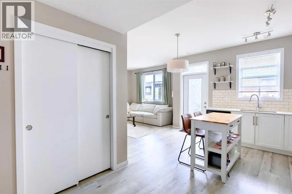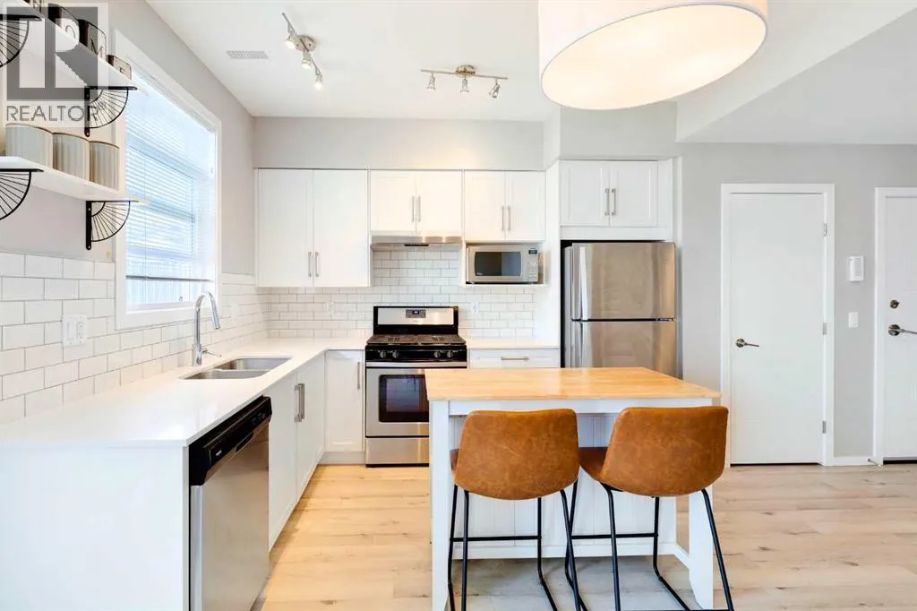 A townhouse with your own garage, private driveway, and enough space to actually spread out? 3 beds, 2 baths, it's so easy to move in by December and spend the holidays at home!! With 1020 square feet over two levels, this is it! Jayman won a prestigious award in 2020 for this Townhome Complex.This Redstone home is the glow up you have been waiting for. Parking is a battle in this community, but not here. You get a private garage plus a driveway, which means no more parking-lot wars. And the garage is not just for the car. Think bikes, strollers, hockey gear, Costco runs, or the bins of seasonal décor you keep swearing you will downsize but never do.Inside, the open concept main floor is both stylish and practical. The kitchen has stainless steel appliances, a gas range, and plenty of counter space for all your favourite gadgets. The living and dining areas flow together for family dinners, movie nights, or entertaining friends who always promise they will leave after 8 hours.Upstairs, three bedrooms give you flexibility. Whether it is space for kids, a home office, a guest room, or even grandparents, this home adapts. With one full bathroom upstairs and an extra half bath on the main floor, no one has to fight for mirror time. It is a setup that works for young families, single parents, roommates, or even multigenerational living.Right outside the backyard is a playground, which makes life that much easier. No car seats, no long walks with strollers, no excuses. It is close enough that you can sip your coffee while the kids burn off energy or finally scroll TikTok in peace until they run back asking for snacks. The original owner paid $30,000 as an upgrade for this convenience. Speaking of convenience..it's built into this home. Central air conditioning keeps summers cool. Yard work and snow removal are handled for you. The private balcony with a gas line makes BBQ nights simple. And when you need to get somewhere, you are minutes from the airport, Stoney Trail, Métis Trail, and quick routes to north Calgary, Airdrie, or east Calgary.The best part is the price. This townhouse comes in better than some apartments, but without the apartment headaches. No elevators. Just your own home that is modern, functional, and ready to grow with you and your lifestyle.And honestly, you have to see it to really get the full experience. Pictures do not do it justice. Touring this home is actually enjoyable because it looks and feels even better in person.Life is complicated enough. Your home does not have to be so book a showing and have your agent get in touch so you can move in before winter! Calgary Real Estate Board deems this townhome to be an apartment for MLS PURPOSES ONLY. The doorways are common in a hallway despite there being a door to the outside via the garage and the garage door itself. (id:27476)
