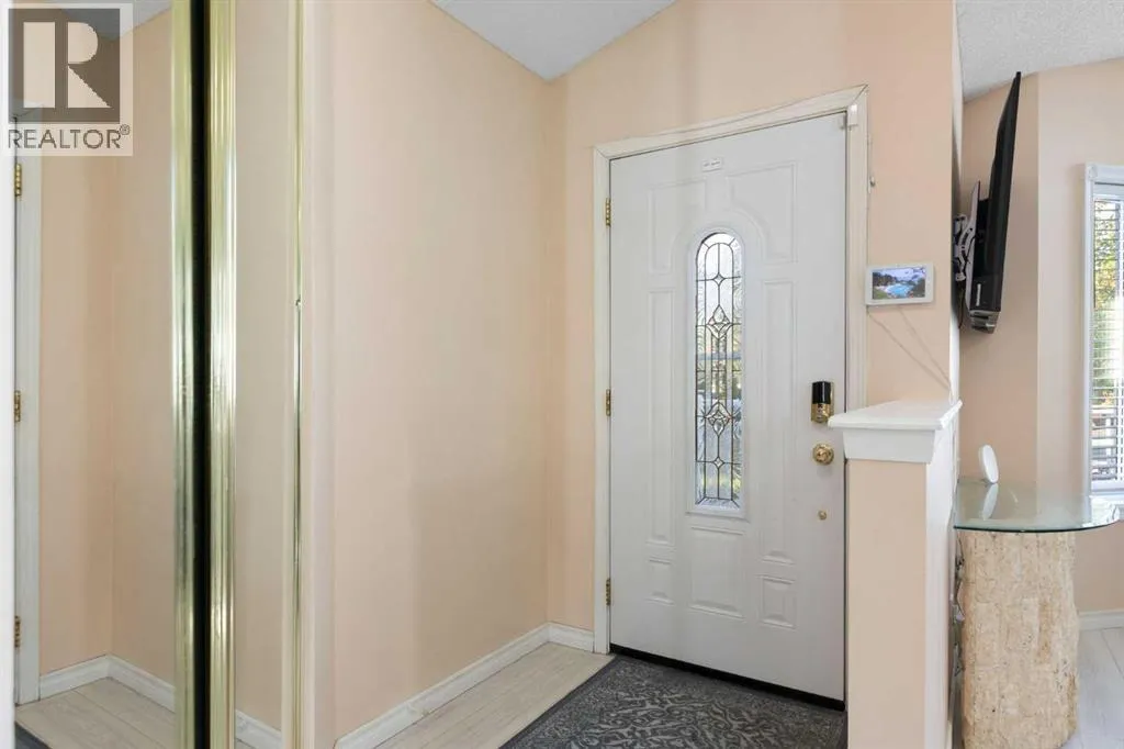 Step into comfort, style, and convenience with this beautifully maintained, fully developed 4-level split, perfectly tucked away on a quiet cul-de-sac in the sought-after community of Coventry Hills. This home shows true pride of ownership and comes with major updates for your peace of mind, including a new roof (2025), vinyl siding (2025), main living room windows (2025), high-efficiency furnace (2025), quartz countertops (2019), flooring (2017), washer/dryer (2023), and exterior railing (2016).Step inside through the welcoming foyer with large closets, leading directly to a comfortable living room featuring vaulted ceilings for an open, airy feel â perfect for relaxing or entertaining. From there, flow into the updated kitchen with modern appliances, ample storage, quartz counters, and a bright dining area ideal for gatherings. Upstairs, discover two generous bedrooms and an updated four-piece bathroom.Descend to the third level for a cozy TV room with a fireplace, a second living area, a third bedroom, and a convenient three-piece bath. The fourth level offers even more functionality with a large mechanical room, laundry area, and extra storage â including space for an office, hobby room, or potential fourth bedroom.Step outside to your charming backyard retreat, boasting a spacious multi-level deck ideal for outdoor entertaining, complete with privacy screens, a BBQ area, and a side door easy access from the home. Enjoy mature trees providing natural shade, a convenient storage shed, and a paved back alleyway with additional parking at the back, plus garage potential (subject to city approval). A welcoming front verandah and front lawn add to the homeâs curb appeal.Located just steps from elementary schools and close to junior and senior high schools, shopping, dining, golf, transit, the Vivo recreational Centre, and major routes, this home truly has it all.Donât miss your chance to make this wonderful property yours â schedule a showing today! (id:27476)