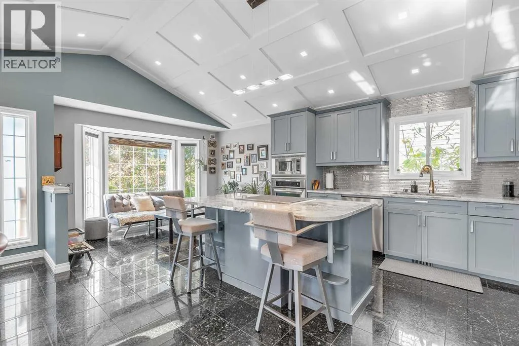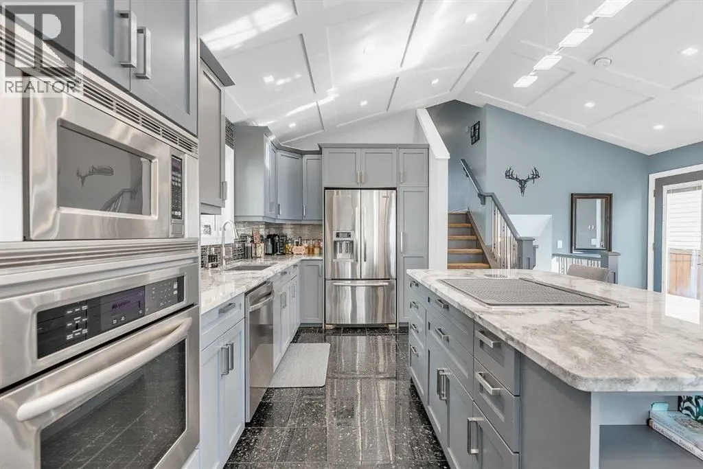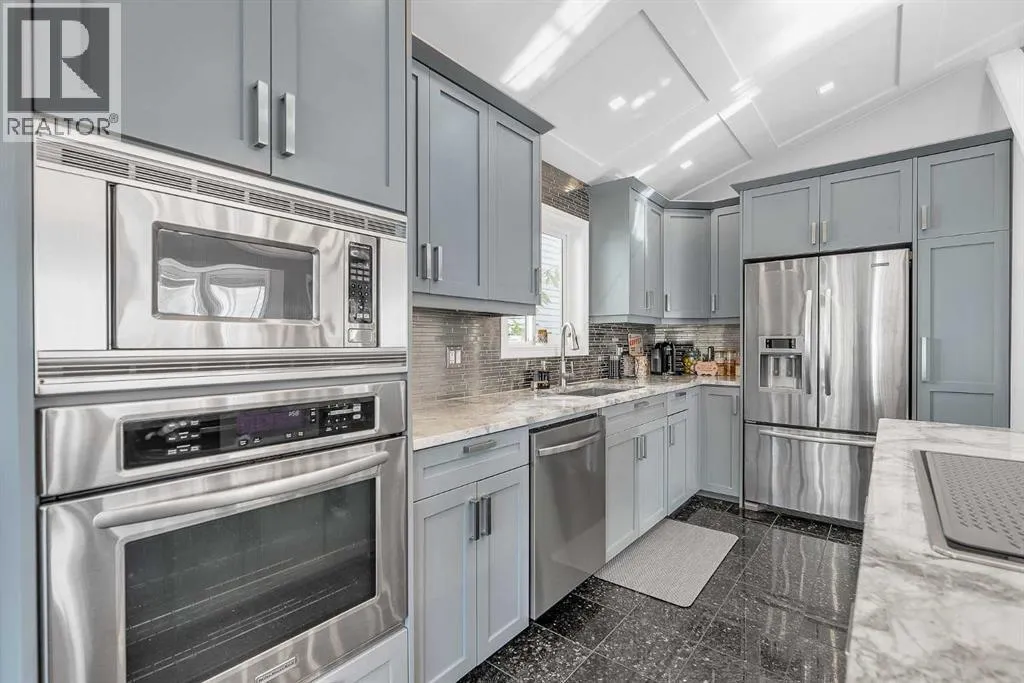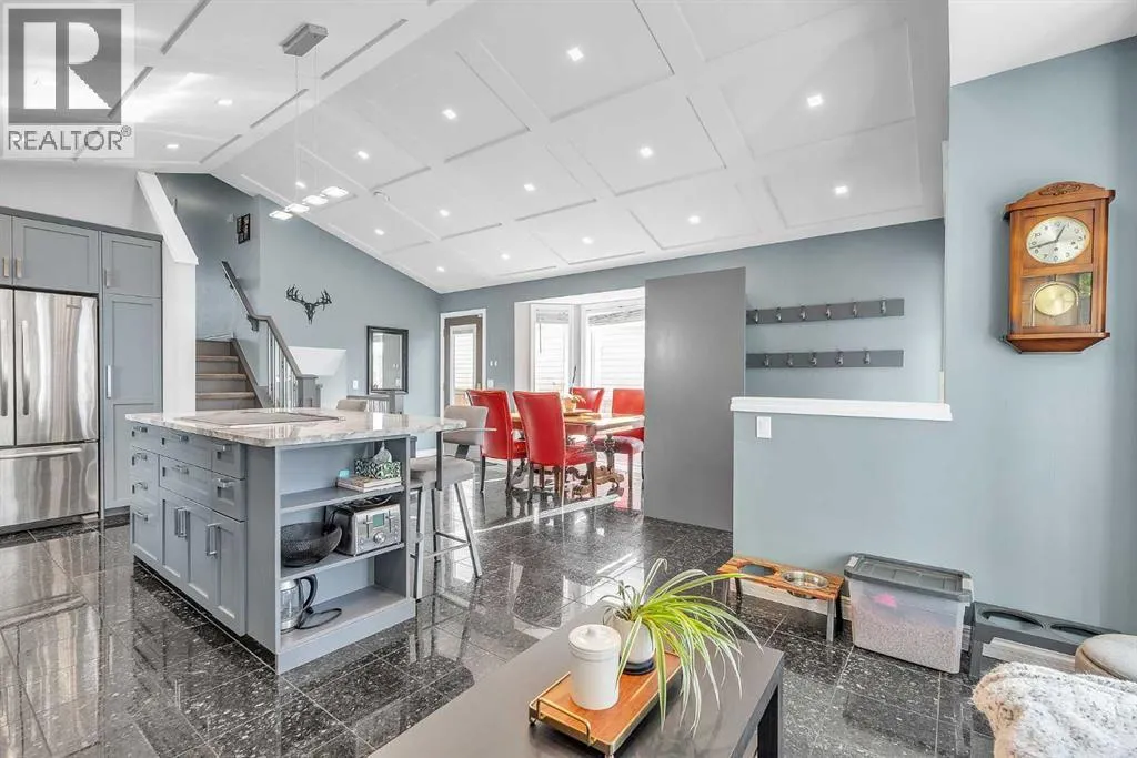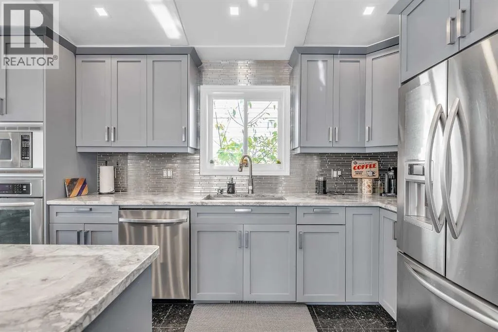 WELCOME....NEW PRICE!! "Step inside this beautifully renovated 4-Level Split, where Warmth and Modern Comfort come together in every Detail. Thoughtfully updated throughout, this Home offers Bright Open Spaces, Stylish Contemporary Finishes and room for the Whole Family to enjoy." This Home offers over 1900 sq. ft of living space designed with today's modern lifestyle in mind. From the inviting main floor to the cozy Family room, every level has been transformed with care and quality craftsmanship! Upon entering, you will see the extensive renovations, with attention to detail. The Vaulted Ceilings make this home Bright and Open. The kitchen offers: Granite countertops, Modern Grey Cabinets with modern hardware, high-end Stainless Steel appliances, and in-floor heating. The Pot Lights above the Island / Breakfast Bar with a built-in Range offer plenty of light. There is a butler's station or dry bar in the dining room that adds an excellent touch for entertaining. The warm and inviting living room has a bay window for relaxing with your morning coffee or a glass of wine in the evening. The upper floor offers a Spacious Primary Bedroom with an updated 4-Pc Ensuite. There are two more bedrooms with another 4pc bathroom. Please note a few newer upgrades: Poly B was replaced with PEX; the front patio and walkway, both front and back, were updated in 2024; a new furnace was installed in 2022; a new washing machine was purchased in 2022; and a new hot water tank was replaced in 2025. The 3rd level offers a Bright, spacious family room with hardwood flooring and large windows, plus a 2-piece powder room. The 3rd level has gym/flex room, a laundry room and storage. The backyard has a spacious deck, a covered hot tub (as is), in a gazebo. The Oversized, heated, double-detached garage acts as a sound barrier as well. The front has a beautiful Patio for greeting neighbor's and enjoying the warm summer days. This beauty is in the heart of McKenzie Lake, close to all ameniti es, shopping on 130 Ave, with excellent access to major transportation routes such as Deerfoot & Stoney Trail. A must-see property that truly stands out! Homes like this don't come along often. Schedule your private viewing today! (id:27476)