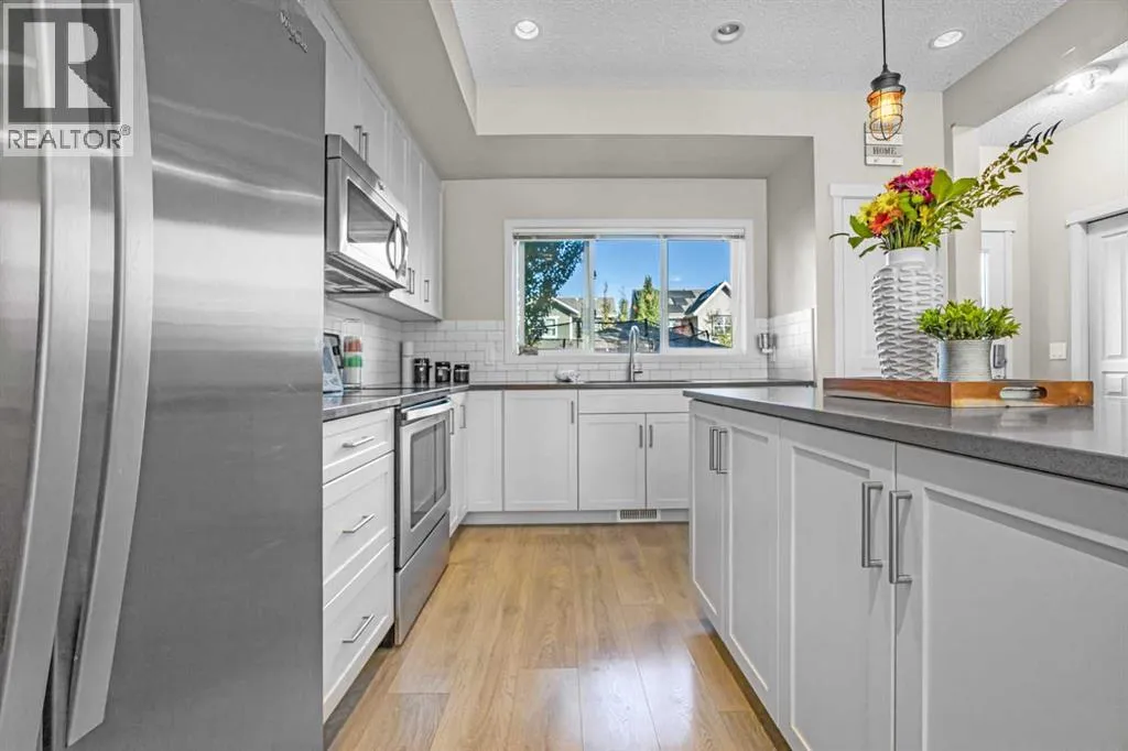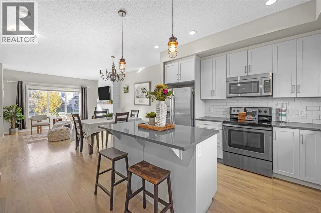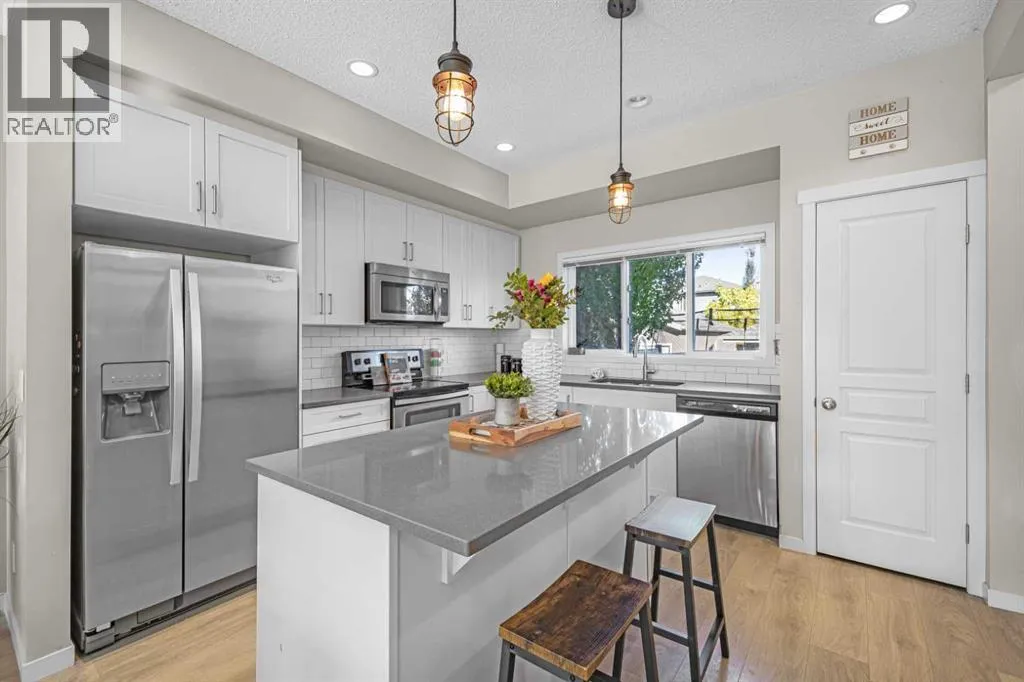 Welcome to the award-winning lake community of Mahogany! Ideally located just steps from the Beach Club, this warm and inviting semi-detached home offers the perfect blend of comfort, style, and community living.This home is sure to impress with a desirable floor plan featuring an open concept design, 9â ceilings, wide plank laminate floors throughout the main level, and oversized windows that fill the space with natural light. The heart of the home is the upgraded kitchen, showcasing quartz countertops, modern cabinetry, and a layout designed for both everyday family meals and effortless entertaining. Youâll also appreciate the comfort of central air conditioning and the convenience of a double detached garage, offering plenty of space for parking and storage. Upstairs, youâll find three spacious bedrooms, including a relaxing primary suite complete with a private ensuite and walk-in closet. A second full bathroom makes busy mornings effortless. The finished basement extends your living space with a fourth bedroom, three-piece bathroom, and a flexible rec area that can grow with your family â whether itâs a playroom, home gym, or movie space. Steps from your doorstep, enjoy all that Mahogany has to offer: sandy beaches, swimming, skating, parks, pathways, and year-round activities for every age. This is where family memories are made â welcome home to Mahogany. (id:27476)