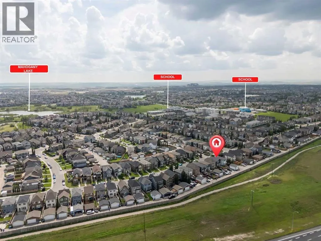 Discover incredible value in the heart of Mahogany with this charming detached home, perfectly positioned in one of Calgaryâs most sought-after lake communities. Offering 3 bedrooms and 2.5 bathrooms, this thoughtfully designed home combines comfort, function, and lifestyle. The main floor welcomes you with a bright, open layout featuring a spacious living area, a modern kitchen with sleek cabinetry, and a cozy dining nookâperfect for both entertaining and everyday living. Upstairs, you'll find three generous bedrooms, including a spacious primary retreat complete with a large walk-in closet and plenty of natural light.The backyard is fully fenced and features a beautiful space for summer BBQs, relaxing evenings, and letting kids or pets play freely. A concrete parking pad and paved back alley at the rear provide off-street parking and potential for a future garage. This Hopewell-built home also boasts quartz countertops and stainless steel appliances, maintained to the highest city standards thanks to the current licensed daycare operation, ensuring exceptional cleanliness and care throughout.Located within walking distance to both the public and Catholic schools and just steps to Mahoganyâs pathways, lake access, and vibrant amenities, including Mahogany Plaza with Shoppers Drug Mart, Tim Hortons, Subway, Sobeys, and more. The YMCA and South Health Campus Hospital are a short drive away, with easy access to Stoney Trail and Deerfoot Trail, making commuting and recreation seamless. This is your chance to enjoy year-round lake living at an unbeatable price in a community that truly has it all. (id:27476)