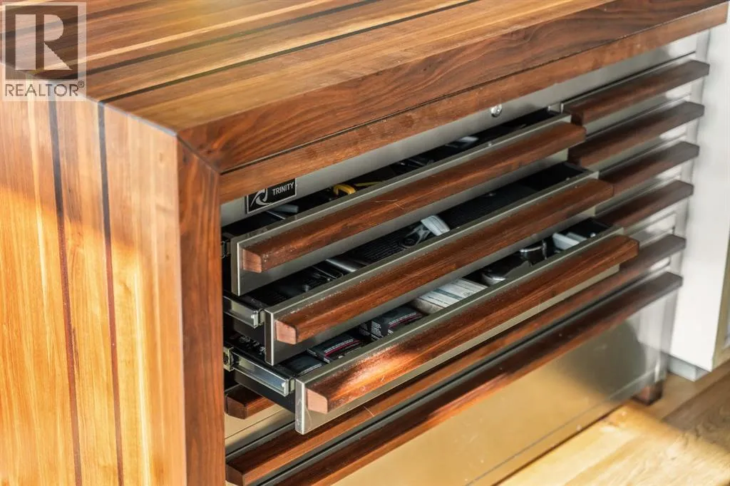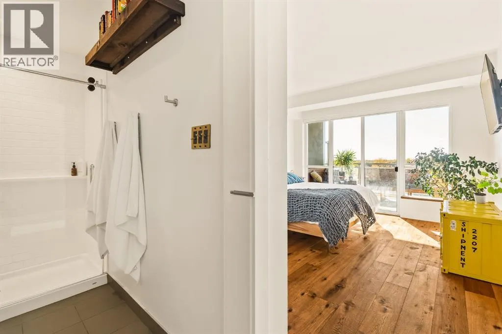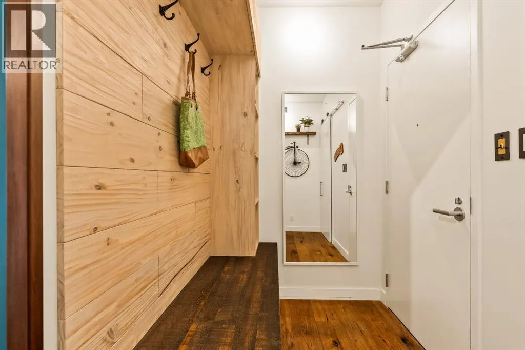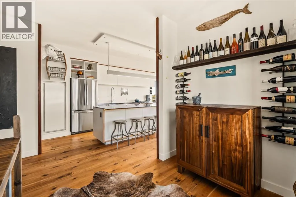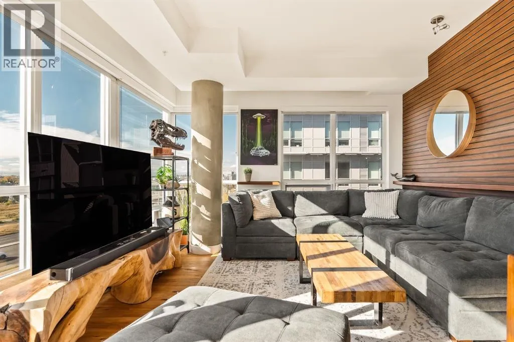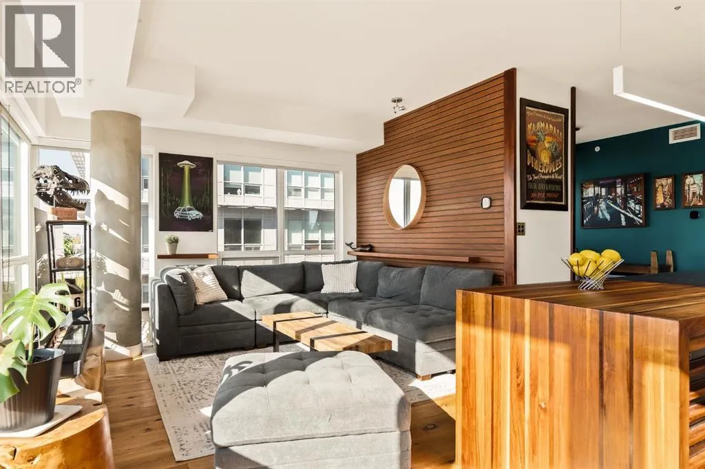 In Calgaryâs most storied neighbourhood, where the Bow River bends around tree-lined paths and history meets creativity, lies a home that captures the essence of bespoke living. This remarkable concrete SoBow residence, featuring one of the most desirable floor plans in the entire complex, is not just a place to live, itâs a work of art shaped by craftsmanship, texture, and intention.From the moment you enter, every detail has been curated to inspire. A beautifully redesigned front entry offers custom cabinetry, integrated shelving, and a built-in bench, a thoughtful welcome that blends elegance with everyday function. The kitchen, anchored by rare Iron Red stone countertops and a solid hardwood waterfall butcher block island, is both sculptural and soulful. A GE Café gas stove and basin sink with garburator bring culinary precision, while the extended island invites gatherings and conversation.Throughout the home, subtle artistry abounds. Custom wood trim frames every windowsill, walnut corner edging defines the main spaces, and a stunning feature wall with floating beverage shelves transforms the living room into a refined retreat. Each of the three bathrooms is elevated by handcrafted vanities topped with bespoke vessel sinks, while Buster + Punch switches and designer lighting add a quiet note of luxury.This unit also offers exceptional convenience, including two titled underground parking stalls in a heated garage, one titled storage locker, and secure bike storage, a rare and valuable combination for inner-city living.Set within SoBow, a visionary community designed by NORR Architects to honour Inglewoodâs industrial past while embracing its modern renaissance, residents enjoy a host of premium amenities. Condo Fees include a full-time concierge, state-of-the-art fitness facility, weight room, yoga room, owners lounge, and media room extend your living experience well beyond your front door. Surrounded by 14 acres of landscaped courtyards and Aspen gro ves, with the Bow River and Pearce Estate Park just steps away, SoBow offers an unmatched lifestyle.Located in the vibrant, sought-after community of Inglewood, where amenities, restaurants, shopping, breweries, and parks are all within walking distance, this home embodies the perfect balance between dynamic city living and serene natural beauty.This is a home where craftsmanship meets character, where nature meets design, and where the timeless spirit of Inglewood finds its most sophisticated expression. (id:27476)