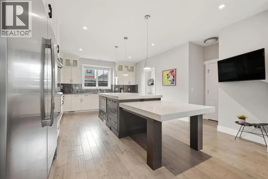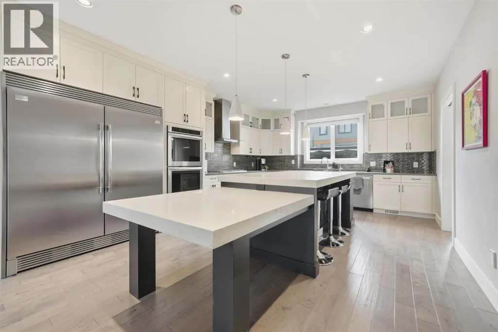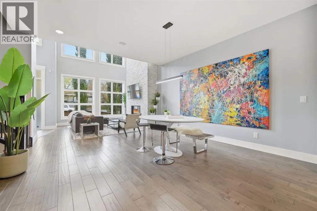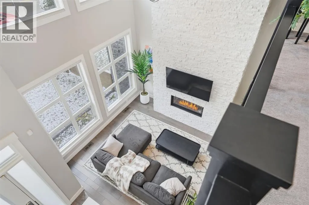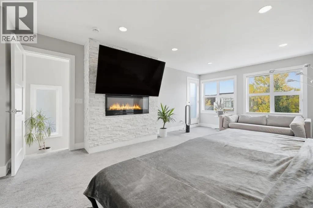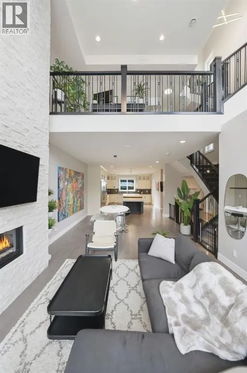 Breathtaking 3+2 bedroom offering over 3,400 sq ft f developed living space in the heart of sought-after South Calgary! The main level presents hardwood floors, high ceilings & is drenched in natural light, showcasing the living room with soaring ceiling & spectacular 2 story feature fireplace. The casual dining area provides ample space to host family & friends. A chef-inspired kitchen is tastefully finished with huge island/eating bar, an abundance of storage space & stainless steel appliance package. A 2 piece powder room & mud room complete the main level. The second level hosts a bright loft area that overlooks the living room, 2 bedrooms (both with walk-in closets), a 5 piece bath & laundry room with sink & storage. The private & sumptuous primary retreat encompasses the third level & features an inviting fireplace, access to a private balcony, 2 walk-in closets & lavish 6 piece ensuite with dual vanities, a relaxing freestanding soaker tub & separate shower. Basement development includes a large recreation room complete with wet bar â perfect for game or movie night. Two bedrooms & a 3 piece bath are the finishing touches to the basement. Further features include central air conditioning & wiring for data & sound. Also enjoy the south back yard with large patio, gas BBQ outlet & access to the double detached garage. This home is conveniently located just steps to vibrant Marda Loop & close to River Park, excellent schools, shopping, public transit & just minutes to the downtown core. (id:27476)