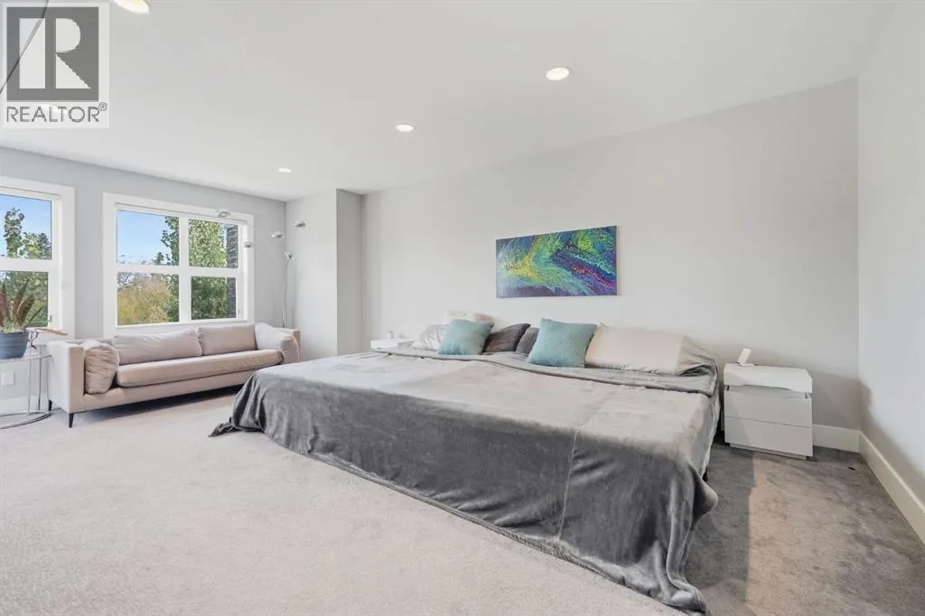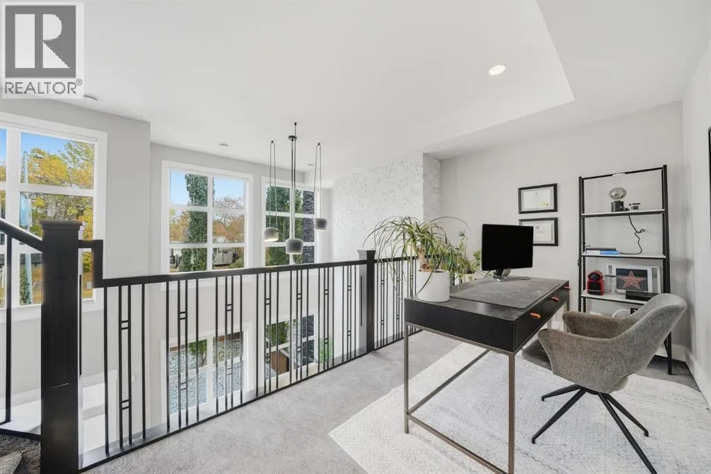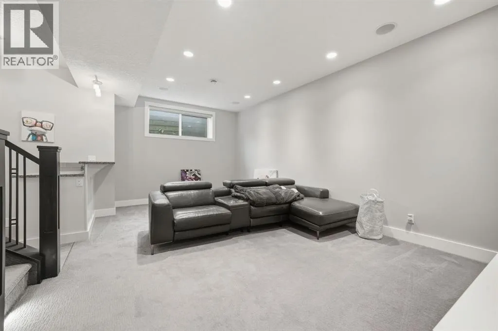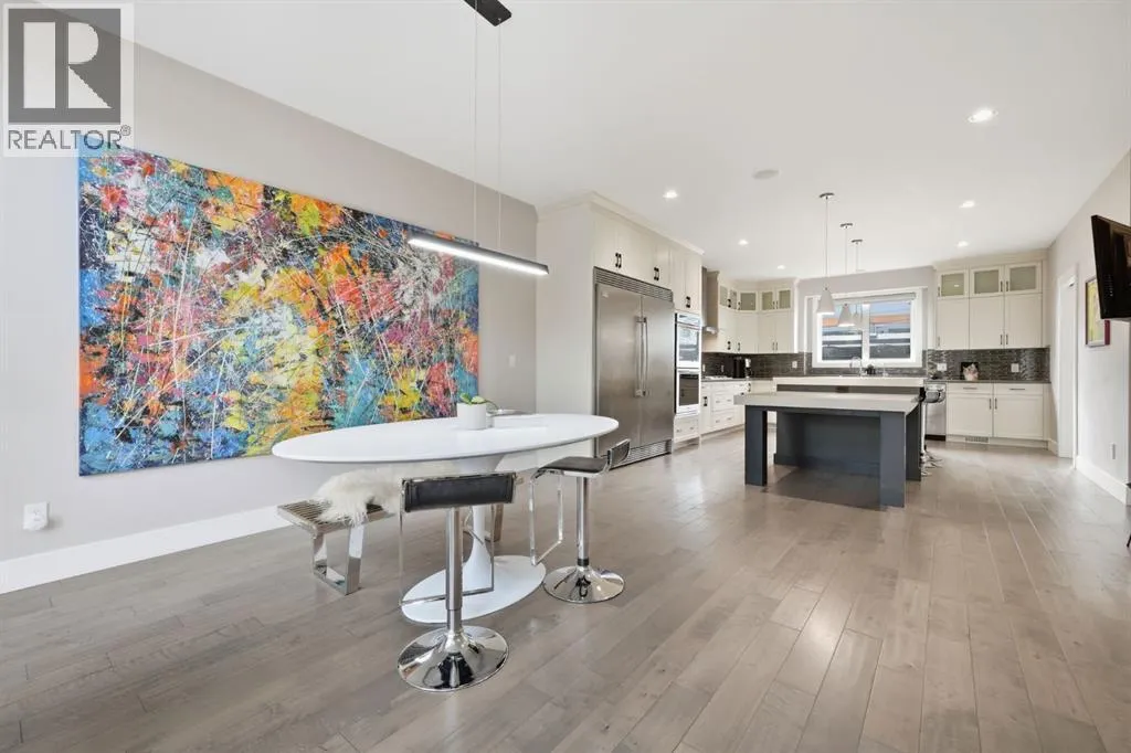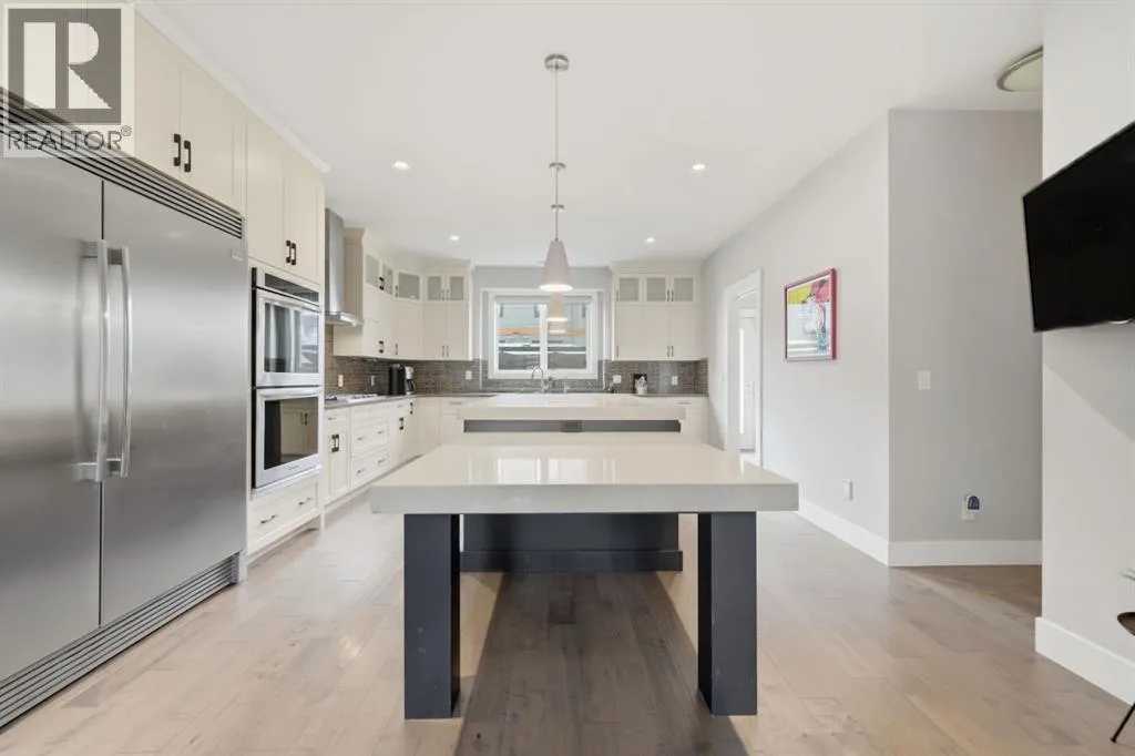 Breathtaking 3+2 bedroom offering over 3,400 sq ft f developed living space in the heart of sought-after South Calgary! The main level presents hardwood floors, high ceilings & is drenched in natural light, showcasing the living room with soaring ceiling & spectacular 2 story feature fireplace. The casual dining area provides ample space to host family & friends. A chef-inspired kitchen is tastefully finished with huge island/eating bar, an abundance of storage space & stainless steel appliance package. A 2 piece powder room & mud room complete the main level. The second level hosts a bright loft area that overlooks the living room, 2 bedrooms (both with walk-in closets), a 5 piece bath & laundry room with sink & storage. The private & sumptuous primary retreat encompasses the third level & features an inviting fireplace, access to a private balcony, 2 walk-in closets & lavish 6 piece ensuite with dual vanities, a relaxing freestanding soaker tub & separate shower. Basement development includes a large recreation room complete with wet bar â perfect for game or movie night. Two bedrooms & a 3 piece bath are the finishing touches to the basement. Further features include central air conditioning & wiring for data & sound. Also enjoy the south back yard with large patio, gas BBQ outlet & access to the double detached garage. This home is conveniently located just steps to vibrant Marda Loop & close to River Park, excellent schools, shopping, public transit & just minutes to the downtown core. (id:27476)