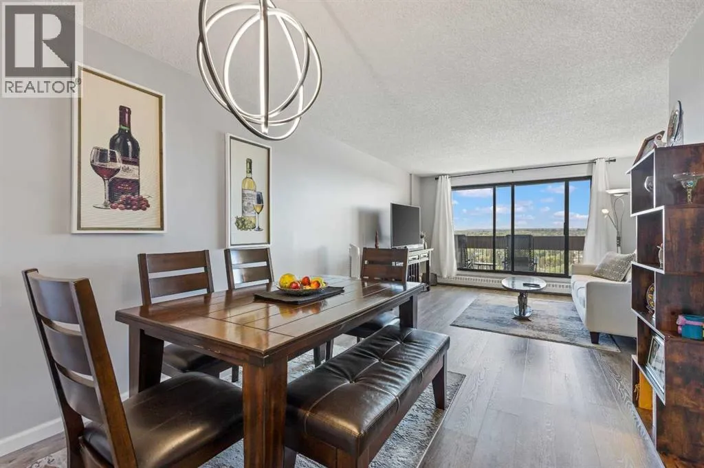 *** Your search is over!! Very affordable LIVE-IN or INVESTMENT PROPERTY!! Wake up to glorious mountain views from your balcony in this SPACIOUS one bedroom/one bathroom 708 sqft. condo in desirable NINE EIGHT HUNDRED . You'll love the OPEN LAYOUT of this 15th floor unit with magnificent views! The floorplan is well laid out...with a LARGE primary bedroom...good-sized living room and bathroom...lots of counter and cupboard space in Kitchen...plus a breakfast bar and dining area. A huge bonus is insuite laundry (with newer stacked washer/dryer)...and a large storage room in unit. CONDO FEES include HEAT/WATER/SEWER/ELECTRICITY/PARKING/PROFESSIONAL MANAGEMENT!! Nine Eight Hundred is a very well-managed complex. Concrete building...on-site management during certain hours Monday-Friday. There is a terrific main floor SOCIAL ROOM complete with kitchen, bathrooms, comfortable seating, TV, vending machines, book collection and puzzles. PLUS there is a full GYM available to owners/tenants on 3rd floor. Some of the BUILDING IMPROVEMENTS over the past # of years are: renovated lobby, refurbished elevators, new intercom system, closed circuit cameras at ALL entrances/exits (including parkade!), keyless entry throughout building, newer carpet/lino throughout building common areas, new lighting and fire escape signage installed throughout building. The building has garbage chute access on each floor...common area washer/dryer (coin-op) on each floor...and bike/tire storage rooms. Super close to LRT/a variety of shopping/restaurants/banking/ Macleod Tr/Southland Dr/Stoney Trail and more!. Must be age 18+ to live here. Better hurry!! (id:27476)