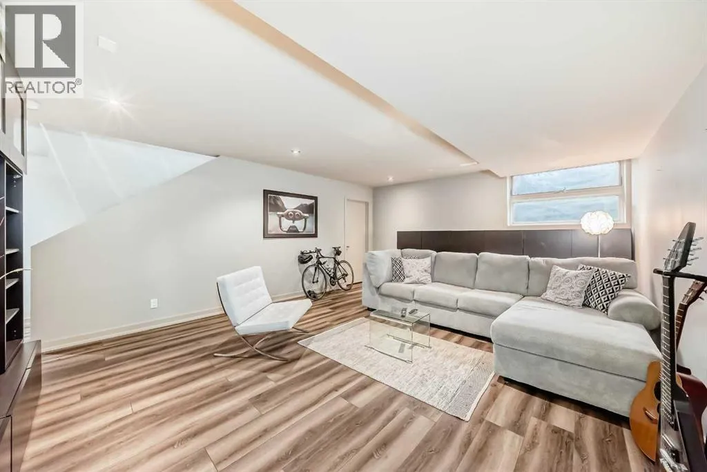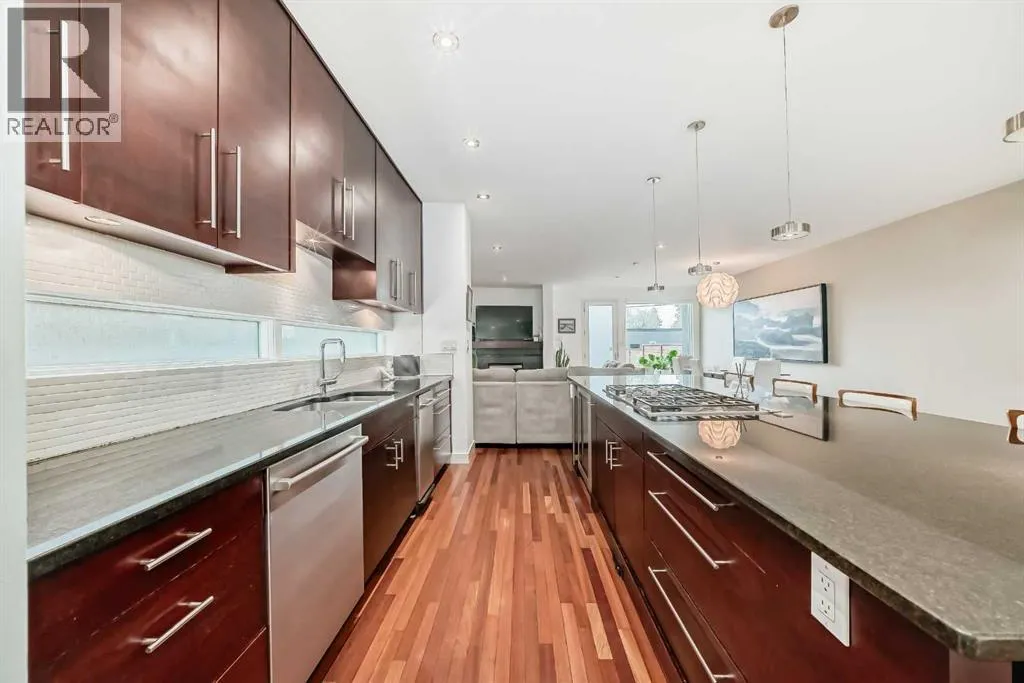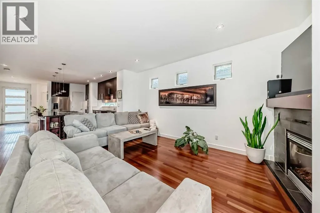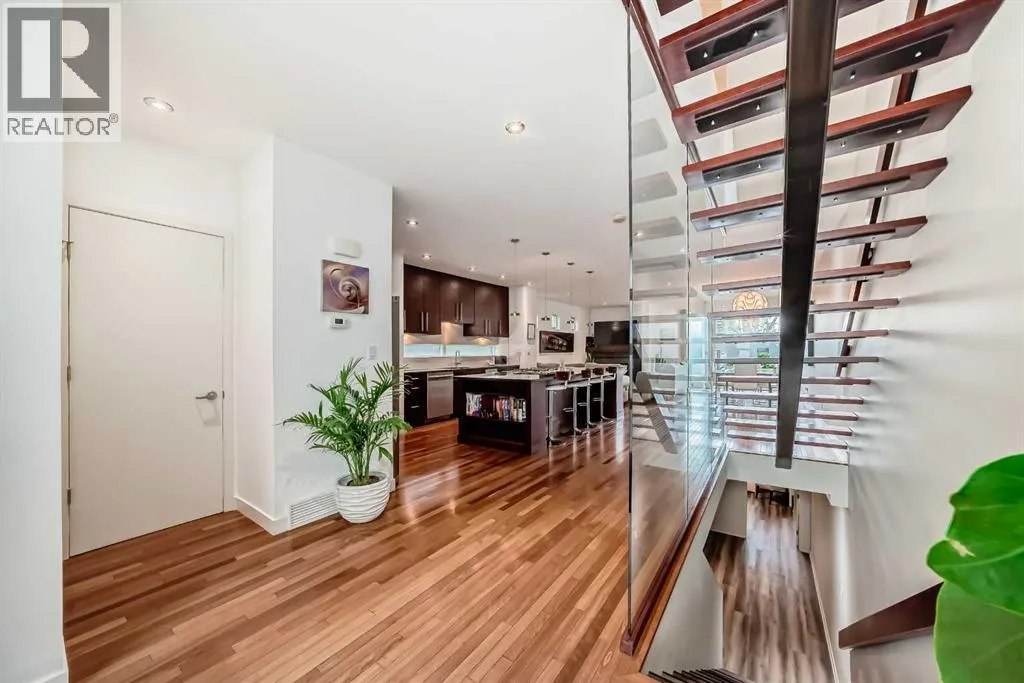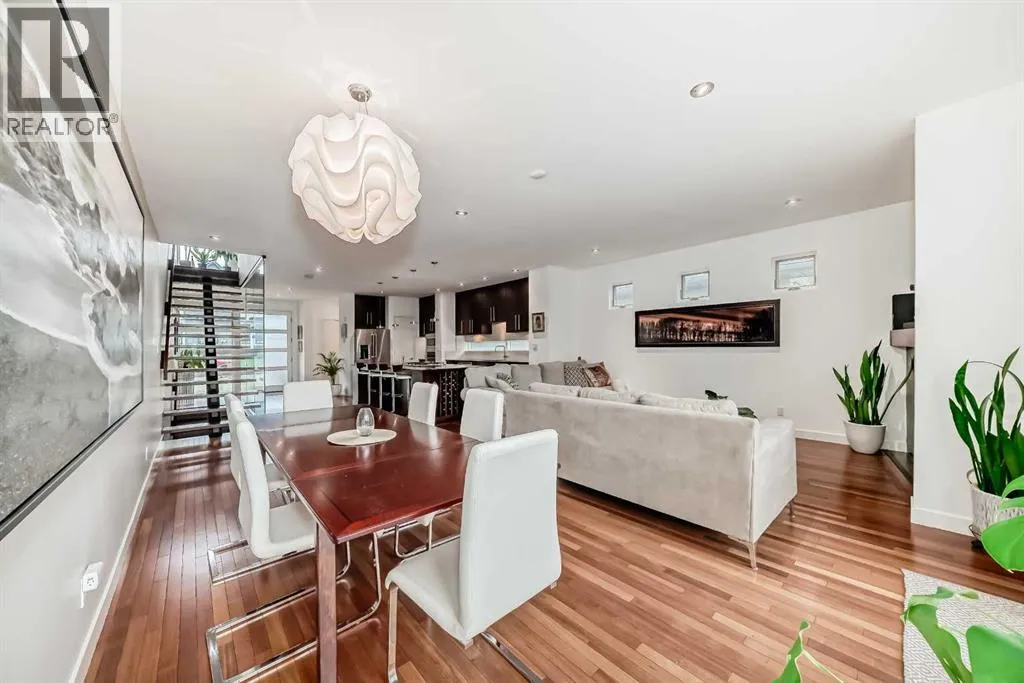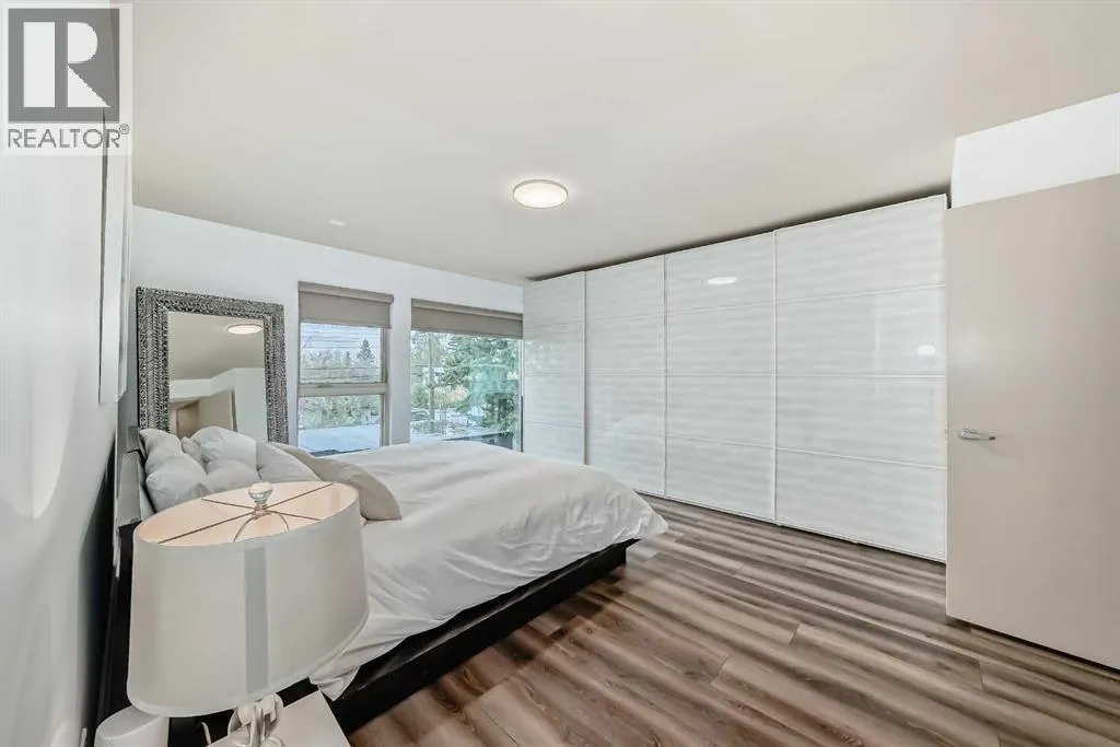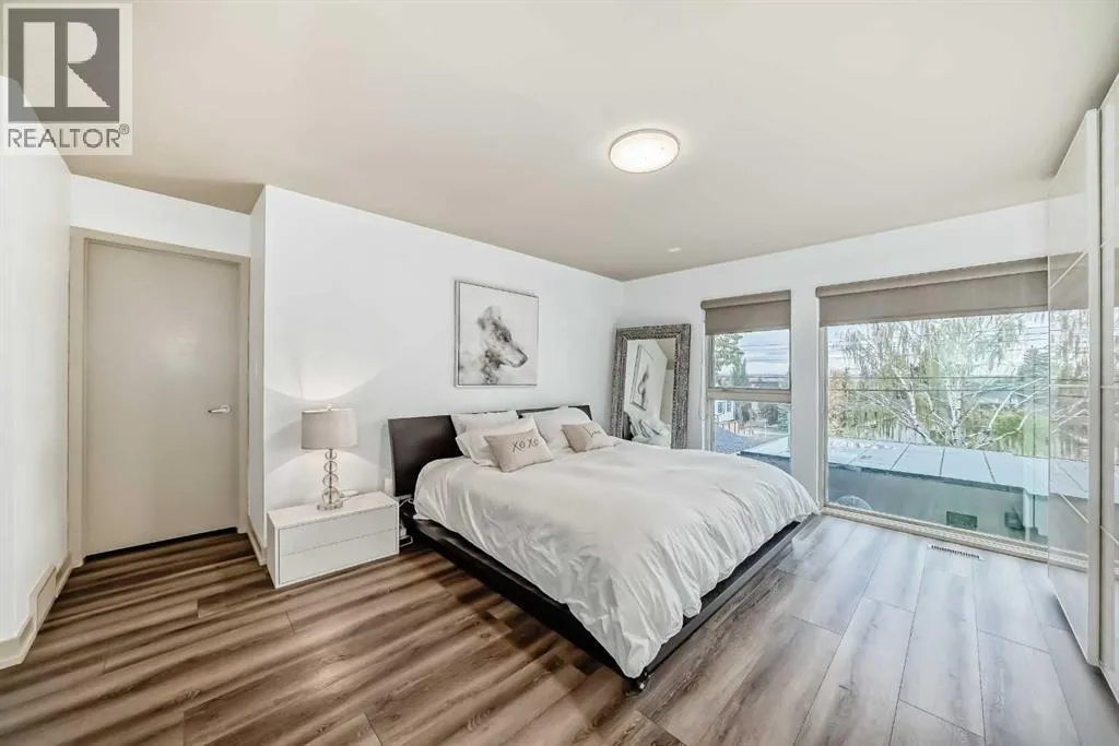 This contemporary, fully developed Inner City Home is loaded with upgrades thru-out and offers over 3200 SqFt of luxury living space complimented with a quiet location and city and mountain views from the Rooftop Patios. With 9 Foot Ceilings on the Main, central A/C and radiant in-floor heating in the Lower Level and all Bathrooms, the open concept floor plan starts with the bright Entry leading to the fully equipped gourmet Kitchen ideal for entertaining, complete with a 10 ft island with built-in wine rack, granite countertops, high-end stainless steel appliances including the gas down-draft cook top and built-in wall ovens, wine fridge and walk in pantry. The Dining area sits in front of a large floor to ceiling window, the Living Room features accent windows and a cozy gas fireplace with access to the backyard and there is the 2pce Guest Bath. The open riser staircase with glass panel wall leads up to the 2nd Level where youâll find the massive Primary Bedroom offering a 5Pce Ensuite with walk-in shower and Air-Jet corner soaker tub plus, the 15â walk-in closet with custom California Closet wood built-ins. There is also the 2nd Bedroom with itâs own 4Pce Ensuite, the Den/Flex area and Laundry Room. The Top Level has a 3rd Bedroom complete with a 3Pce Ensuite that can also be used as a Home Gym, Office or a Bonus Room with access to both Rooftop Patios which features stamped concrete with smoked glass panel rails (rails can be pushed out to make a full wrap around patio). The Lower Level is fully developed with a large Media/Family Room, the 4th Bedroom, another Full Bath and a Storage Room. Outside, youâll find your private backyard oasis ideal for entertaining and the fully finished double detached Garage thatâs roughed in for a heater. (id:27476)