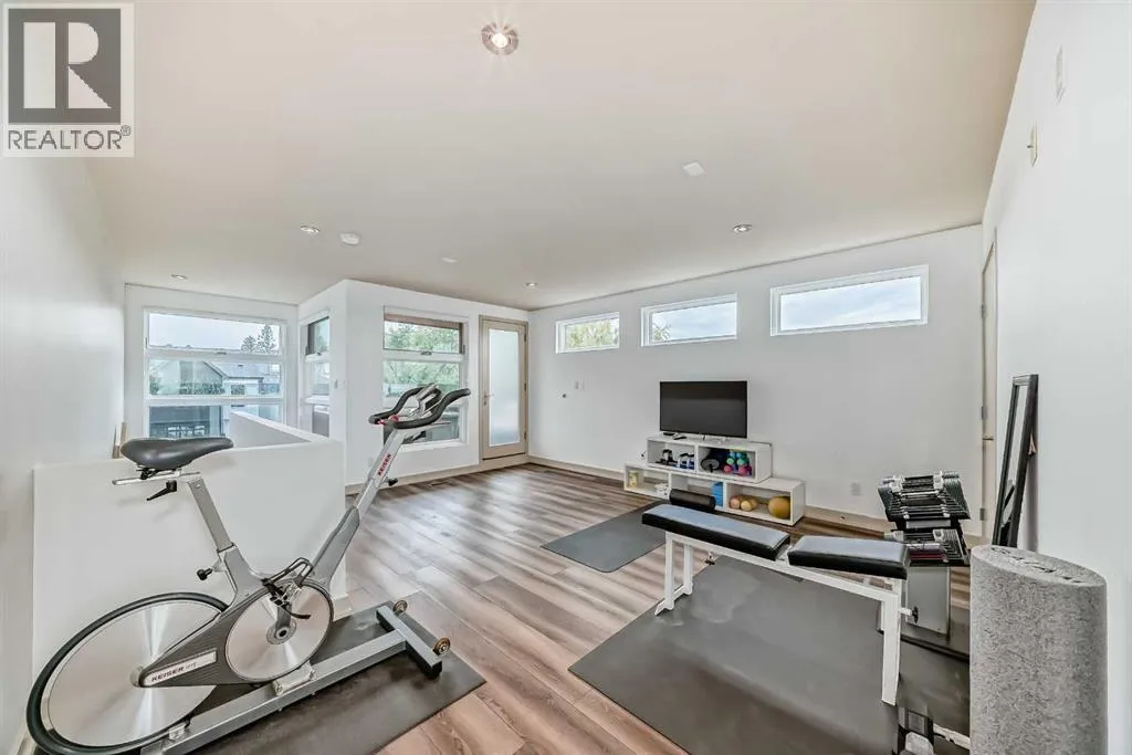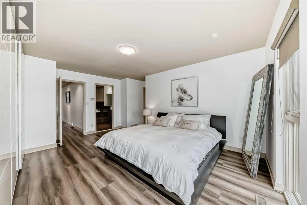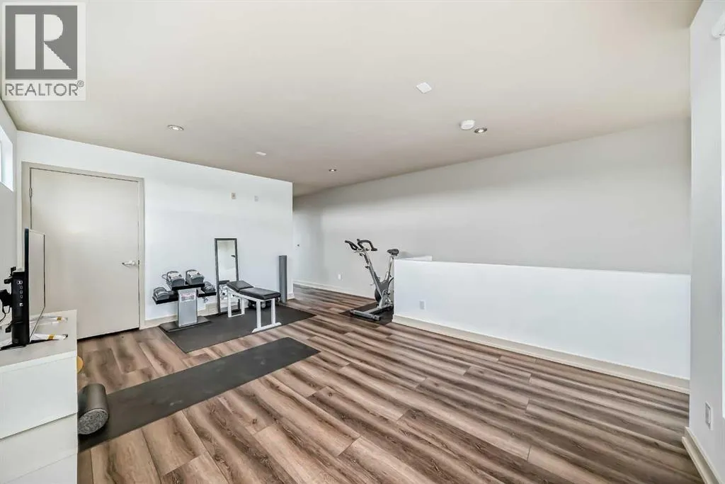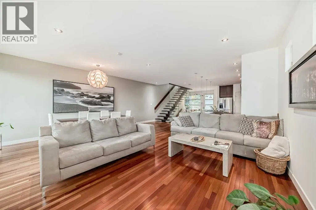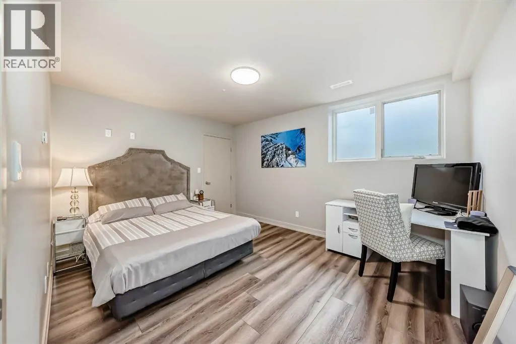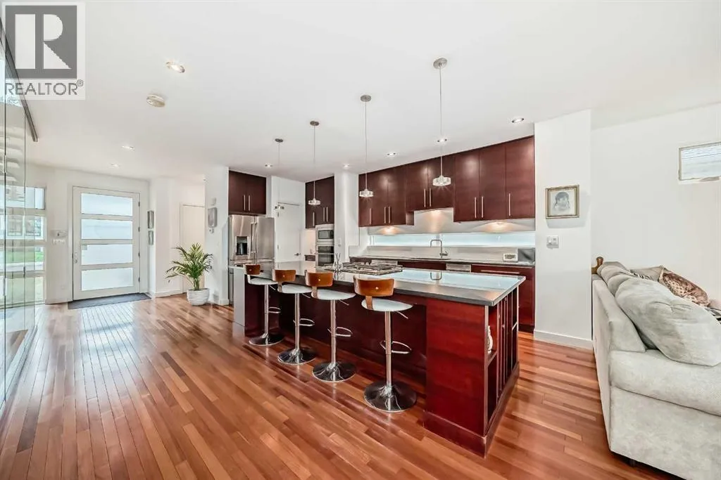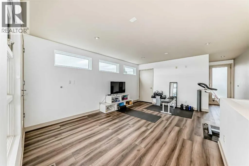 This contemporary, fully developed Inner City Home is loaded with upgrades thru-out and offers over 3200 SqFt of luxury living space complimented with a quiet location and city and mountain views from the Rooftop Patios. With 9 Foot Ceilings on the Main, central A/C and radiant in-floor heating in the Lower Level and all Bathrooms, the open concept floor plan starts with the bright Entry leading to the fully equipped gourmet Kitchen ideal for entertaining, complete with a 10 ft island with built-in wine rack, granite countertops, high-end stainless steel appliances including the gas down-draft cook top and built-in wall ovens, wine fridge and walk in pantry. The Dining area sits in front of a large floor to ceiling window, the Living Room features accent windows and a cozy gas fireplace with access to the backyard and there is the 2pce Guest Bath. The open riser staircase with glass panel wall leads up to the 2nd Level where youâll find the massive Primary Bedroom offering a 5Pce Ensuite with walk-in shower and Air-Jet corner soaker tub plus, the 15â walk-in closet with custom California Closet wood built-ins. There is also the 2nd Bedroom with itâs own 4Pce Ensuite, the Den/Flex area and Laundry Room. The Top Level has a 3rd Bedroom complete with a 3Pce Ensuite that can also be used as a Home Gym, Office or a Bonus Room with access to both Rooftop Patios which features stamped concrete with smoked glass panel rails (rails can be pushed out to make a full wrap around patio). The Lower Level is fully developed with a large Media/Family Room, the 4th Bedroom, another Full Bath and a Storage Room. Outside, youâll find your private backyard oasis ideal for entertaining and the fully finished double detached Garage thatâs roughed in for a heater. (id:27476)