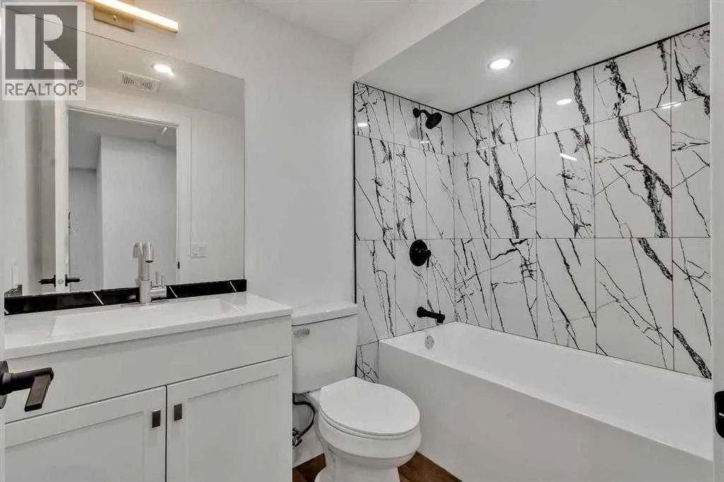 Thoughtfully designed with timeless style and modern elegance, this beautifully finished townhome in Rundle offers a rare blend of comfort, sophistication, and convenience all in one prime location. Conveniently close to all amenities, including Sunridge Mall, fantastic restaurants, schools, the LRT, and the Peter Lougheed Hospital. Upon entering, prepare to be captivated by the elegance that unfolds. As you explore the home, youâll notice the luxurious vinyl plank flooring that seamlessly flows throughout, making the other stunning features stand out even more. Youâve likely seen many fireplaces, but this one is truly one of a kind. The striking black and gold fireplace design is sure to impress your family and guests. Moving into the kitchen, youâll be drawn to the elegantly designed feature wall with a stunning gold fixture, making it feel like youâre stepping into a million dollar home. The kitchen itself showcases a timeless black-and-white palette that exudes sophistication and classic charm. Upstairs, youâre greeted with three generously sized bedrooms and a stunning, spa like four piece bathroom thatâs anything but ordinary. Downstairs, thereâs an additional room, along with a spacious living or recreational area, complete with another beautifully designed four piece bathroom just like the one upstairs. This unit comes with an assigned parking space and ample street parking directly behind it. Whether you're a first-time homebuyer or looking for the perfect family home, this townhome offers elegance, modern design, and unbeatable convenience in a prime location! (id:27476)