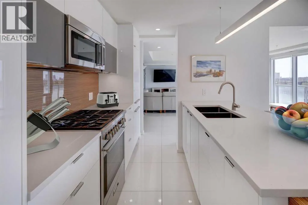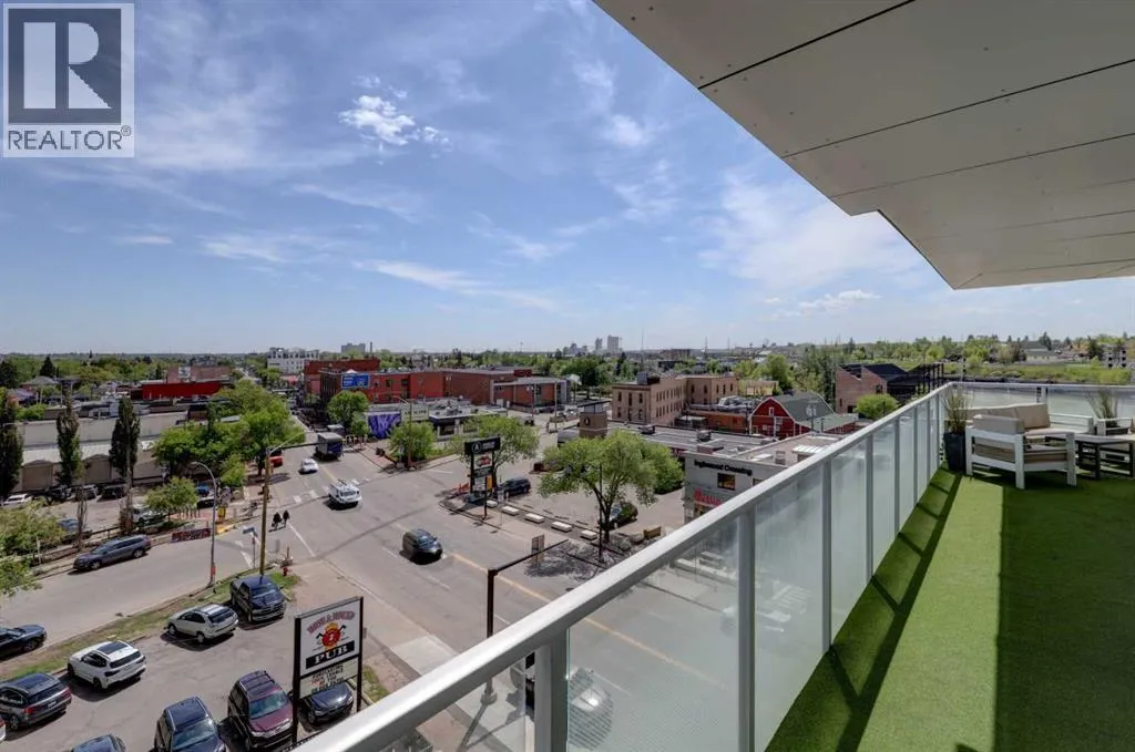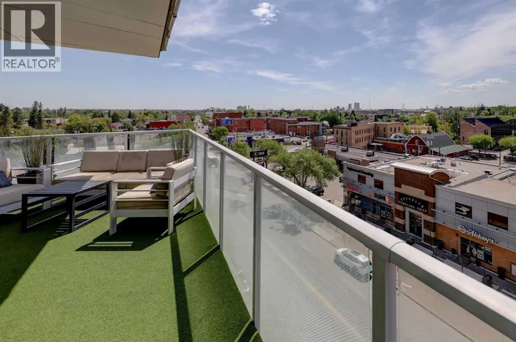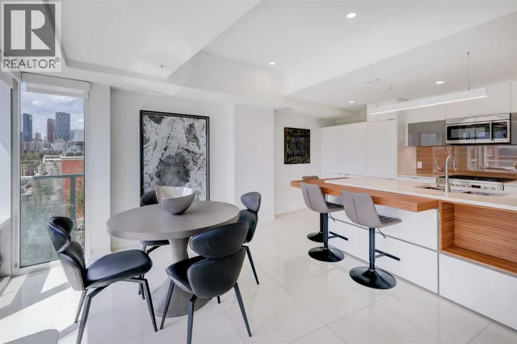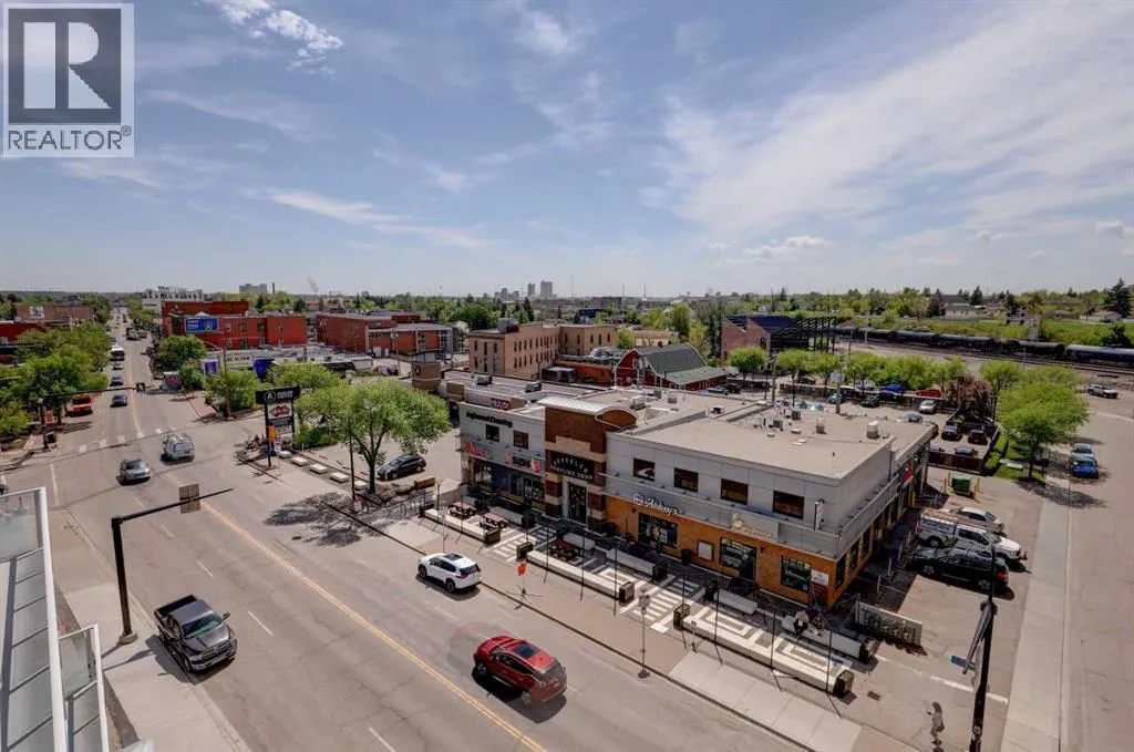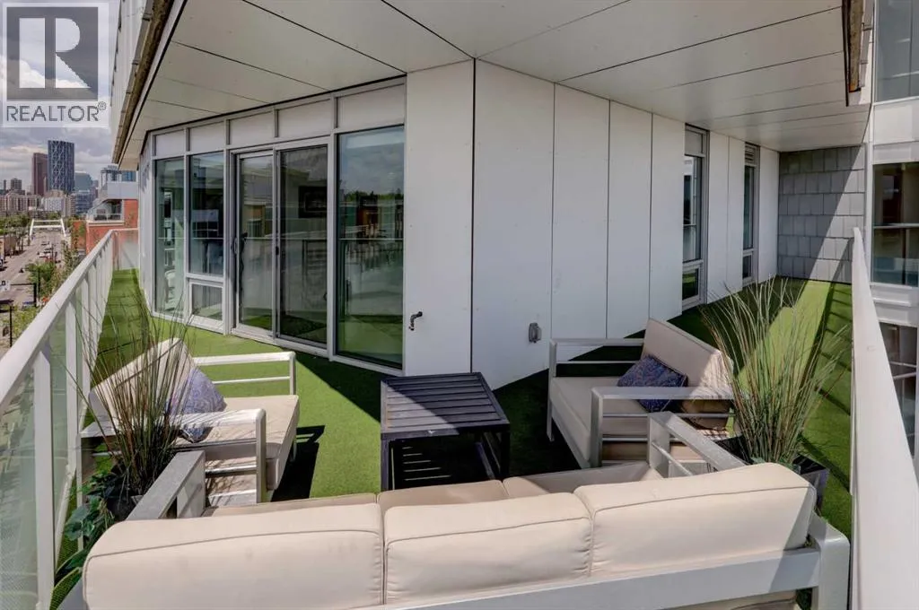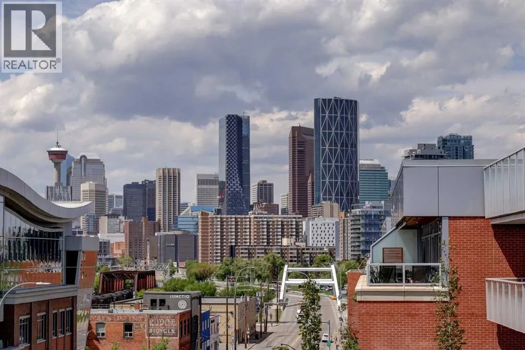 Welcome to unit 601, a stylish 1250+ sq ft sub-penthouse in the modern Avli On Atlantic- a very sleek building in historic Inglewood, steps to great shopping, excellent restaurants, cool pubs and an easy walk to the Bow Valley pathways, Fort Calgary,The Saddledome and downtown. This large 2 bedroom, 2 bathroom, 2 titled parking stall unit features a wall of windows flooding the main living space with natural light, architectural touches - cove ceilings, concrete pillar, gleaming tile floors and custom roller blinds. The European style kitchen has ample counter space, built in pantry, integrated dishwasher & fridge, additional cabinets and an extended quartz island with wooden accent, all over looking the dining and main living area, perfect for entertaining. Dual sliders open to the large 300+ square foot wrap around patio (with n-gas hook up) where you have stunning views of 9th Avenue, Ramsey, Inglewood and downtown. The large primary bedroom has modular storage cabinets and a 4 piece ensuite with floating dual vanity & heated floors, an excellent retreat. This unit has it all including ensuite laundry and storage, additional large storage locker, secure bike storage, visitor parking, guest suite and common furnished terrace (3rd floor) for larger get-togethers. The building is very well taken care of and the location is supreme. (id:27476)