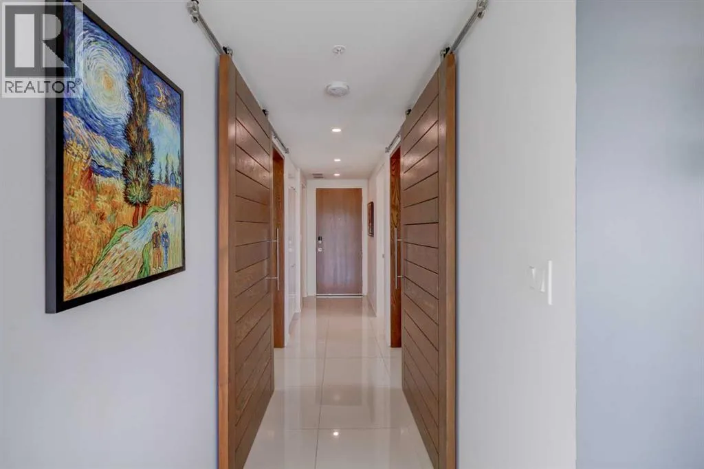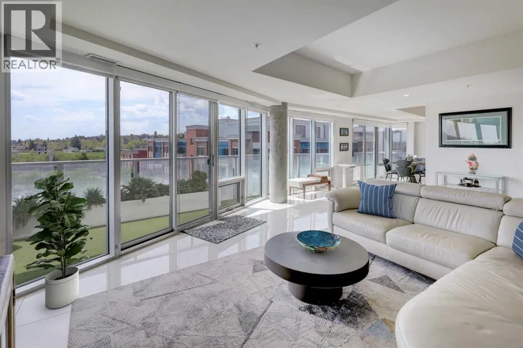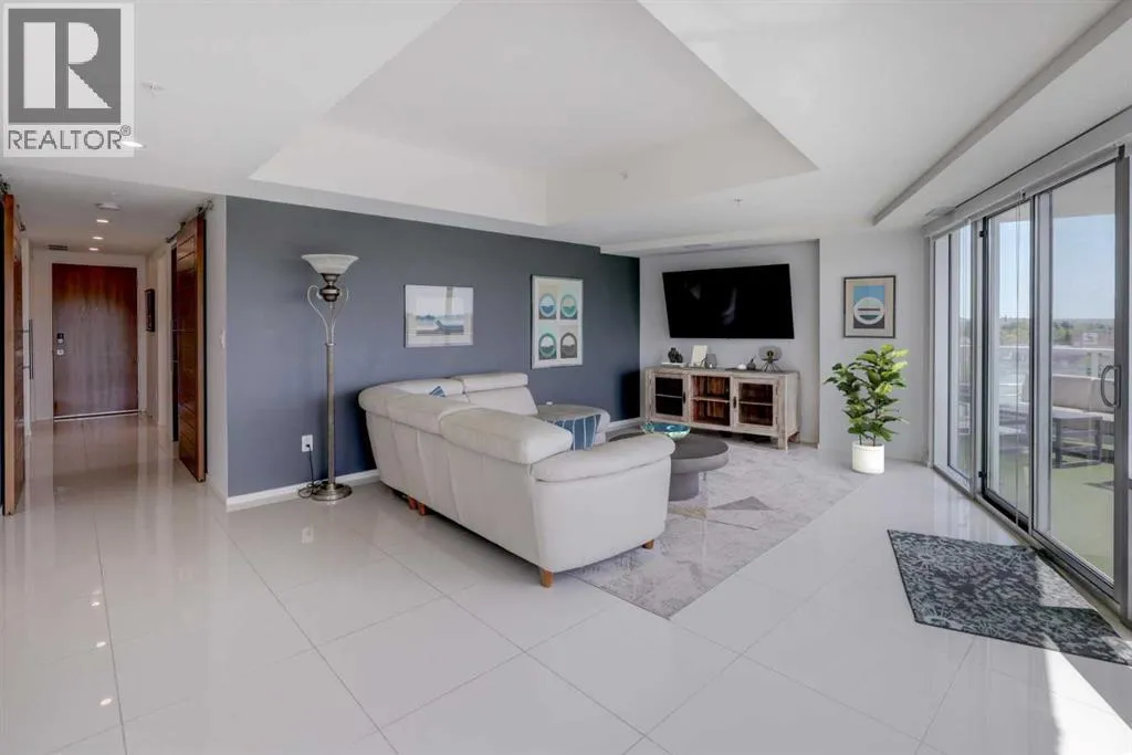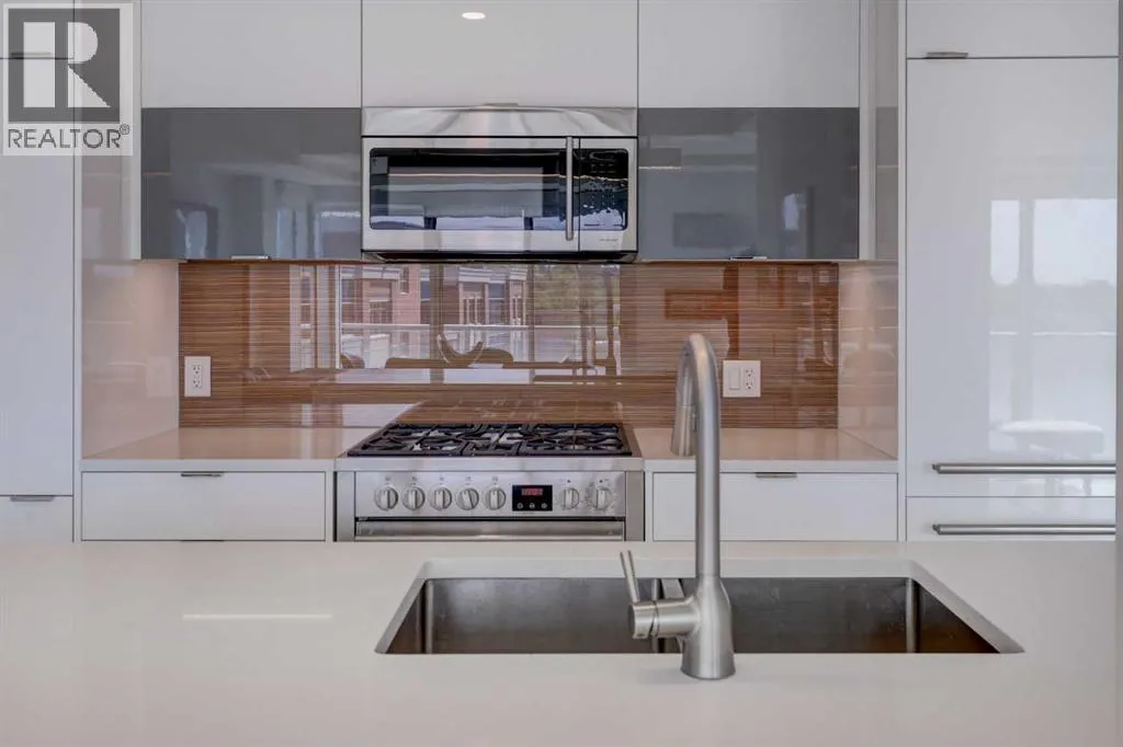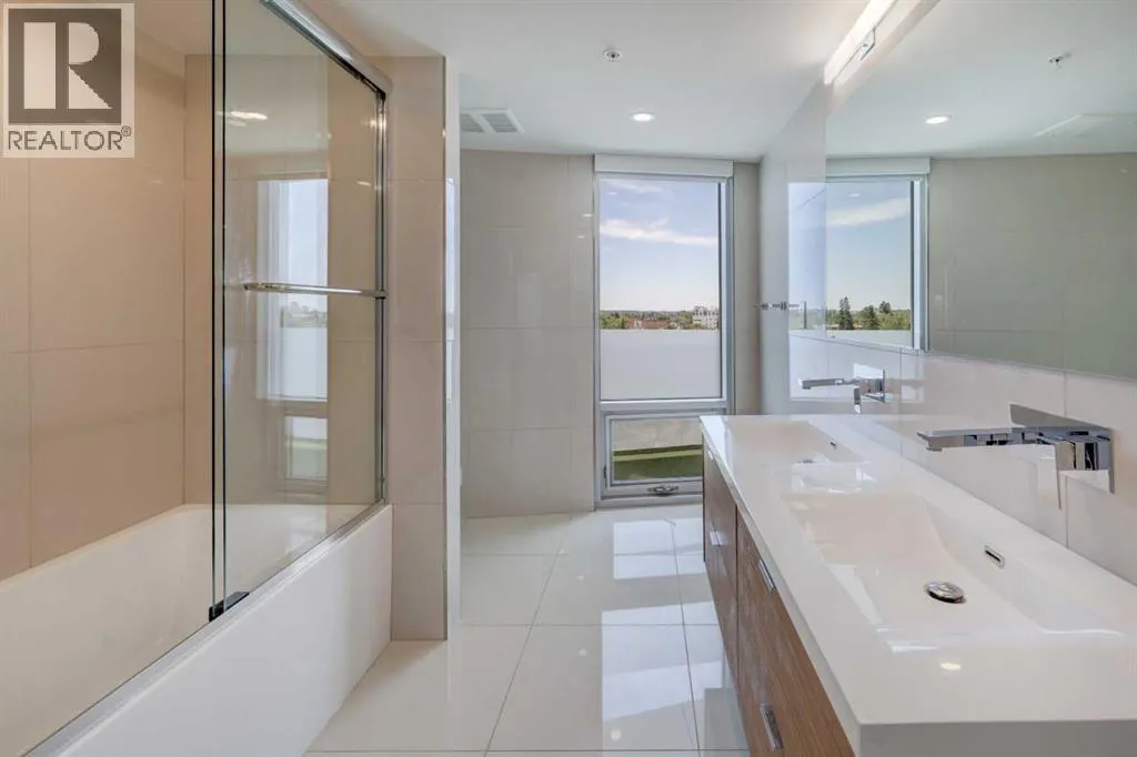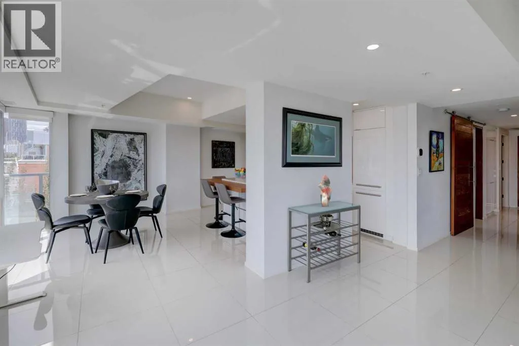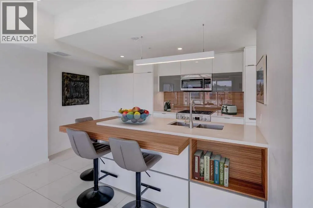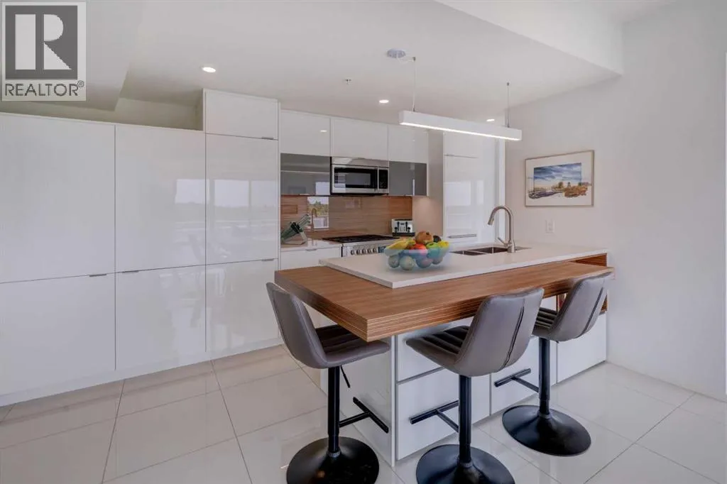Welcome to unit 601, a stylish 1250+ sq ft sub-penthouse in the modern Avli On Atlantic- a very sleek building in historic Inglewood, steps to great shopping, excellent restaurants, cool pubs and an easy walk to the Bow Valley pathways, Fort Calgary,The Saddledome and downtown. This large 2 bedroom, 2 bathroom, 2 titled parking stall unit features a wall of windows flooding the main living space with natural light, architectural touches - cove ceilings, concrete pillar, gleaming tile floors and custom roller blinds. The European style kitchen has ample counter space, built in pantry, integrated dishwasher & fridge, additional cabinets and an extended quartz island with wooden accent, all over looking the dining and main living area, perfect for entertaining. Dual sliders open to the large 300+ square foot wrap around patio (with n-gas hook up) where you have stunning views of 9th Avenue, Ramsey, Inglewood and downtown. The large primary bedroom has modular storage cabinets and a 4 piece ensuite with floating dual vanity & heated floors, an excellent retreat. This unit has it all including ensuite laundry and storage, additional large storage locker, secure bike storage, visitor parking, guest suite and common furnished terrace (3rd floor) for larger get-togethers. The building is very well taken care of and the location is supreme. (id:27476)