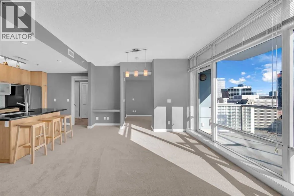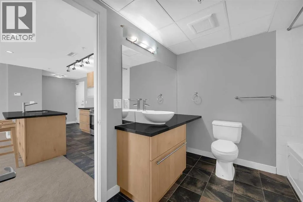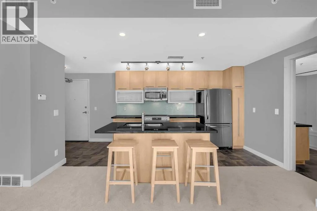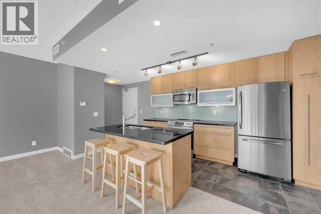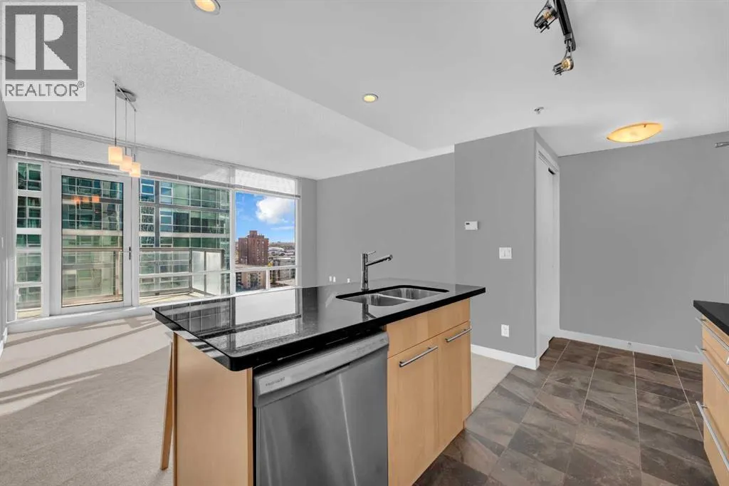 Welcome to UNION SQUARE! This beautifully designed 1 Bed + 1 Bath condo offers a luxurious inner-city lifestyle paired with unbeatable downtown views.Situated on a quiet, tree-lined street, this prime location is just 4 short blocks from the downtown core and steps from some of Calgaryâs best restaurants, cafes, and amenities. Enjoy easy access to green spaces, walking paths, and convenient routes in and out of the city.Inside, the unit boasts a bright and airy open-concept layout with 9â ceilings and floor-to-ceiling windows that fill the space with natural light. The modern kitchen features granite countertops, a tiled backsplash, stainless steel appliances, full-height cabinetry, and a stylish eat-up island with sinkâideal for casual meals and entertaining.The spacious living area opens onto a large covered balconyâperfect for your BBQ or enjoying the downtown skyline.The generously sized primary bedroom features an oversized sliding panel door, with direct access to a 4-piece bathroom and in-suite laundry for added convenience.Enjoy year-round comfort with central air conditioning and the security of heated underground parking. Condo fees include water, sewer, and heatâadding to the ease of ownership.With the Elbow Valley Trail just 3 blocks away and Macleod Trail only 2 blocks out, this location offers both peace and connectivity.Schedule your viewing today! (id:27476)