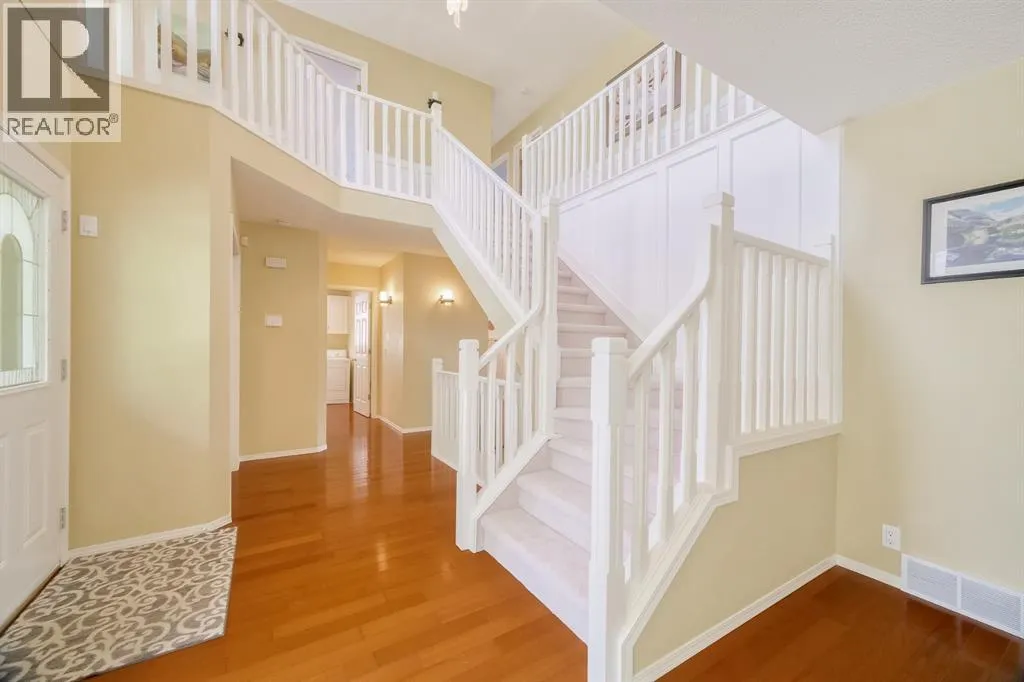 This 2-story home is located on a quiet street in the Hamptons. Newer hardwood flooring on main, upgraded kitchen with granite countertops, open concept living, formal dining, and living room. The upper floor features newer carpet, and 4 bedrooms, the master is oversized with a large walk-in closet and spa-like 5-piece ensuite. 3 more bedrooms are perfect for a growing family. Fully developed basement with newer vinyl floor and large game/media room, huge bedroom, 4-piece bath, and additional office space and finished storage. This home is move-in ready, close to all amenities, schools and public transportation. (id:27476)