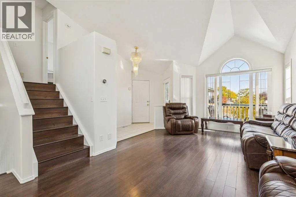 OPEN HOUSE: NOV 1 (SAT), 1 PM - 4:30 PM. Welcome to this beautifully maintained 4-level split home, ideally situated directly across from a peaceful green space and park in the well-established community of Monterey Park. This stunning home offers 4 BEDROOMS, 3 FULL BATHROOMS, and a DOUBLE-ATTACHED GARAGE, providing ample space for families and guests. The main floor features VAULTED CEILINGS and SKYLIGHT, creating a bright and airy atmosphere. The open-concept living and dining areas flow seamlessly, making them perfect for hosting gatherings. The adjacent kitchen is equipped with STAINLESS-STEEL APPLIANCES, a pantry, ample cabinetry, and a cozy breakfast nook that overlooks the backyard. On the second level, you will find 3 comfortable bedrooms, including a MASTER BEDROOM with its own private ENSUITE. A second full bathroom on this level serves the remaining 2 bedrooms. The third level includes a large family room with a corner FIREPLACE, a 4th bedroom ideal for guests, and another full bathroom for added convenience. The fully finished basement adds even more functional living space, including a recreation room, a den or office, a laundry area, and a dedicated storage room. This home is entirely CARPET-FREE, featuring durable LAMINATE FLOORING THROUGHOUT, with ceramic tile in the kitchen and bathrooms. Recent updates include NEW SHINGLES INSTALLED in 2021, FRESH PROFESSIONAL INTERIOR PAINTING, and FULL SERVICING and CLEANING OF THE FURNACE and DUCT SYSTEM. A new, compliant Real Property Report (RPR) is also available. The backyard includes 2 MATURE APPLE TREES, adding charm and character to the outdoor space. This is a fantastic opportunity to own a home in a quiet, family-friendly neighbourhood close to parks/playgrounds, schools, and amenities. Donât miss your chance to make this beautiful home yours. (id:27476)