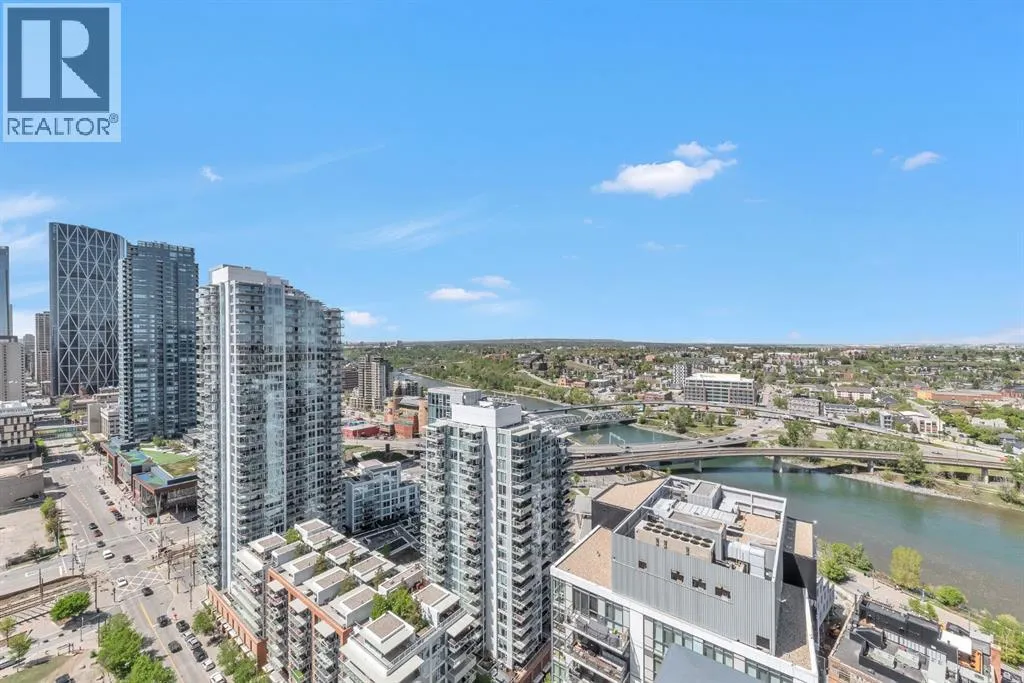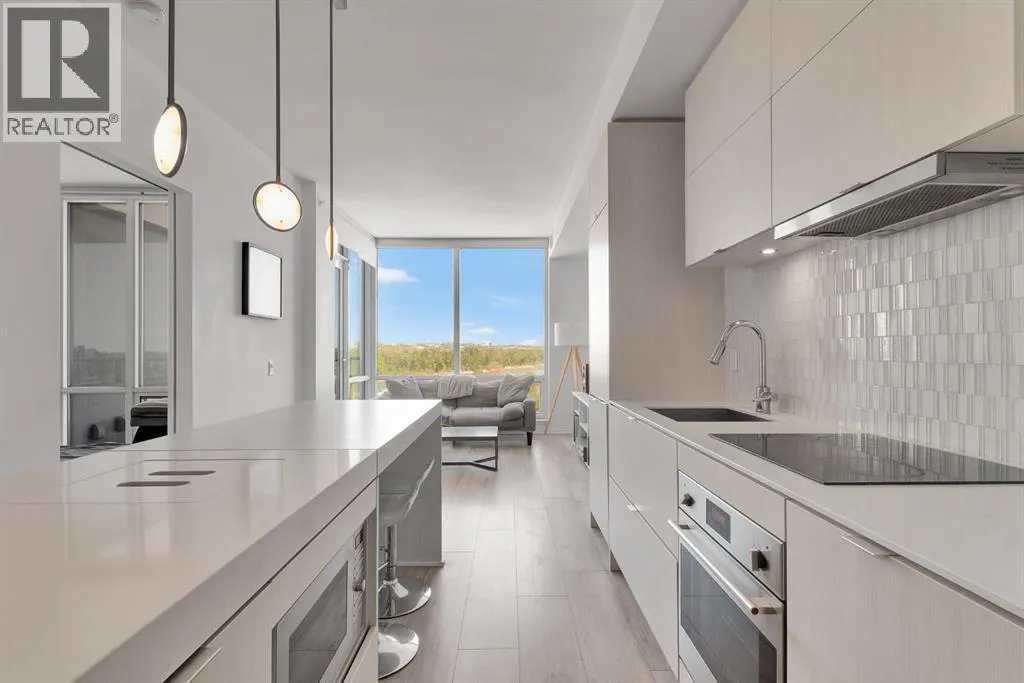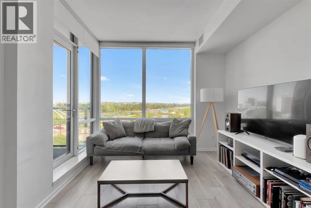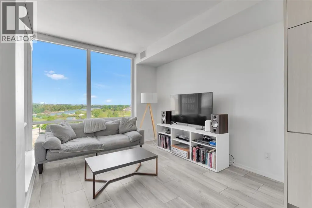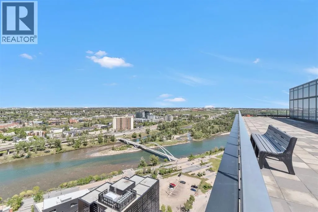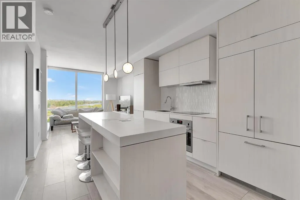 Welcome to this beautifully designed East-facing residence in the sought-after Verve tower, where youâll enjoy unobstructed views of the Bow River and breathtaking sunrises every morning. With 684 square feet of thoughtfully utilized space, this home offers two bedrooms and two bathrooms, making it ideal for both comfortable living and versatile use. The second bedroom is perfectly suited as a guest room, home office, or den to suit your lifestyle needs.The bright and airy layout is enhanced by contemporary finishes, creating a sleek and modern atmosphere throughout. The kitchen is both stylish and functional, featuring a spacious island, built-in refrigerator and dishwasher, and streamlined cabinetry. Floor-to-ceiling windows bathe the interior in natural light and frame stunning river views, while the East-facing balcony offers a tranquil spot to relax outdoors. Additional interior features include in-suite laundry and air conditioning for year-round comfort. A titled underground parking stall and a separate assigned storage locker are also included for your convenience.As a resident of Verve, youâll enjoy access to an impressive selection of amenities, including a state-of-the-art fitness center, bookable guest suites, a rooftop boardroom with panoramic views, and generous indoor and outdoor entertainment spaces complete with kitchens and BBQs. The building also offers concierge and security services, visitor parking, bike storage, and is pet friendly.Situated in the heart of Calgaryâs dynamic East Village, this location is second to none. World-renowned attractions such as the Central Library, Studio Bell, and the Calgary Stampede grounds are just steps away, along with trendy cafes, restaurants, and convenient retail options. For those who love the outdoors, the nearby off-leash dog park and Bow River Pathway system are less than 200 meters from your doorstep. (id:27476)