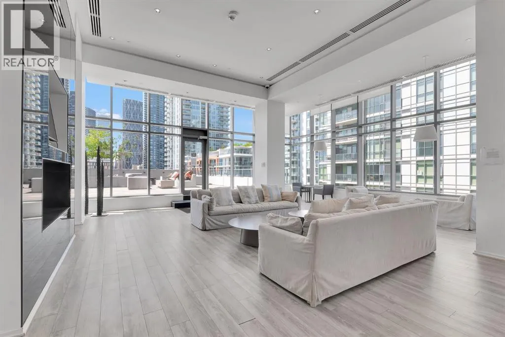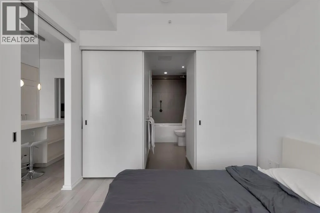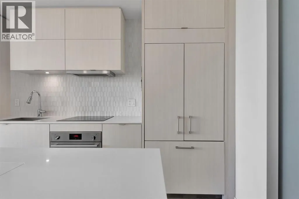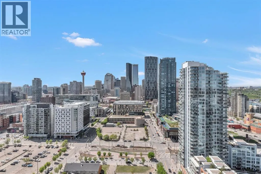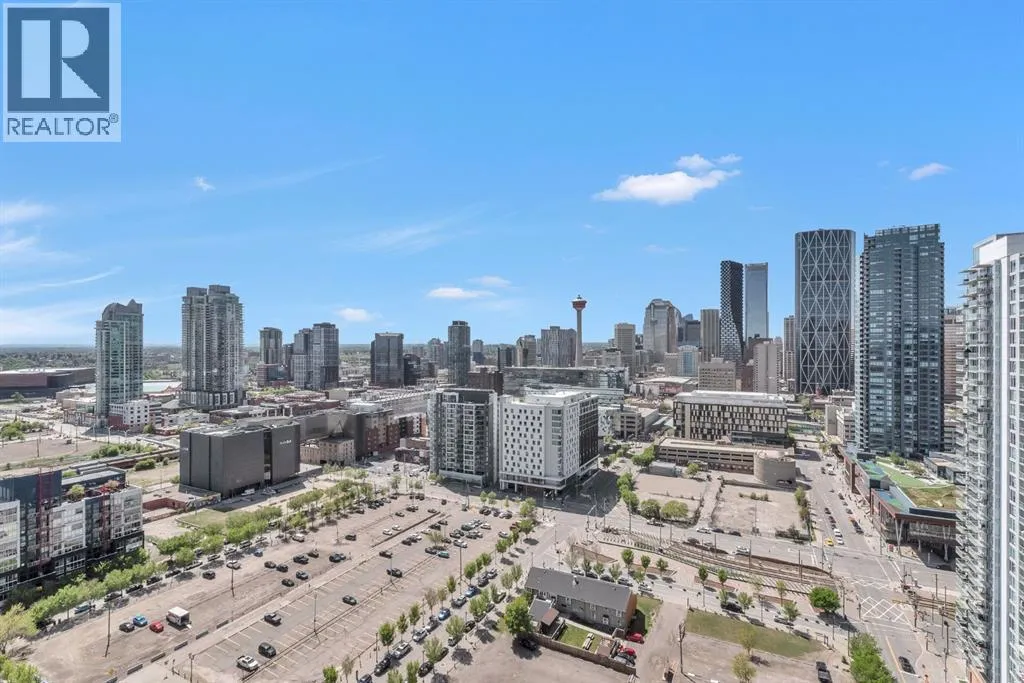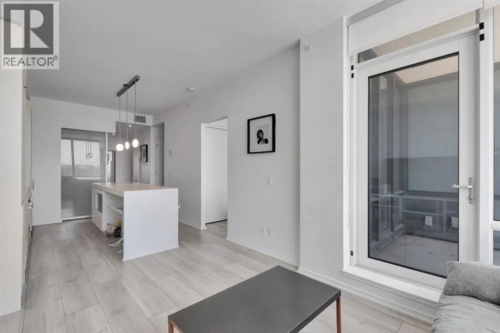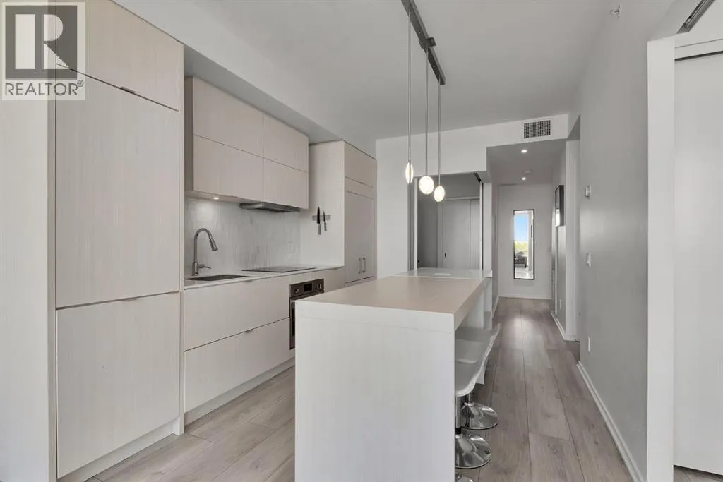 Welcome to this beautifully designed East-facing residence in the sought-after Verve tower, where youâll enjoy unobstructed views of the Bow River and breathtaking sunrises every morning. With 684 square feet of thoughtfully utilized space, this home offers two bedrooms and two bathrooms, making it ideal for both comfortable living and versatile use. The second bedroom is perfectly suited as a guest room, home office, or den to suit your lifestyle needs.The bright and airy layout is enhanced by contemporary finishes, creating a sleek and modern atmosphere throughout. The kitchen is both stylish and functional, featuring a spacious island, built-in refrigerator and dishwasher, and streamlined cabinetry. Floor-to-ceiling windows bathe the interior in natural light and frame stunning river views, while the East-facing balcony offers a tranquil spot to relax outdoors. Additional interior features include in-suite laundry and air conditioning for year-round comfort. A titled underground parking stall and a separate assigned storage locker are also included for your convenience.As a resident of Verve, youâll enjoy access to an impressive selection of amenities, including a state-of-the-art fitness center, bookable guest suites, a rooftop boardroom with panoramic views, and generous indoor and outdoor entertainment spaces complete with kitchens and BBQs. The building also offers concierge and security services, visitor parking, bike storage, and is pet friendly.Situated in the heart of Calgaryâs dynamic East Village, this location is second to none. World-renowned attractions such as the Central Library, Studio Bell, and the Calgary Stampede grounds are just steps away, along with trendy cafes, restaurants, and convenient retail options. For those who love the outdoors, the nearby off-leash dog park and Bow River Pathway system are less than 200 meters from your doorstep. (id:27476)