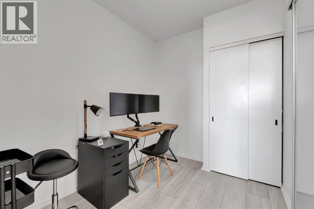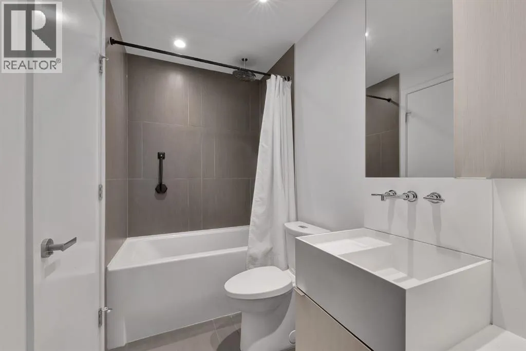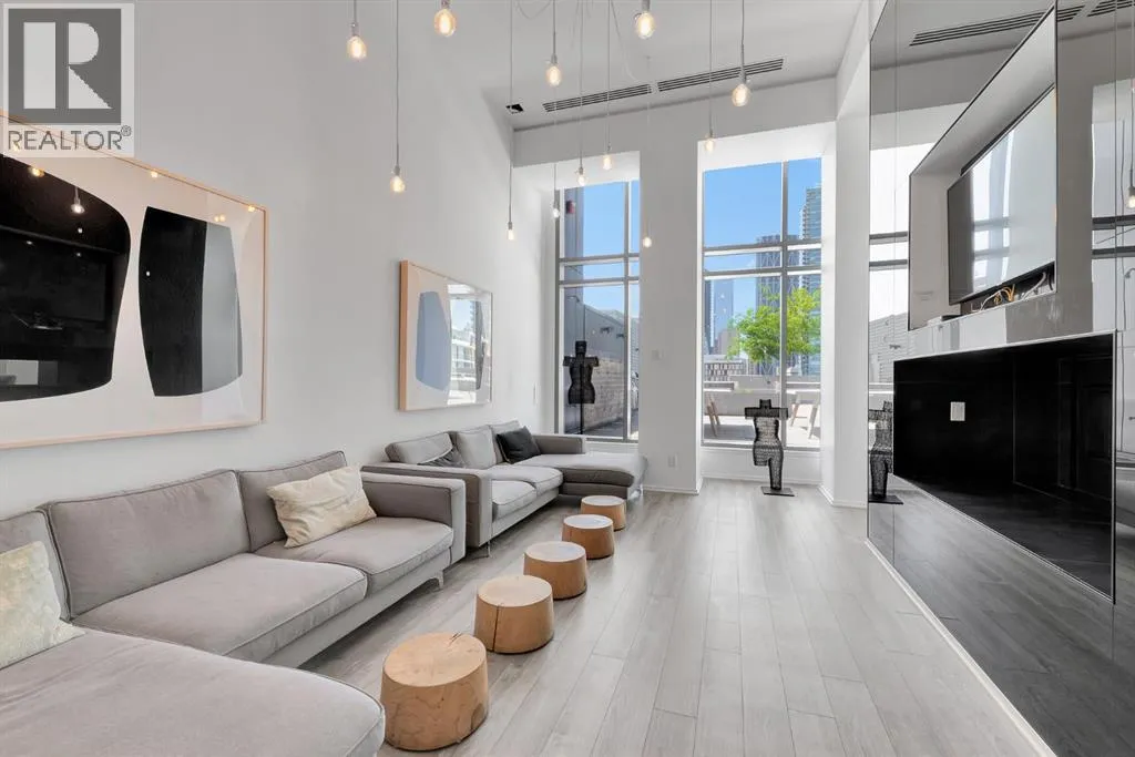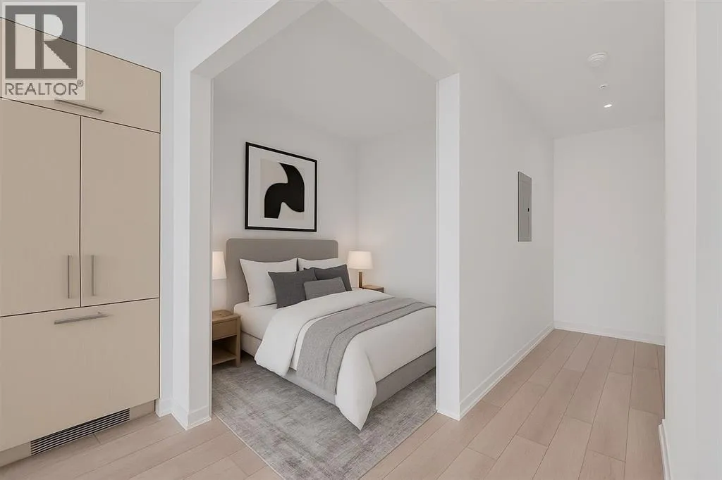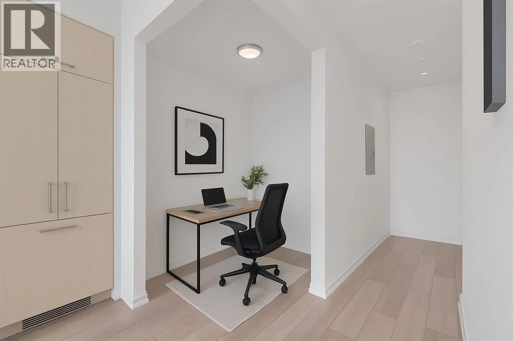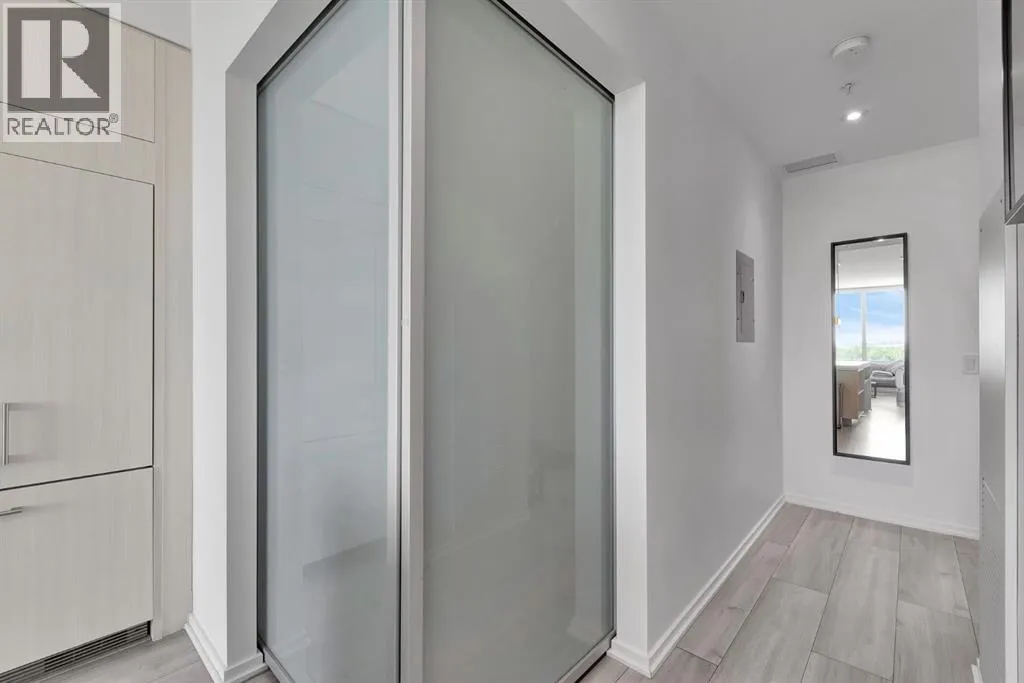 Welcome to this beautifully designed East-facing residence in the sought-after Verve tower, where youâll enjoy unobstructed views of the Bow River and breathtaking sunrises every morning. With 684 square feet of thoughtfully utilized space, this home offers two bedrooms and two bathrooms, making it ideal for both comfortable living and versatile use. The second bedroom is perfectly suited as a guest room, home office, or den to suit your lifestyle needs.The bright and airy layout is enhanced by contemporary finishes, creating a sleek and modern atmosphere throughout. The kitchen is both stylish and functional, featuring a spacious island, built-in refrigerator and dishwasher, and streamlined cabinetry. Floor-to-ceiling windows bathe the interior in natural light and frame stunning river views, while the East-facing balcony offers a tranquil spot to relax outdoors. Additional interior features include in-suite laundry and air conditioning for year-round comfort. A titled underground parking stall and a separate assigned storage locker are also included for your convenience.As a resident of Verve, youâll enjoy access to an impressive selection of amenities, including a state-of-the-art fitness center, bookable guest suites, a rooftop boardroom with panoramic views, and generous indoor and outdoor entertainment spaces complete with kitchens and BBQs. The building also offers concierge and security services, visitor parking, bike storage, and is pet friendly.Situated in the heart of Calgaryâs dynamic East Village, this location is second to none. World-renowned attractions such as the Central Library, Studio Bell, and the Calgary Stampede grounds are just steps away, along with trendy cafes, restaurants, and convenient retail options. For those who love the outdoors, the nearby off-leash dog park and Bow River Pathway system are less than 200 meters from your doorstep. (id:27476)