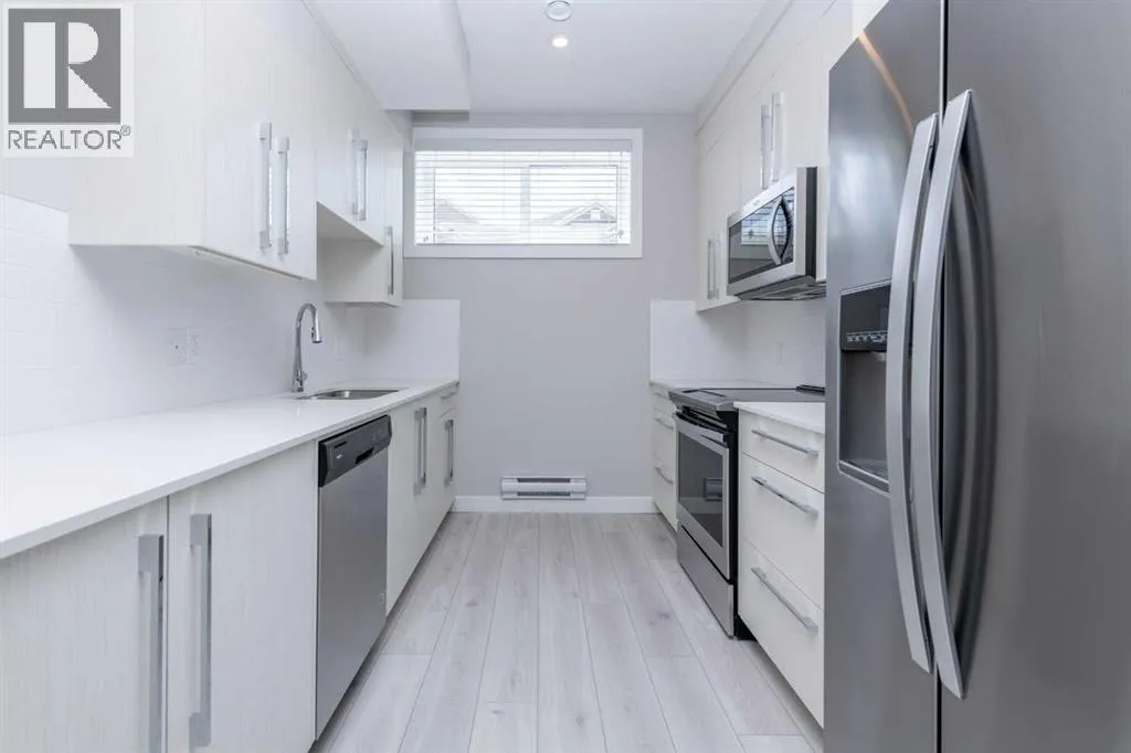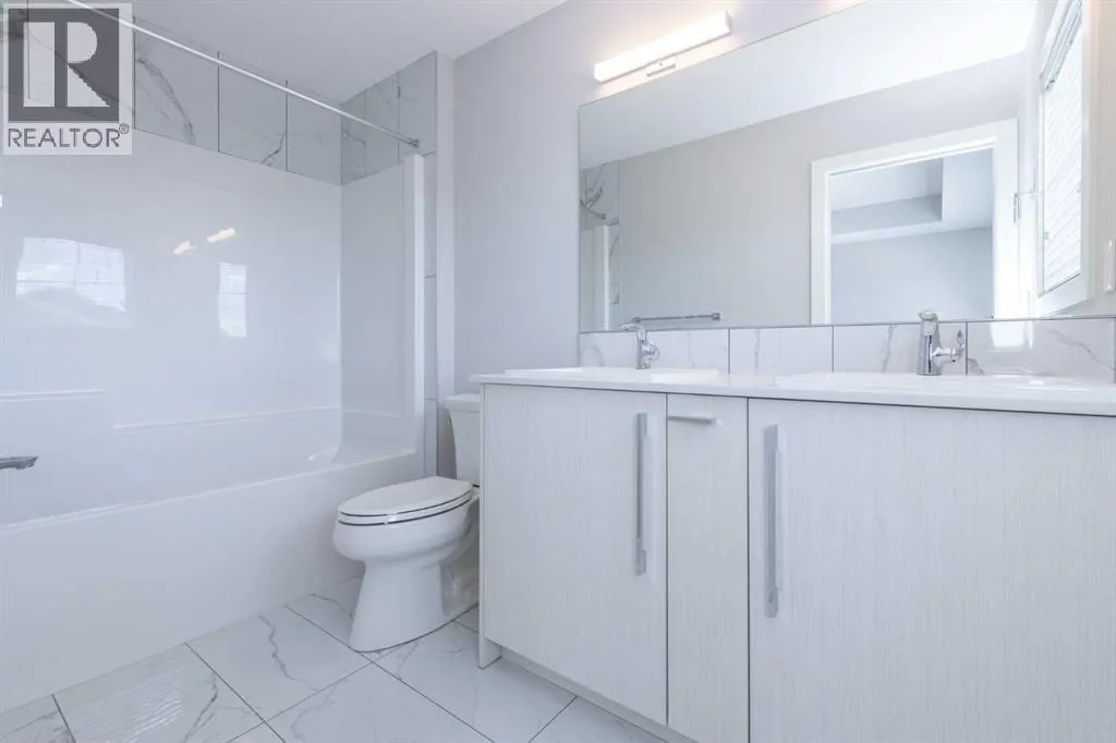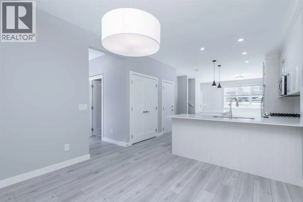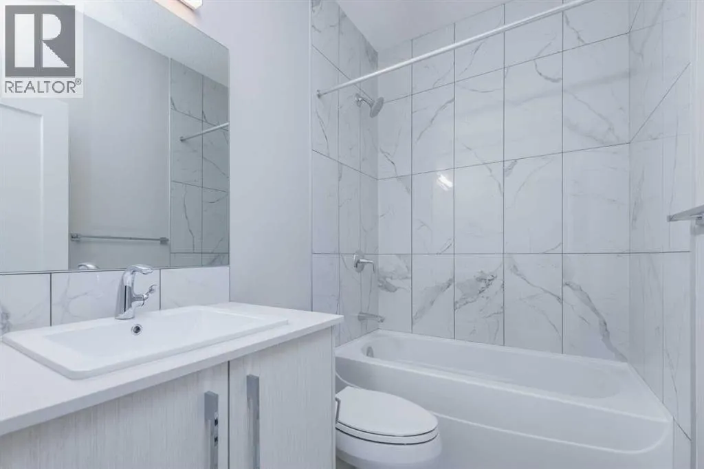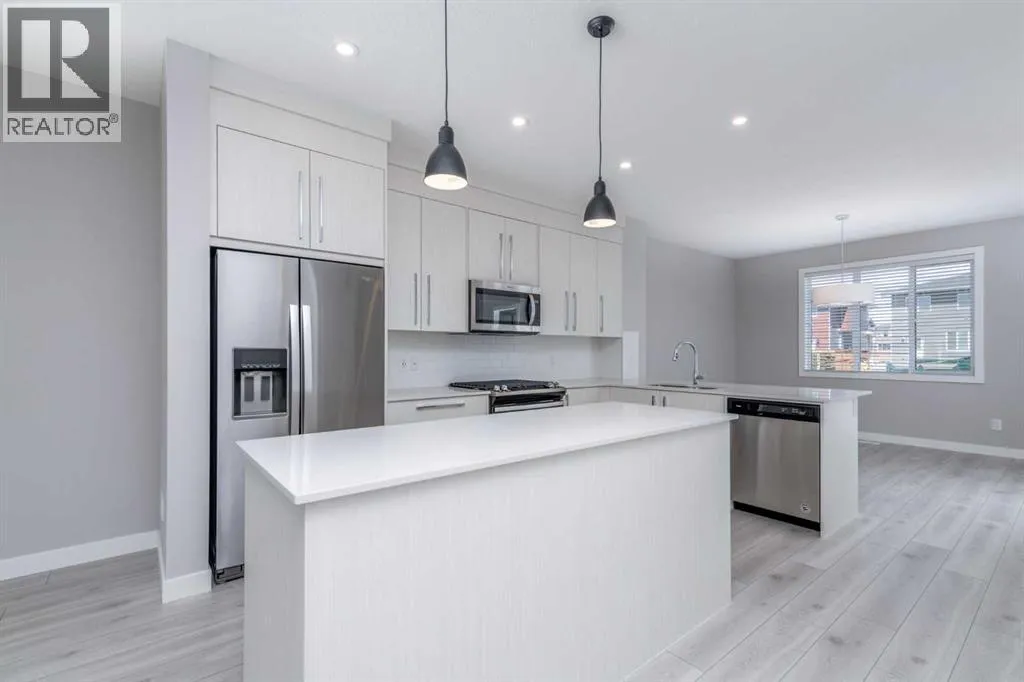 This beautifully maintained semi-detached home in Redstone offers a bright and spacious main floor layout with dedicated dining and living areas, plus a convenient half bathroom. The full-size kitchen features a light colour scheme, quartz countertops, and a complete stainless steel appliance package.Upstairs, youâll find three generous bedrooms and two full bathrooms, including a primary suite that easily accommodates a king-size bed and features a private ensuite with dual vanity sinks. The second-floor laundry adds everyday convenience.The legal, city-registered basement suite is professionally finished and features high ceilings, a bright open layout, one spacious bedroom, a full bathroom, a modern kitchen with quality appliances, and in-suite laundry â all with a private entrance with a concrete walkway for added privacy.Enjoy the landscaped backyard and deck, perfect for relaxing or entertaining. A detached double garage completes this fantastic property.Located in the vibrant community of Redstone, this home is close to schools, parks, shopping, and all amenities, with quick access to major roads and CrossIron Mills. (id:27476)