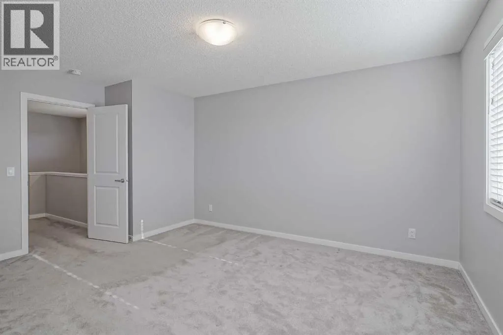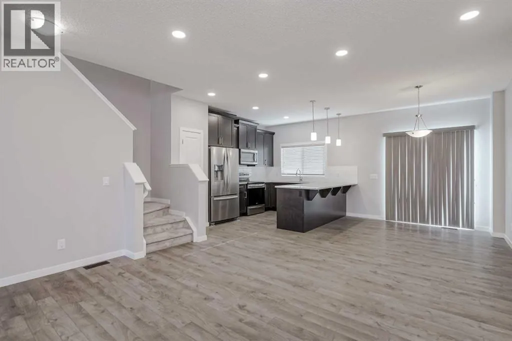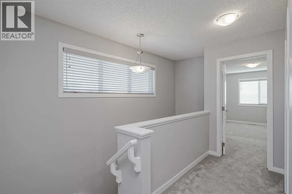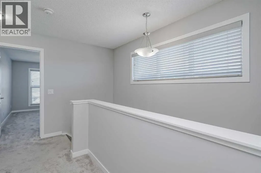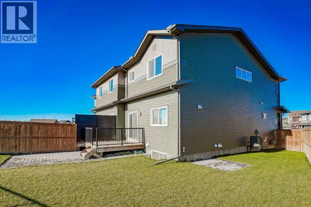 An Unbeatable Opportunity with Unmatched PrivacyDon't miss this rare chance to own a beautiful half-duplex in the desirable community of Carringtonâa home that offers both an incredible value and a peaceful setting. This property stands out from the rest with its unique pie-shaped lot and the huge bonus of no rear neighbors, ensuring a private, serene backyard oasis. Step inside and be greeted by the home's bright, open-concept floor plan, enhanced by soaring 9-foot ceilings and elegant Luxury Vinyl Plank flooring on the main level. The living room is flooded with natural light, creating a warm and welcoming atmosphere. The thoughtfully designed kitchen is a chef's delight, boasting a full set of stainless steel appliances, beautiful quartz countertops, an eating bar, and soft-closing drawers. It's perfectly positioned to serve the spacious dining area, making it ideal for everyday meals and entertaining. Upstairs, the generous primary bedroom is your private retreat, featuring a walk-in closet and a private 3-piece ensuite. Two additional well-sized bedrooms offer large windows and share a 4-piece bathroom, providing comfort and space for family or guests. Plus, the convenience of an upper-level laundry room makes chores a breeze. The full and unfinished basement is a blank canvas, giving you the freedom to create a space that perfectly suits your needs, with rough-in plumbing already in place for a future bathroom. Enjoy year-round comfort with central air conditioning and the added convenience of an insulated attached garage. The true highlight of this home is the expansive, fully fenced southeast-facing backyard, complete with a deck and patio and underground sprinklers. Itâs a spectacular space for entertaining, gardening, or simply relaxing in complete privacy. Located in a fantastic community with easy access to shopping, parks, and major routes like Stoney Trail, this home offers everything you need and more.This is not just a house; it's the perfect combin ation of modern living, privacy, and endless potential. Priced to sell, this exceptional home is a smart investment showing today! (id:27476)