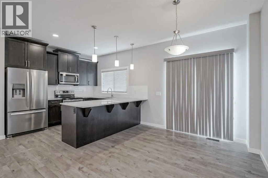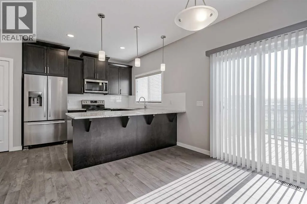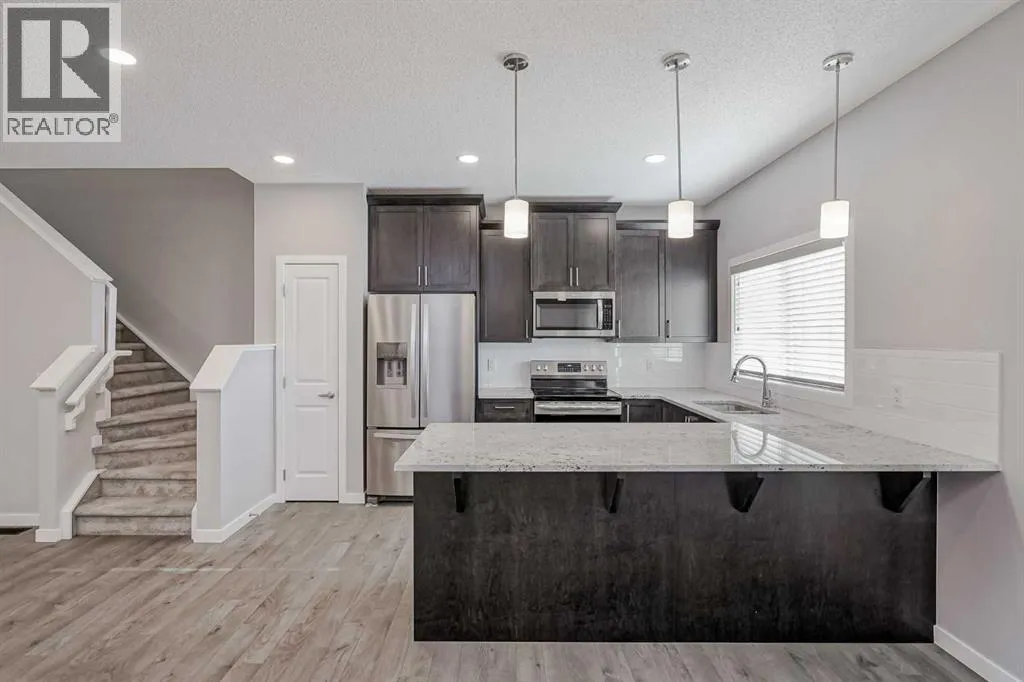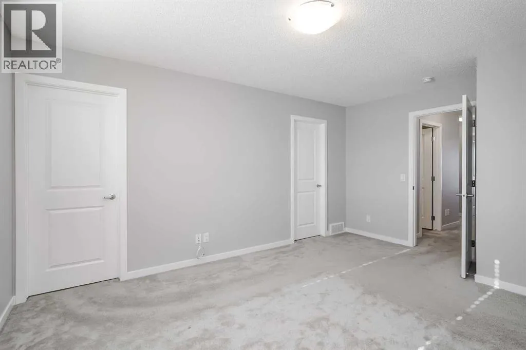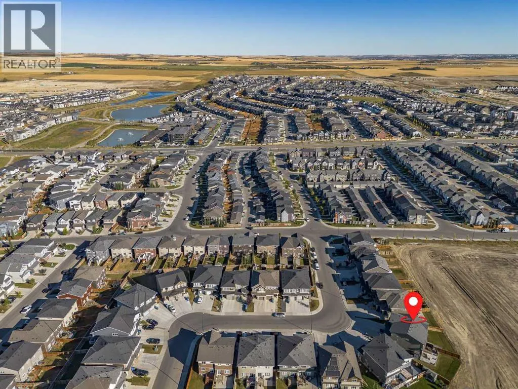 An Unbeatable Opportunity with Unmatched PrivacyDon't miss this rare chance to own a beautiful half-duplex in the desirable community of Carringtonâa home that offers both an incredible value and a peaceful setting. This property stands out from the rest with its unique pie-shaped lot and the huge bonus of no rear neighbors, ensuring a private, serene backyard oasis. Step inside and be greeted by the home's bright, open-concept floor plan, enhanced by soaring 9-foot ceilings and elegant Luxury Vinyl Plank flooring on the main level. The living room is flooded with natural light, creating a warm and welcoming atmosphere. The thoughtfully designed kitchen is a chef's delight, boasting a full set of stainless steel appliances, beautiful quartz countertops, an eating bar, and soft-closing drawers. It's perfectly positioned to serve the spacious dining area, making it ideal for everyday meals and entertaining. Upstairs, the generous primary bedroom is your private retreat, featuring a walk-in closet and a private 3-piece ensuite. Two additional well-sized bedrooms offer large windows and share a 4-piece bathroom, providing comfort and space for family or guests. Plus, the convenience of an upper-level laundry room makes chores a breeze. The full and unfinished basement is a blank canvas, giving you the freedom to create a space that perfectly suits your needs, with rough-in plumbing already in place for a future bathroom. Enjoy year-round comfort with central air conditioning and the added convenience of an insulated attached garage. The true highlight of this home is the expansive, fully fenced southeast-facing backyard, complete with a deck and patio and underground sprinklers. Itâs a spectacular space for entertaining, gardening, or simply relaxing in complete privacy. Located in a fantastic community with easy access to shopping, parks, and major routes like Stoney Trail, this home offers everything you need and more.This is not just a house; it's the perfect combin ation of modern living, privacy, and endless potential. Priced to sell, this exceptional home is a smart investment showing today! (id:27476)