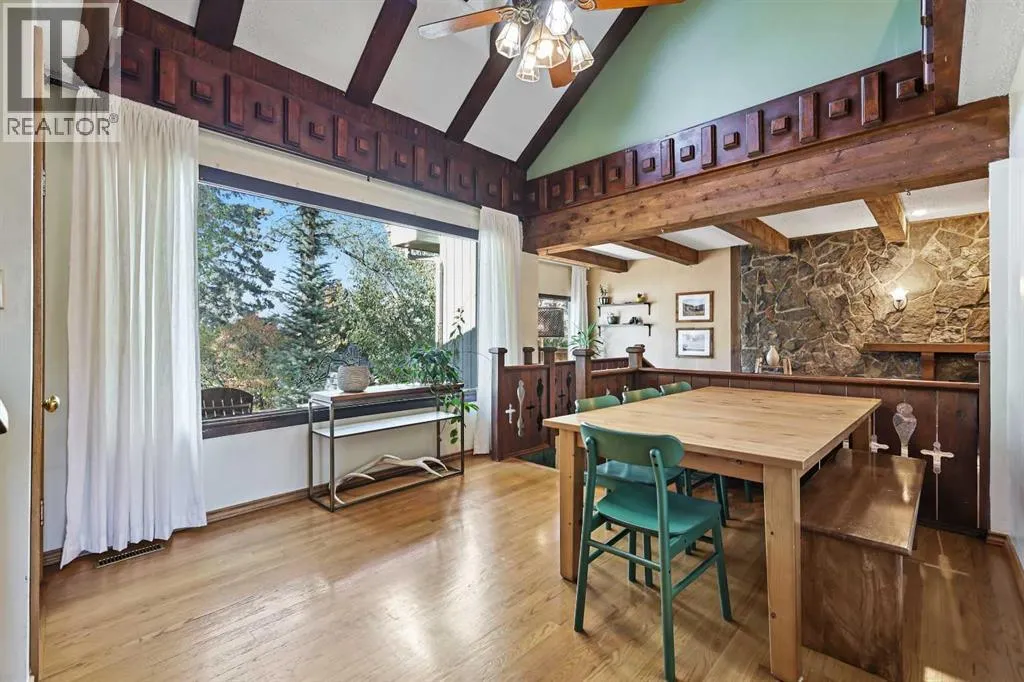 Welcome to this charming 1.5-storey detached home, with 1822 sq ft above grade, in the highly sought-after community of Highland Park, the perfect place for families who want the best of both worlds: peaceful living and easy access to downtown being in the central location that it is. Set on a spacious 50â x 119â lot, this property offers room to grow, play, and create lasting memories, with an option down the road for redevelopment. From the moment you step inside, youâll be greeted by beautiful hand-crafted woodwork, soaring vaulted ceilings, and exposed beams that give the home a warm and inviting feel. The open-concept living room, featuring a stunning wood-burning fireplace framed by a stone wall, is the perfect gathering spot for cozy family nights or relaxed weekends at home. Large west windows fill the main floor space with natural light, making it bright and cheerful throughout the day. On the main floor, youâll find two comfortable bedrooms with one being used as an office right now, 3 piece bath, formal dining room, and comfy sitting nook. The spacious kitchen offers ample cabinetry and counter space, ready for family meals and everyday living. Upstairs, the primary suite is a true retreat with a private balcony, walk-in closet, and 4 piece ensuite bathroom, what a peaceful spot to unwind at the end of the day. Another upper-level bedroom provides great flexibility for kids or guests. The fully finished basement expands your living space with an additional bedroom, full bath, and a large recreation room featuring a built-in bar, great for movie nights, playtime, or entertaining friends. Step outside to enjoy a private backyard oasis complete with a covered deck, patio, and a double detached garage. Itâs the ideal setup for BBQs, kidsâ playtime, and family gatherings all year round. The front driveway is also super convenient for someone who wants to park out front, use for a trailer, or ease of use for your visitors. Located just seconds from Centre Stree t with direct transit access to downtown, this home is ideal for parents working in the city. With schools, parks, and shopping nearby, this is a truly special opportunity to settle into a family-friendly community with charm, convenience, and character. (id:27476)