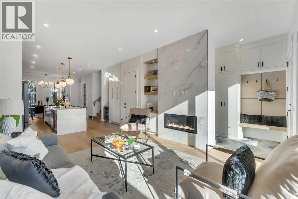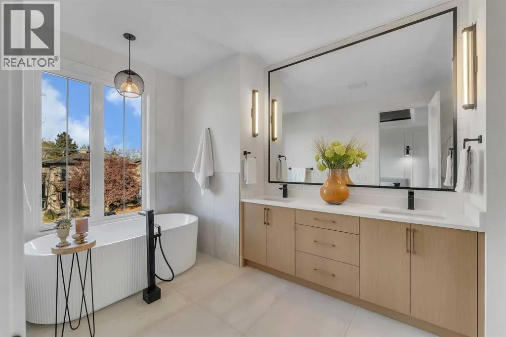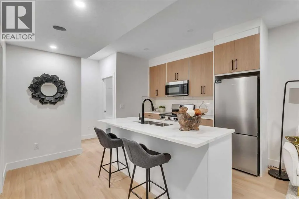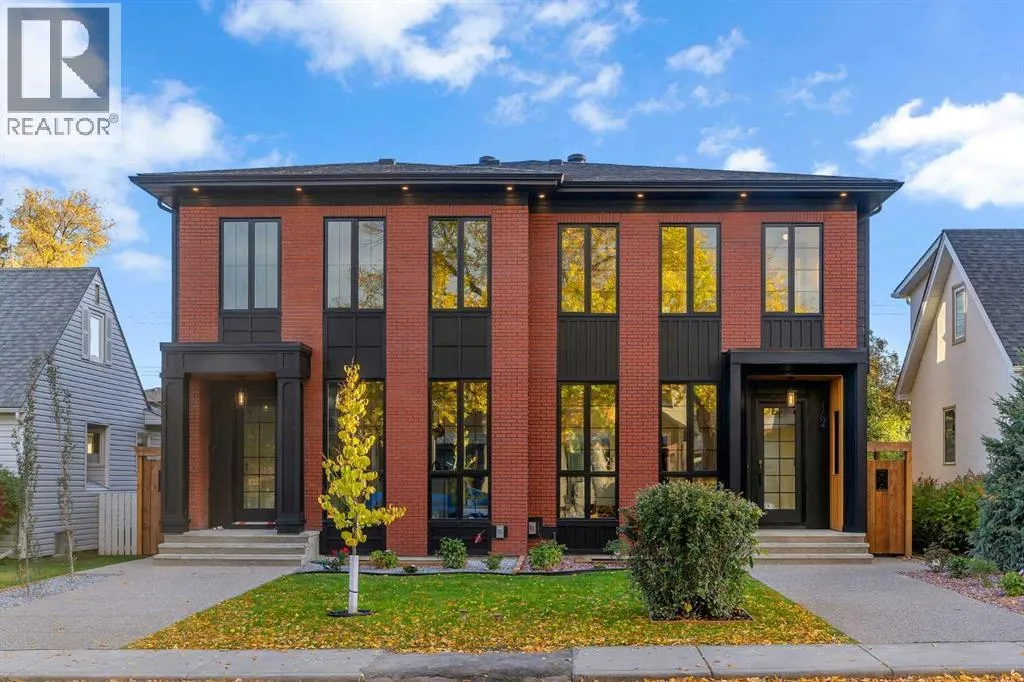 Welcome to the heart of Mount Pleasant, one of Calgaryâs most sought-after inner city neighbourhoods. This newly built semi detached home combines modern design with practical family living, offering over 2,800 sq ft of beautifully finished space including a legal suite. Thoughtfully designed for flexibility, itâs ideal for multi generational living or rental income without compromise on comfort or style. The open concept main level features large windows that fill the home with natural light. The kitchen showcases KitchenAid appliances, sleek and stylish custom cabinetry, quartz countertops, and a stunning full slab backsplash that creates a clean, seamless look. A large island anchors the space, perfect for casual meals or conversation. The adjoining dining and living areas flow naturally toward the deck, creating an inviting space for both family time and entertaining. A fully fenced, landscaped yard includes a composite deck for a private, low-maintenance outdoor retreat, and a front sprinkler system keeps the landscaping lush and effortless. Upstairs, the primary suite is a true escape, featuring a large walk in closet and a spa inspired ensuite with Italian tile, a steam shower, freestanding tub, and dual vanities. Italian tile continues through all bathrooms, adding a consistent, upscale feel. Two additional bedrooms, a full bath, and a laundry room complete the level, designed with both privacy and function in mind. The legal two bedroom basement suite is self contained with its own entrance, full kitchen, laundry, and bath, ideal for extended family or generating additional income. The design and sound separation ensure comfort for both households. Additional features include smart toilets, engineered hardwood on the main and upper floors, durable LVP in the basement, and a finished double detached garage with a heating rough-in offering secure parking and extra storage. The exterior blends red brick, and modern accents for timeless curb appeal. Mount Pleas ant continues to be one of Calgaryâs most desirable communities, known for its mature tree lined streets, walkability, and welcoming feel. Residents enjoy easy access to Confederation Park, the community pool and sports facilities, as well as cafes and boutiques along 4th Street NW. Close proximity to SAIT, Kensington, and downtown makes daily life convenient and connected. A home that delivers quality construction, flexible living, and a location that will always be in demand. Move in ready. (id:27476)