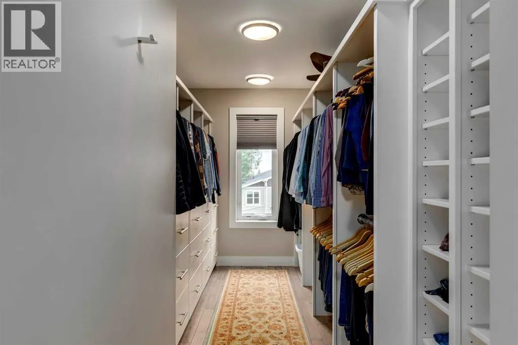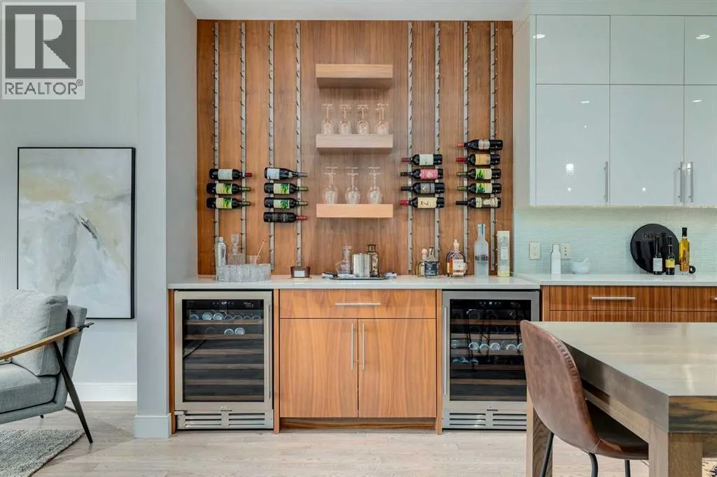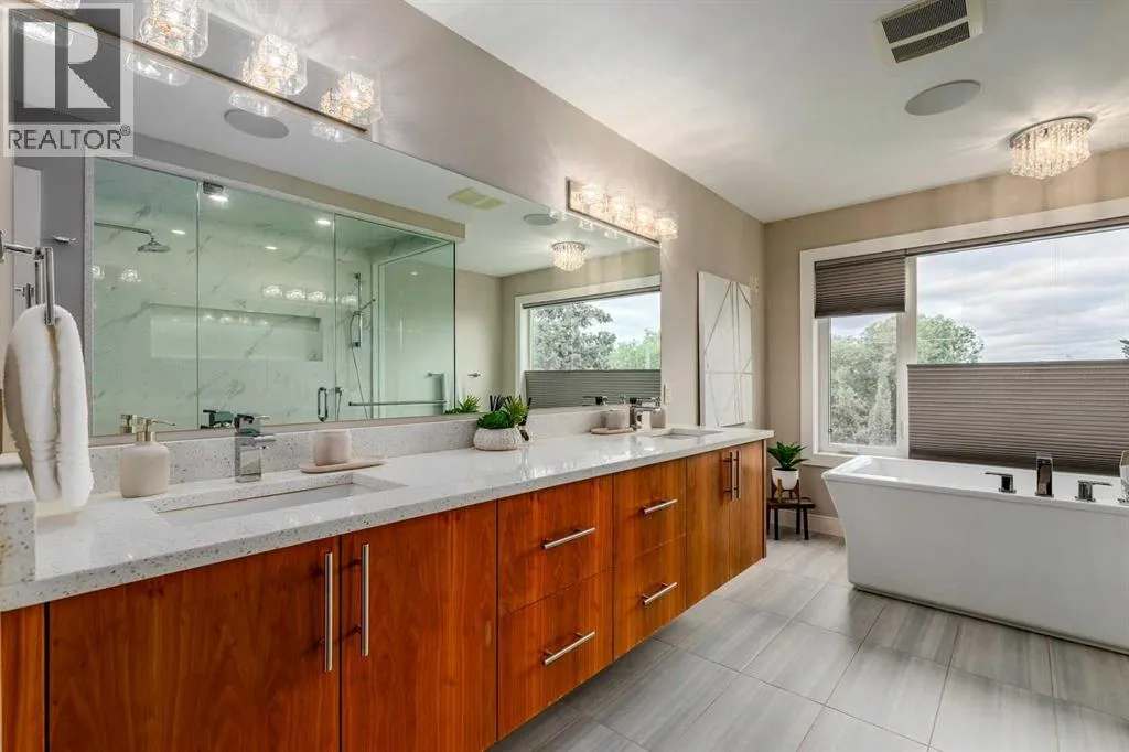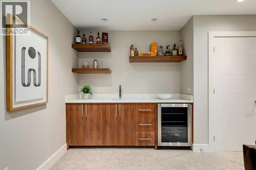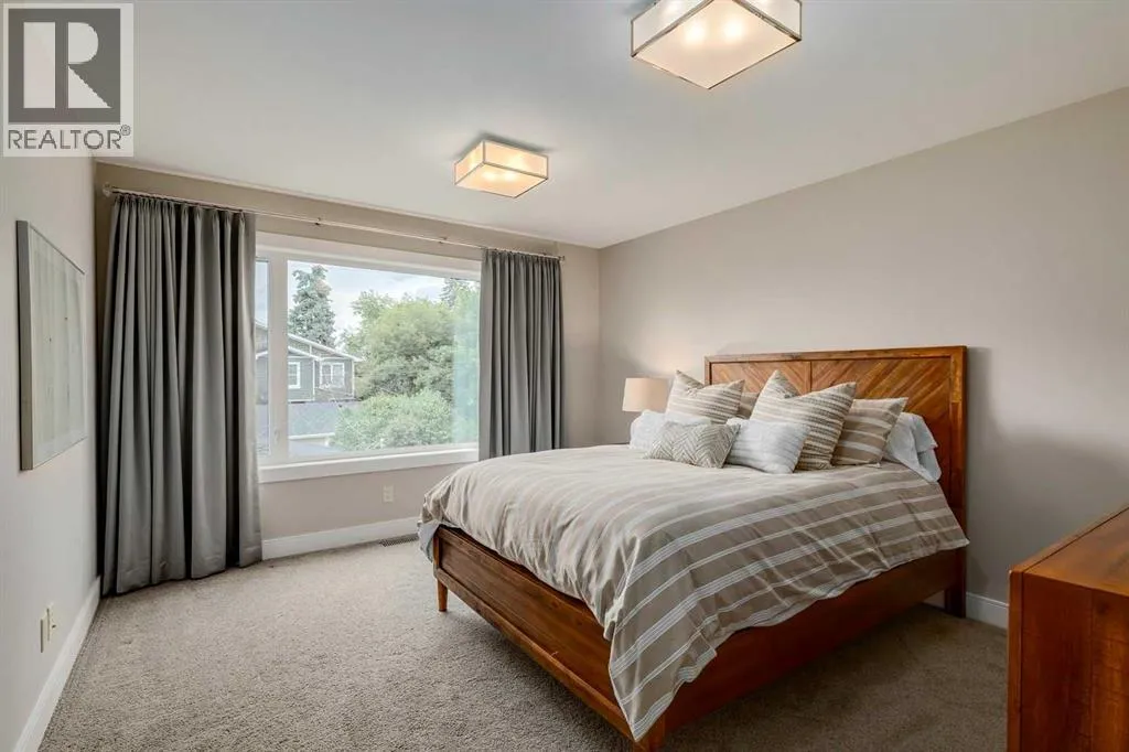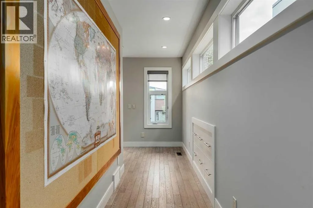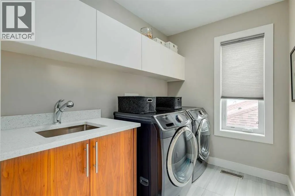 This stunning three-story detached home offers nearly 3,500 sq ft of beautifully finished living space in the heart of Richmond. Every detail reflects thoughtful design, quality craftsmanship + numerous luxury upgrades throughout. Soaring 9-foot ceilings on all levels + large windows fill the home with natural light + hardwood floors throughout. The main floor is ideal for both entertaining + everyday life. The spacious dining room is at the front of the house with lovely street views; Chefs kitchen is efficiently designed, galley style with huge island, upgraded KitchenAid appliances, Caesarstone + quartz counters, walnut cabinetry, under-cabinet lighting, floating shelves, a built-in wine wall + a movable custom island table. Comfy family room with ribbon gas fireplace overlooks backyard. Patio doors lead into the sunny, south-facing backyardâfully finished in maintenance-free concrete with gas hookups for a BBQ + fire table, outdoor speakers + a double detached garage complete with slat wall + ceiling storage. A floating oak staircase leads to the second level, which includes two generous bedrooms, a mezzanine office, a five-piece bathroom with heated floors + a full laundry room. The top-floor primary, is a private retreat, offering a massive walk-in closet with custom shoe racks + storage, a spa-inspired five-piece ensuite with a standalone tub, floor-to-ceiling tiled shower with LED lighting + heated floors. From here, access your large private rooftop patio. The fully finished basement offers a cozy living area with wet bar, an additional bedroom, three-piece bathroom, second laundry set + storage. Additional features include: Smart home system with built-in speakers + full sound/security wiring, four wine coolers, two furnaces, each with humidifiers, dual A/C units for climate control, oversized 80-gallon hot water tank, mudroom with heated floors + custom built-ins, Gemstone exterior lighting + low-maintenance turf front yard. Located on a quiet s treet just a short walk to Marda Loop, 17th Avenue, Richmond School (Kâ6) + nearby shops + restaurants. (id:27476)
