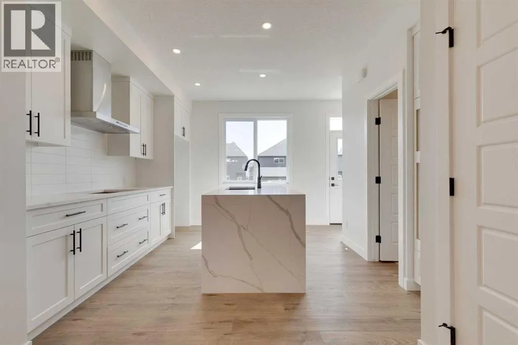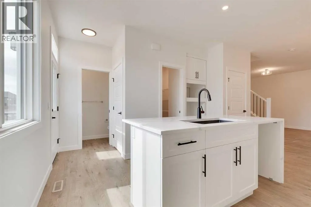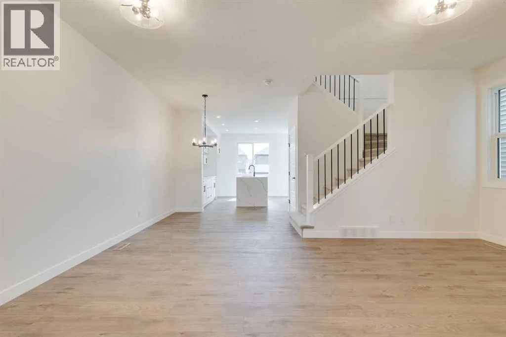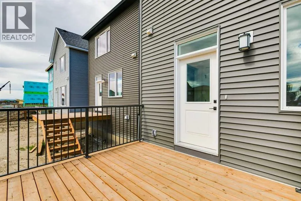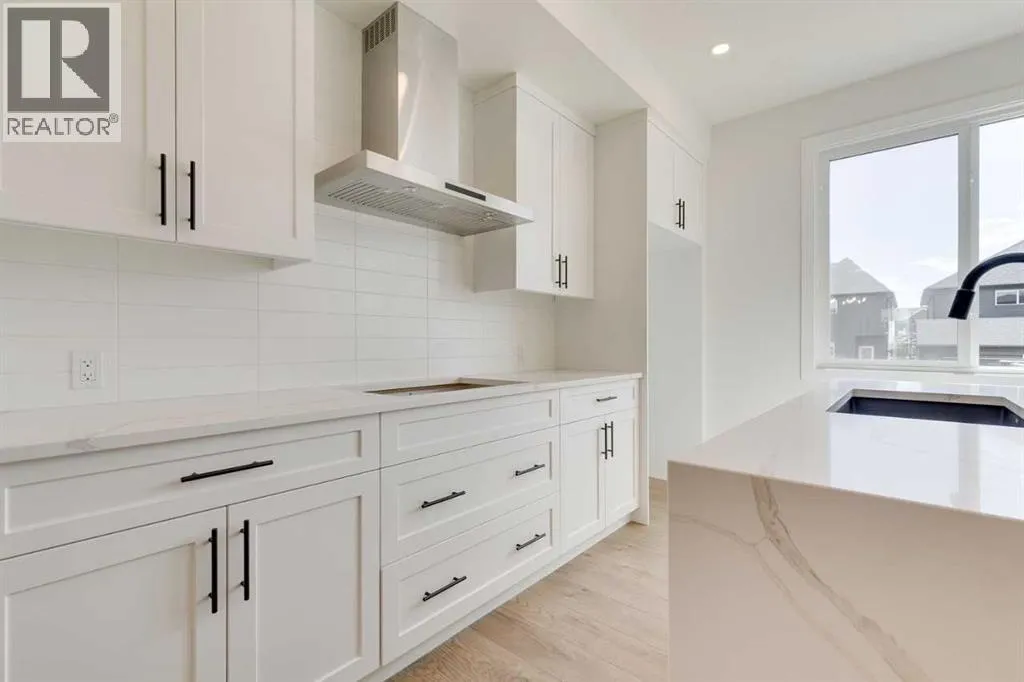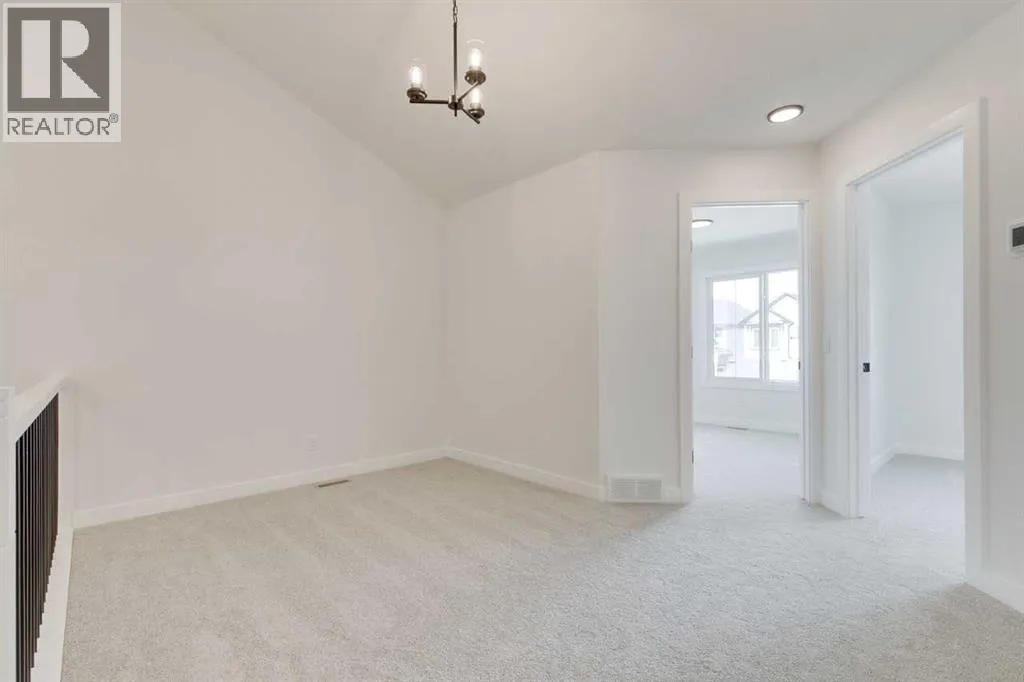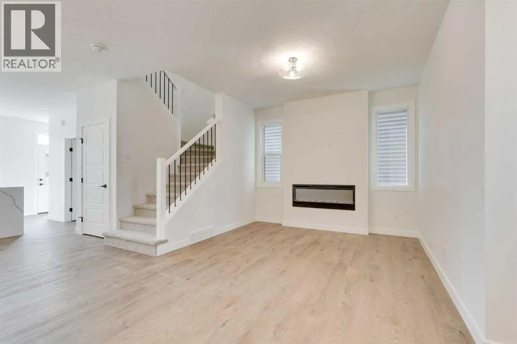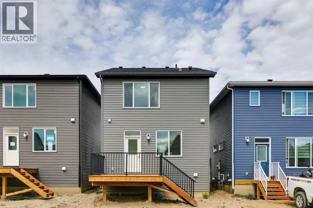 Discover The Onyx by Sterling Homes Calgary, a modern and thoughtfully designed home built by an experienced builder with over 70 years of history. This home features designer-selected finishes, energy-efficient construction, and smart-home technology for contemporary living.The kitchen is equipped with built-in stainless steel appliances, quartz countertops with a waterfall-edge island, and a walk-in pantry. The main floor includes a versatile den and a side entrance. Upstairs, enjoy a spacious loft with vaulted ceiling and an electric fireplace for added comfort. The primary ensuite offers a tiled walk-in shower and a vanity with full-height drawers, while LVP flooring adds durability throughout the bathrooms and laundry area. Home also features a 11' x 11' rear deck.This Built Green certified home includes triple-pane windows, a high-efficiency furnace, a solar chase for a future-ready setup, and an electric-vehicle charger rough-in. Smart-home features include a programmable thermostat, doorbell camera, smart front-door lock, and motion-activated lighting, all connected through a central smart-home hub. Photos are representative. (id:27476)