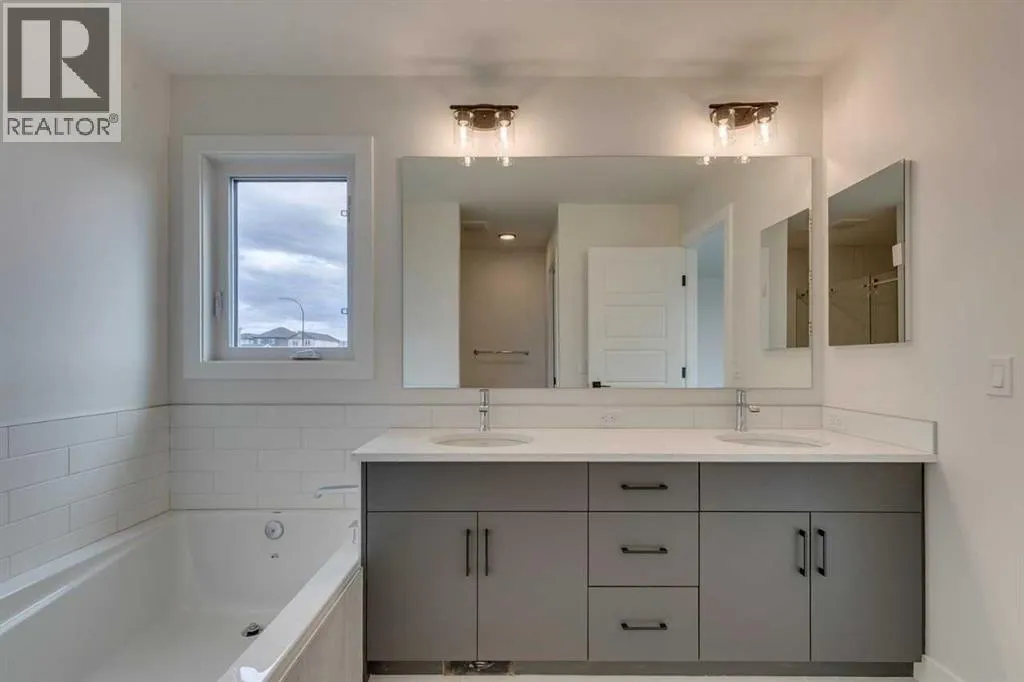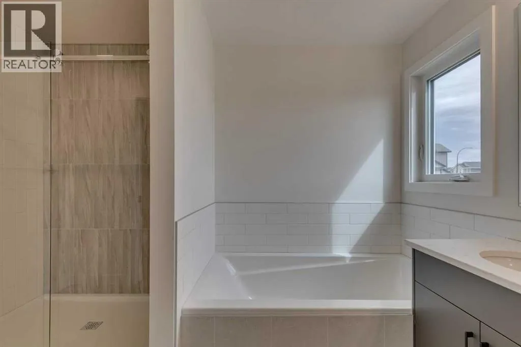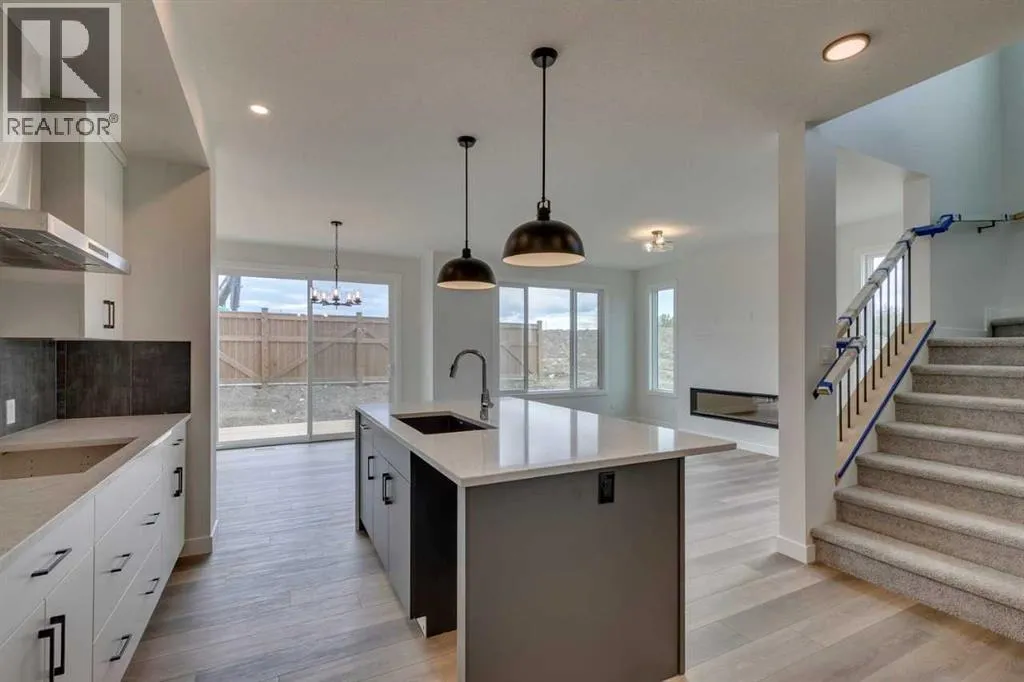 Welcome to The Denali 6. Built by a trusted builder with over 70 years of experience, this home showcases on-trend, designer-curated interior selections tailored for a home that feels personalized to you. This energy-efficient home is Built Green certified and includes triple-pane windows, a high-efficiency furnace, and a solar chase for a solar-ready setup. With blower door testing that can offer up to may be eligible for up to 25% mortgage insurance savings, plus an electric car charger rough-in, itâs designed for sustainable, future-forward living. Featuring a full range of smart home technology, this home includes a programmable thermostat, ring camera doorbell, smart front door lock, smart and motion-activated switchesâall seamlessly controlled via an Amazon Alexa touchscreen hub. Stainless Steel Washer and Dryer and Open Roller Blinds provided by Sterling Homes Calgary at no extra cost! The undeveloped basement of this home features 9' ceilings, a convenient side entrance, 2nd furnace, laundry and kitchen rough-ins âperfect for potential future development. The main floor flex room with double doors is perfect for a home office or playroom. The executive kitchen wows with built-in stainless appliances, gas cooktop, and waterfall-edge island, opening to a bright great room with electric fireplace and access to the rear deck. Soaring ceilings and a vaulted bonus room with a skylight fill the home with light, while walls of windows add to the airy, open feel. Retreat to a luxurious 5-piece ensuite featuring a walk-in tiled shower and elegant finishes. The Denali 6 is where thoughtful design meets endless possibilities. Photos are representative. (id:27476)